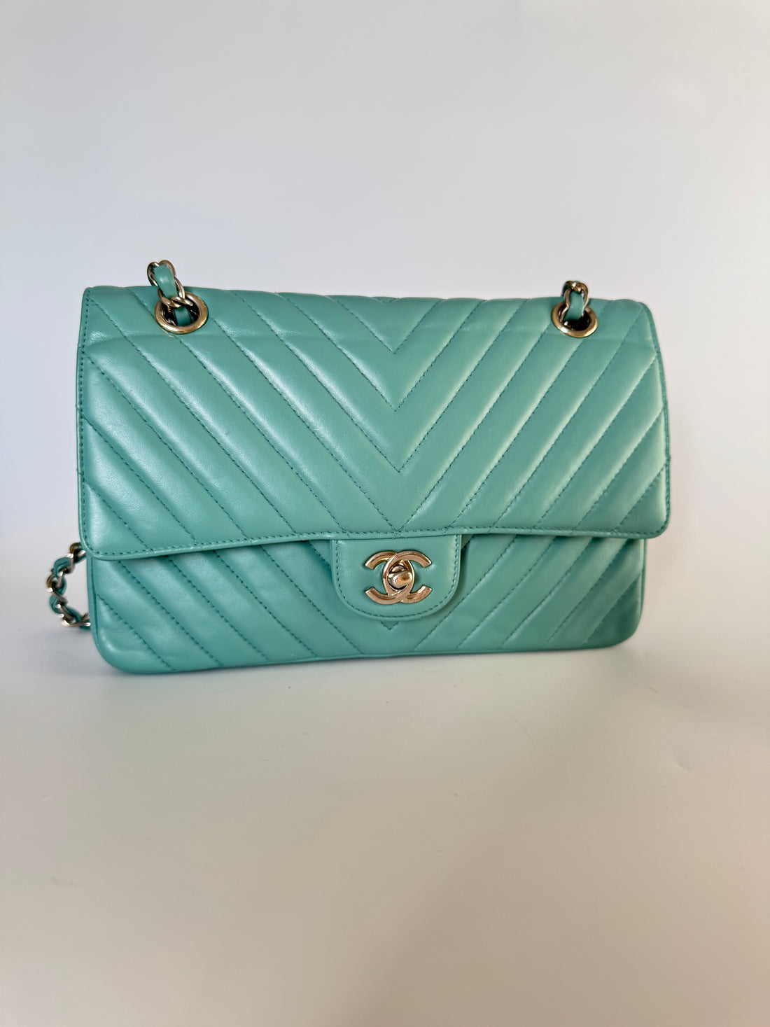 Chanel Quilted Lambskin Double Flap Bag Mint