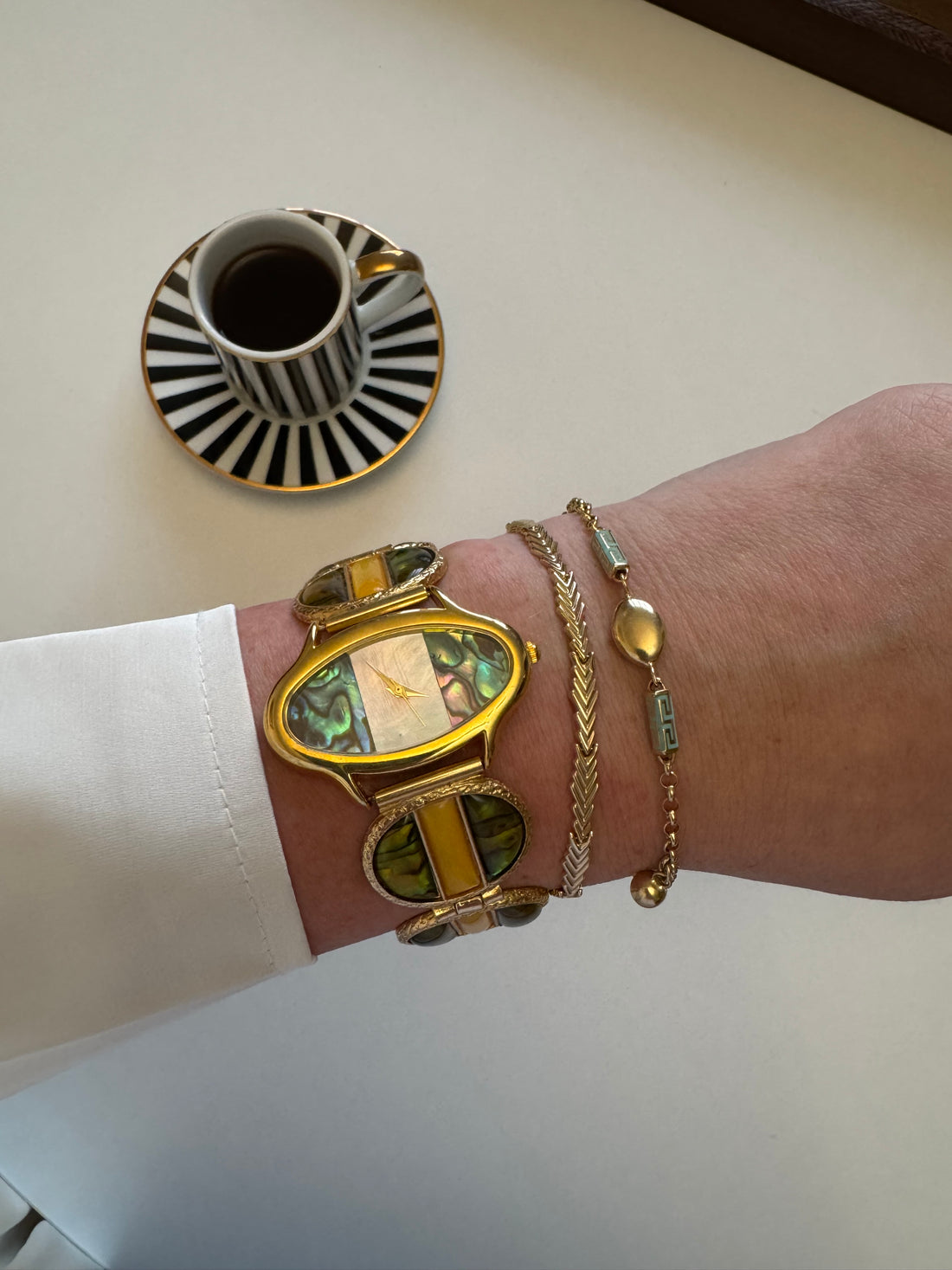 Abalone & Amber-Tone Art Deco Bracelet Watch