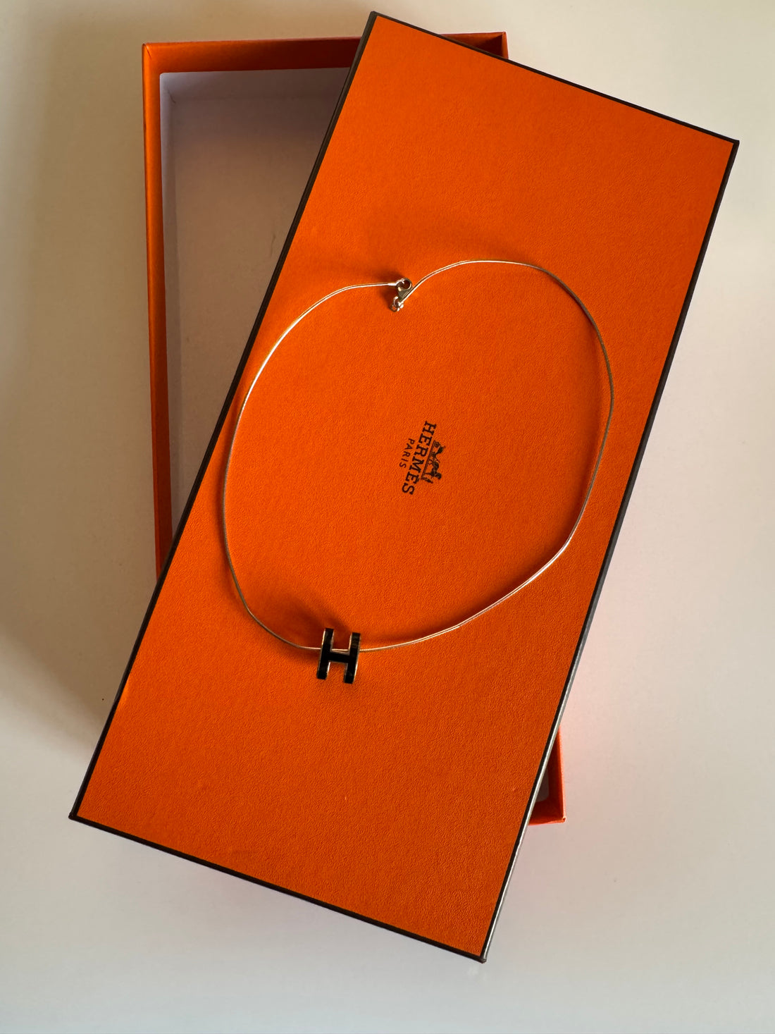 Hermès Pop H Necklace – Black Enamel Pendant on Silver Wire Choker