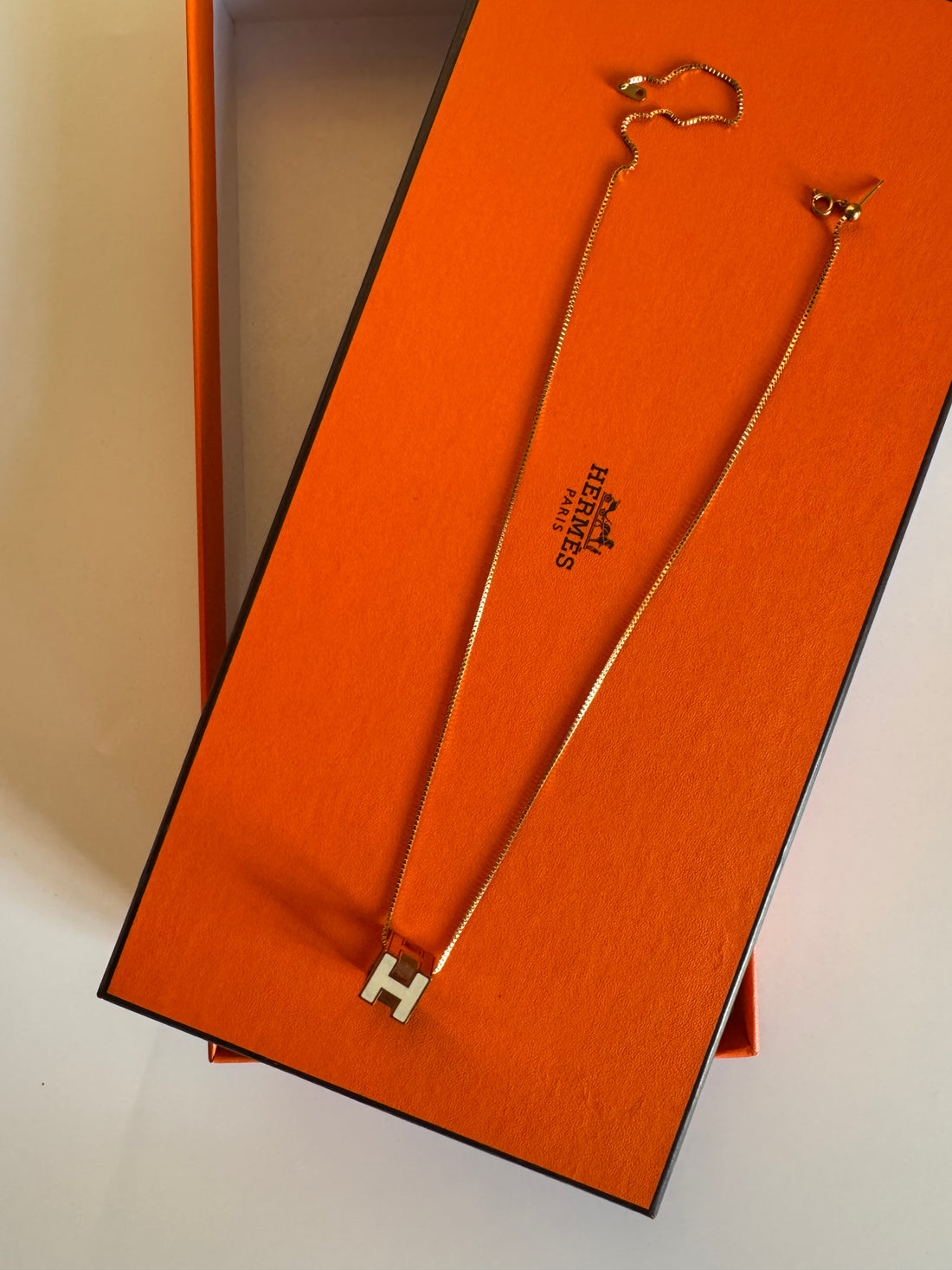Hermès Pop H Necklace – Gold-Tone & Cream Enamel Pendant