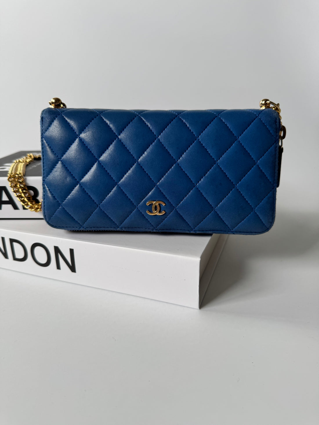 Chanel Vintage Wallet on Chain – Cobalt Blue Quilted Lambskin with 24k Gold Hardware