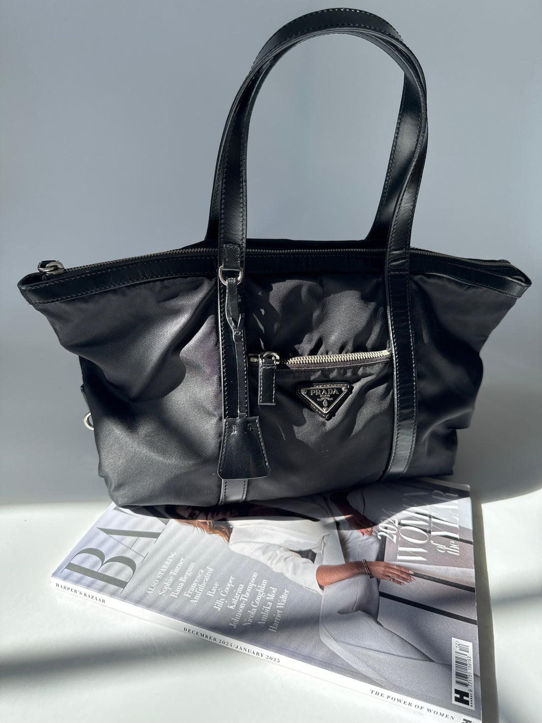 Prada Vintage Tan Leather Tote Bag with Silver Hardware