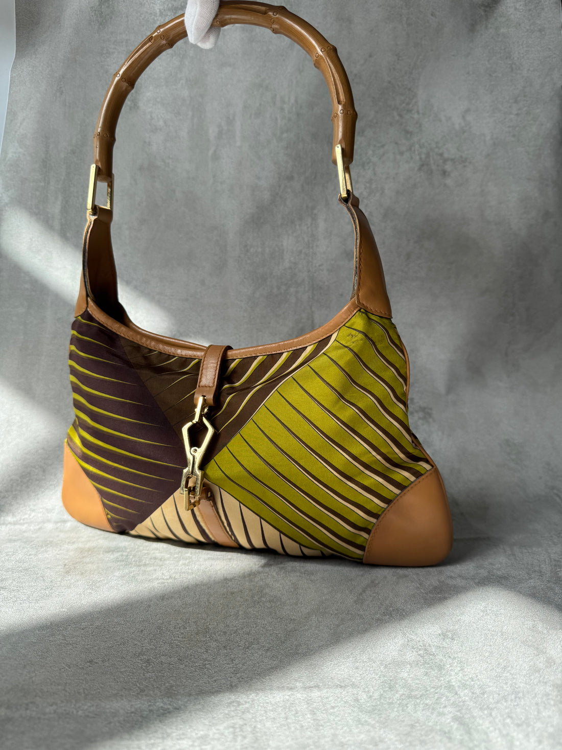 Rare Gucci Jackie O Striped Canvas with Bamboo Handle