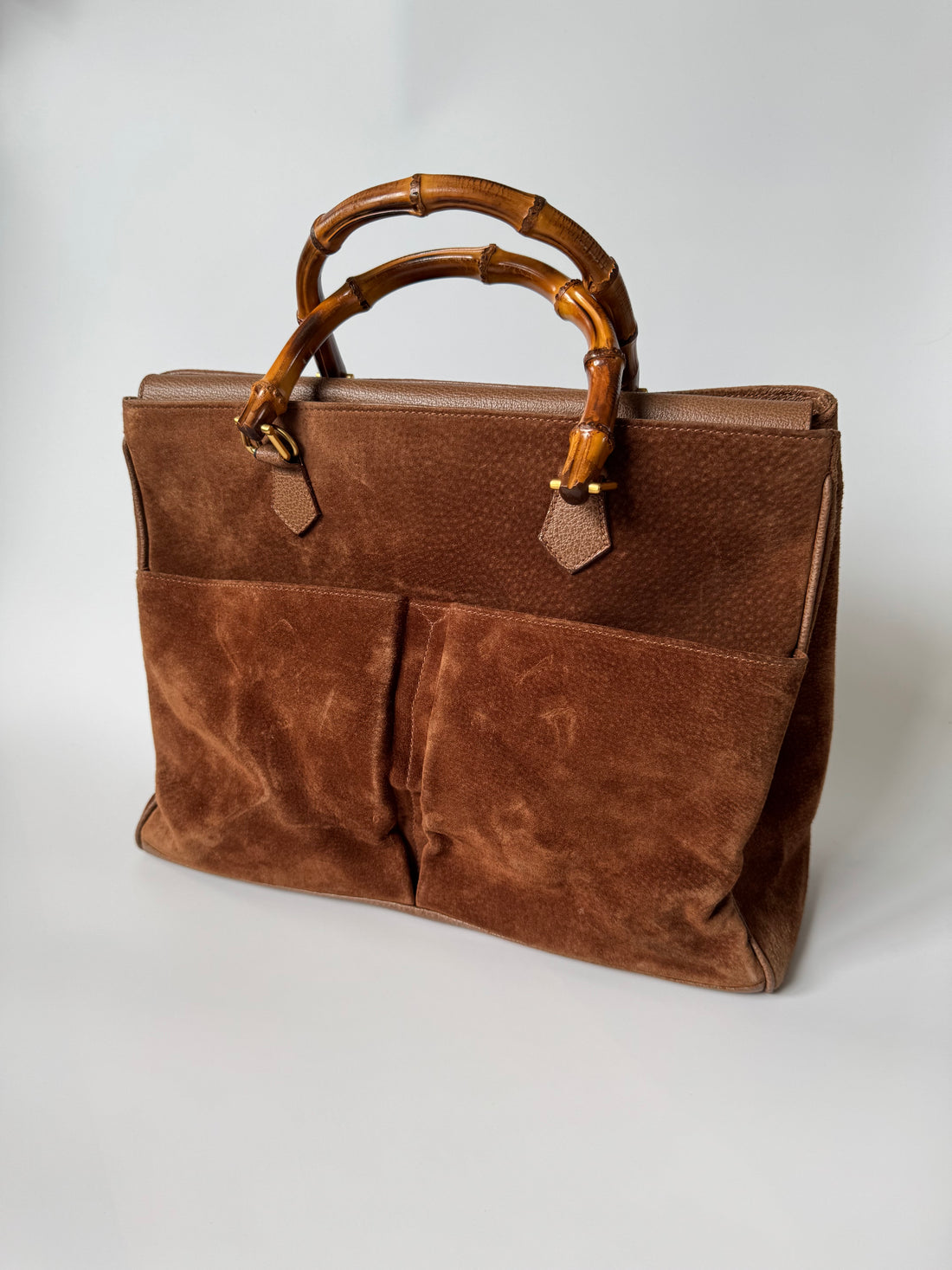 Vintage Gucci Brown Suede Bamboo Handle Bag