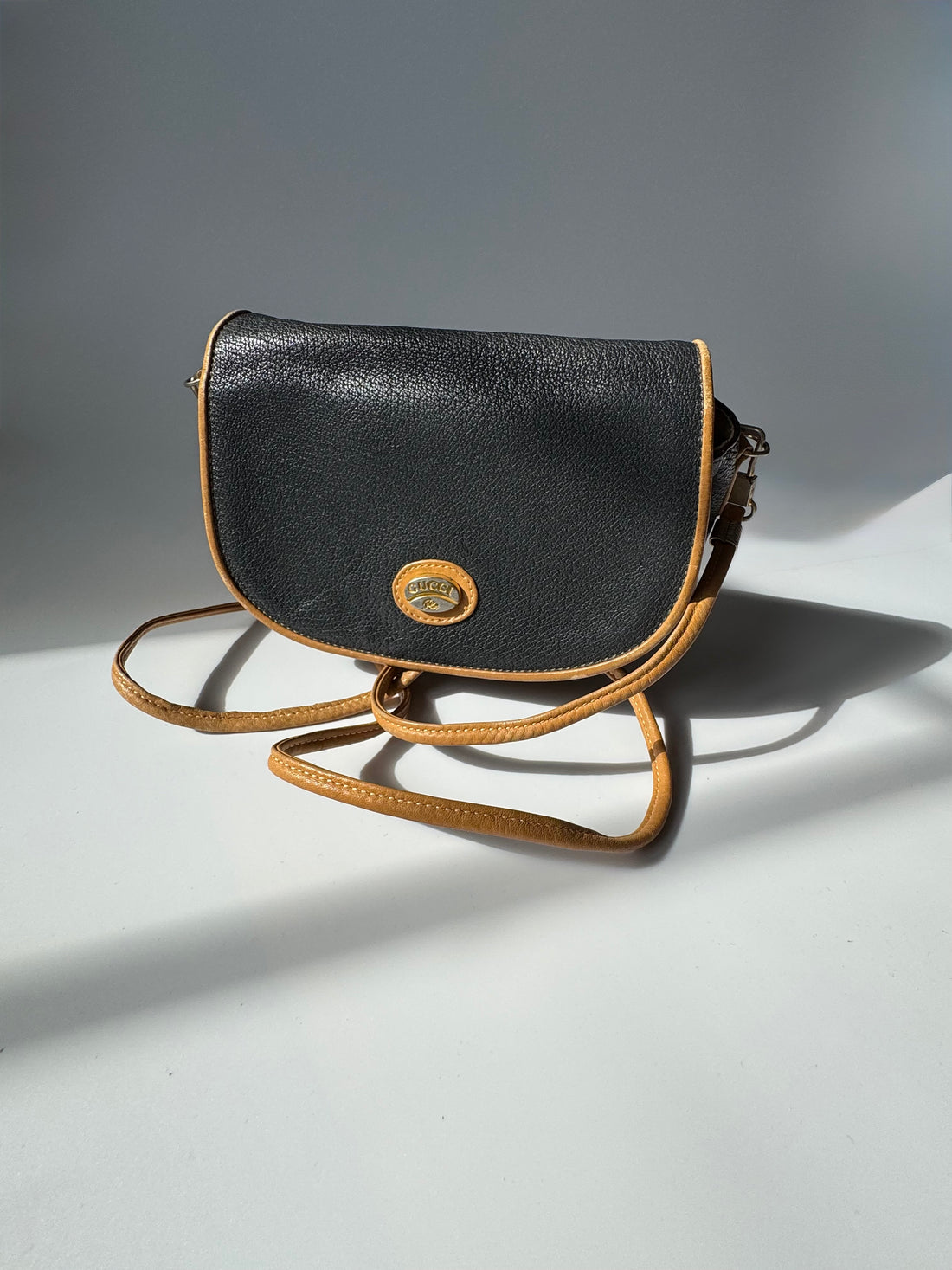 1980s Gucci Vintage Black Leather Crossbody Bag