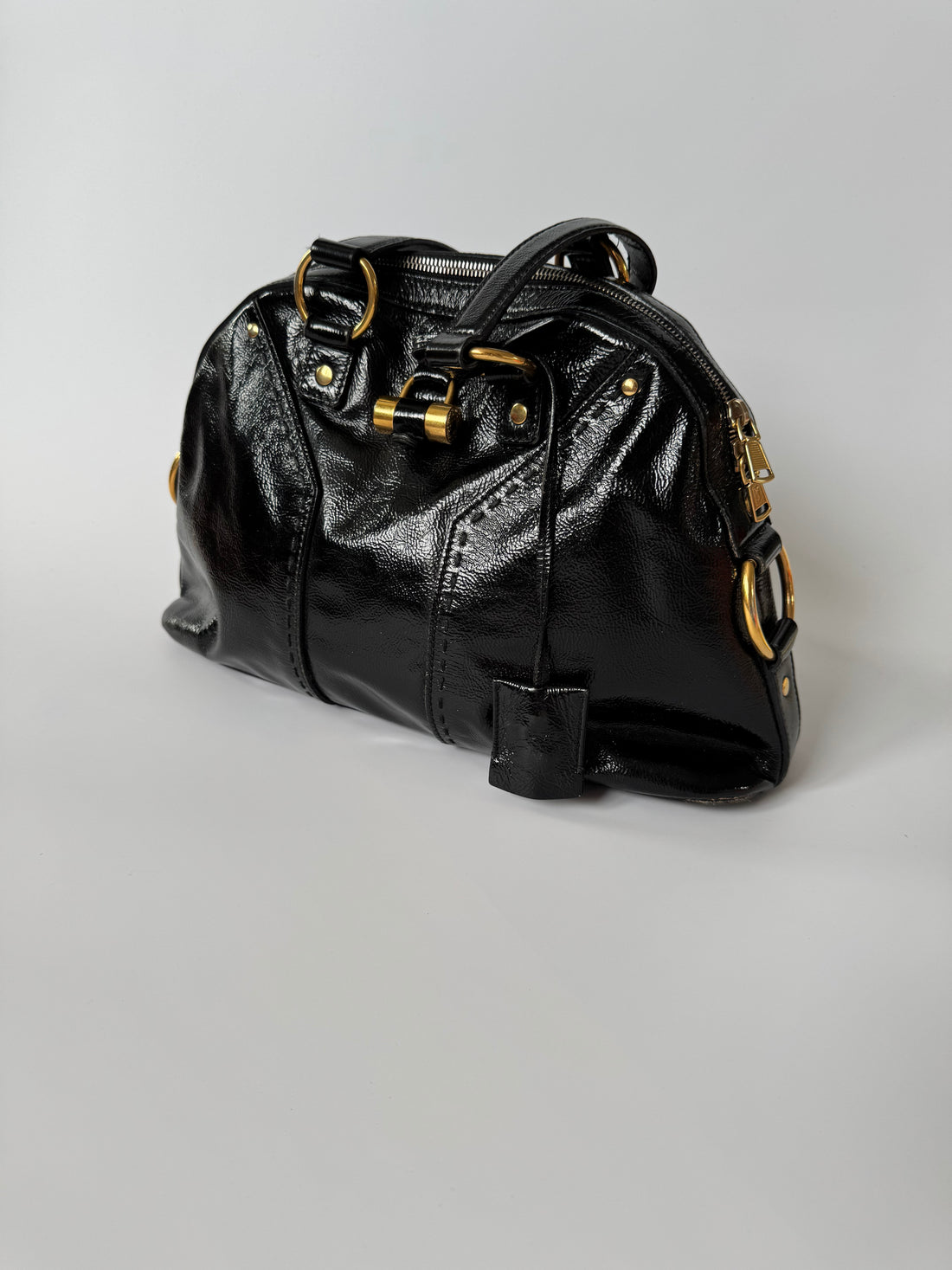 2000s Yves Saint Laurent Black Patent Leather Muse Bag