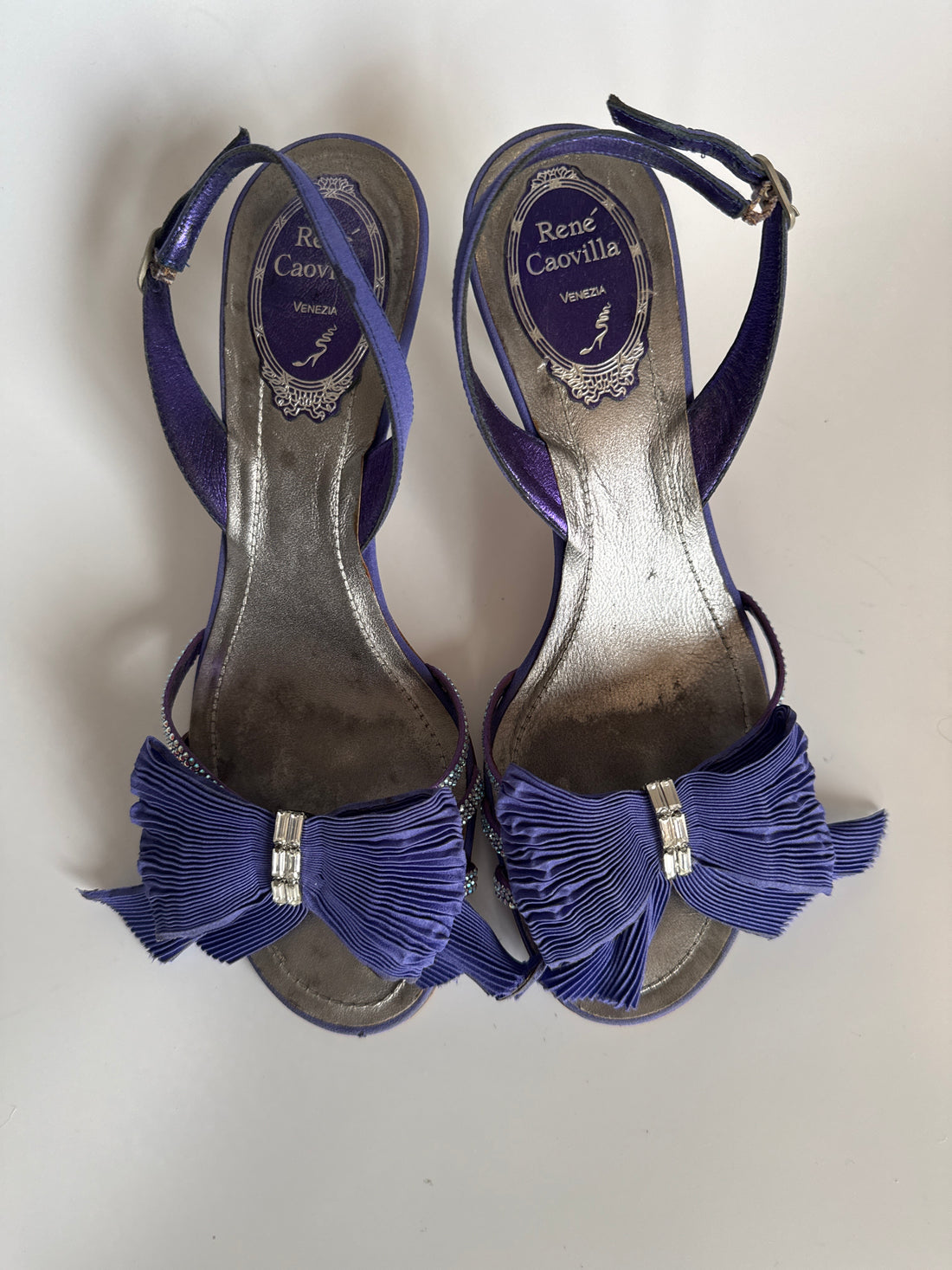 René Caovilla Purple Satin Bow Sandals (37)