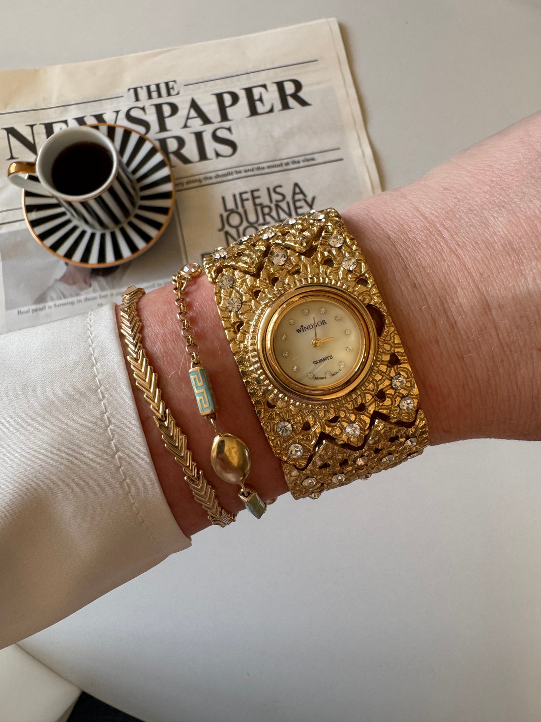 Windsor Gold Crystal Statement Cuff Watch