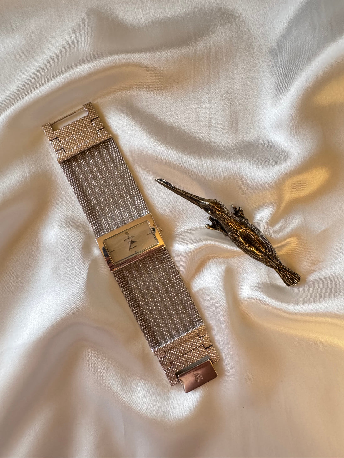 Anne Klein Silver Mesh Diamond Watch