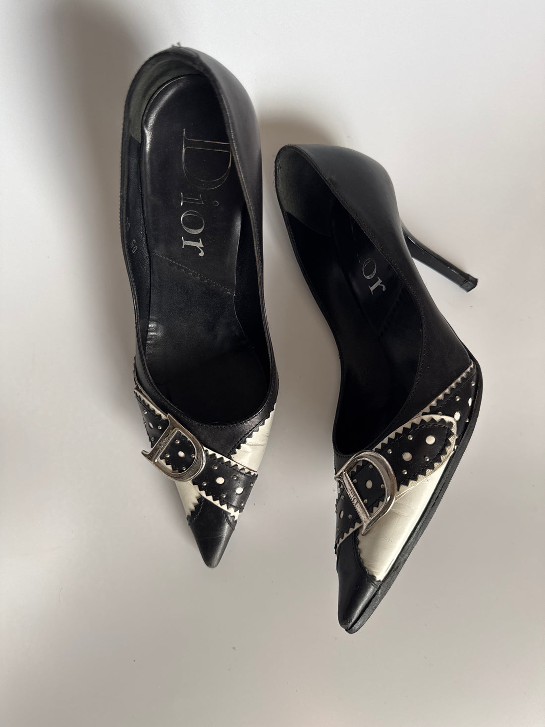 Dior Black & White Leather Buckle Pumps (35.5)
