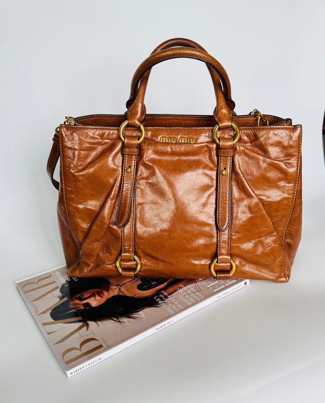 Miu Miu Brown Vitello Leather Tote Bag