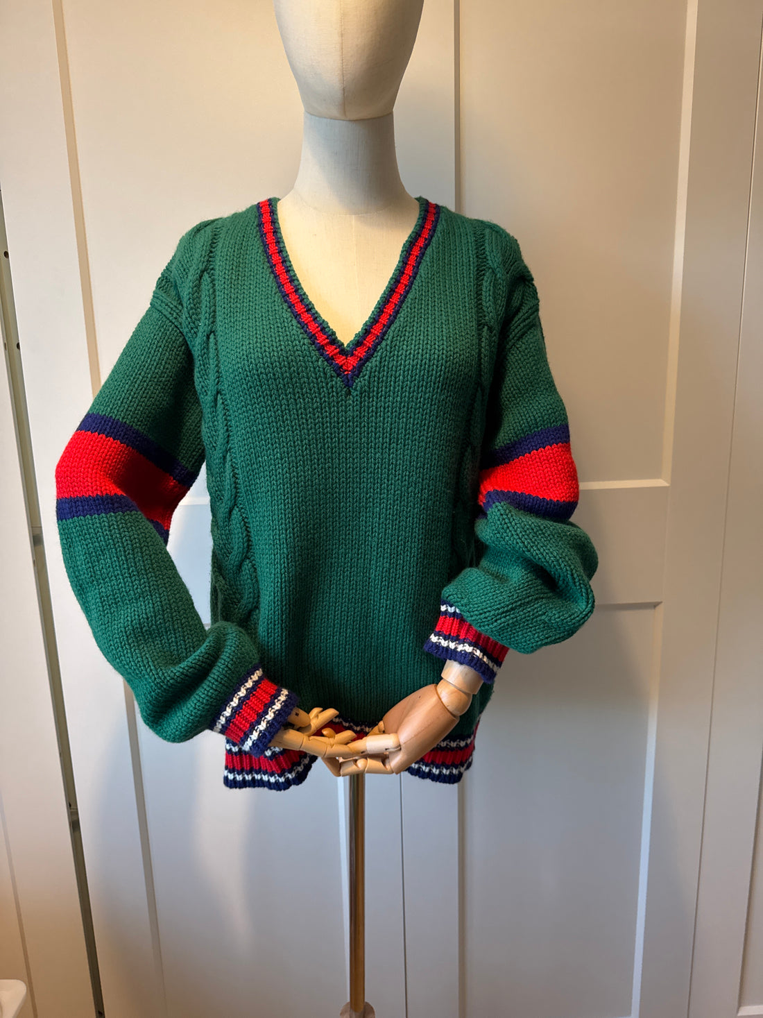 Gucci Green Cable Knit V-Neck Sweater (size XS)