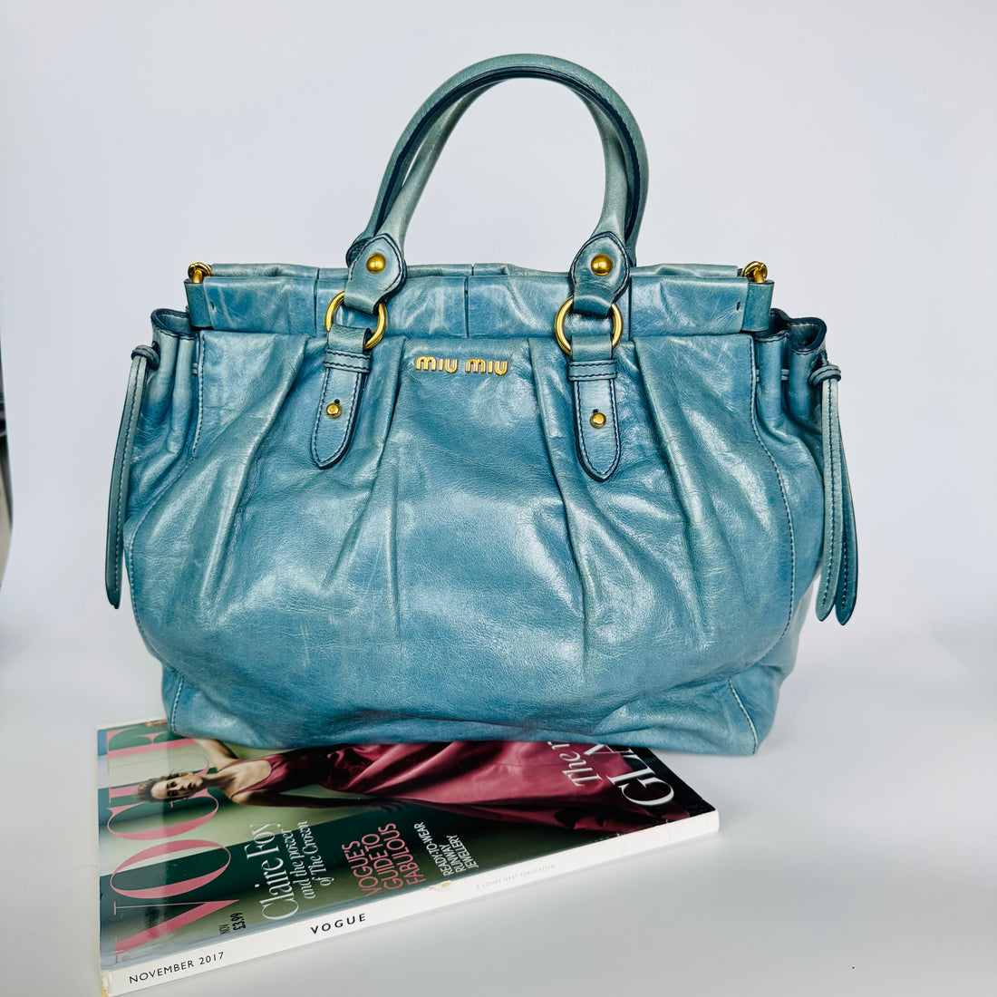 Miu Miu Blue Vitello Leather Handbag