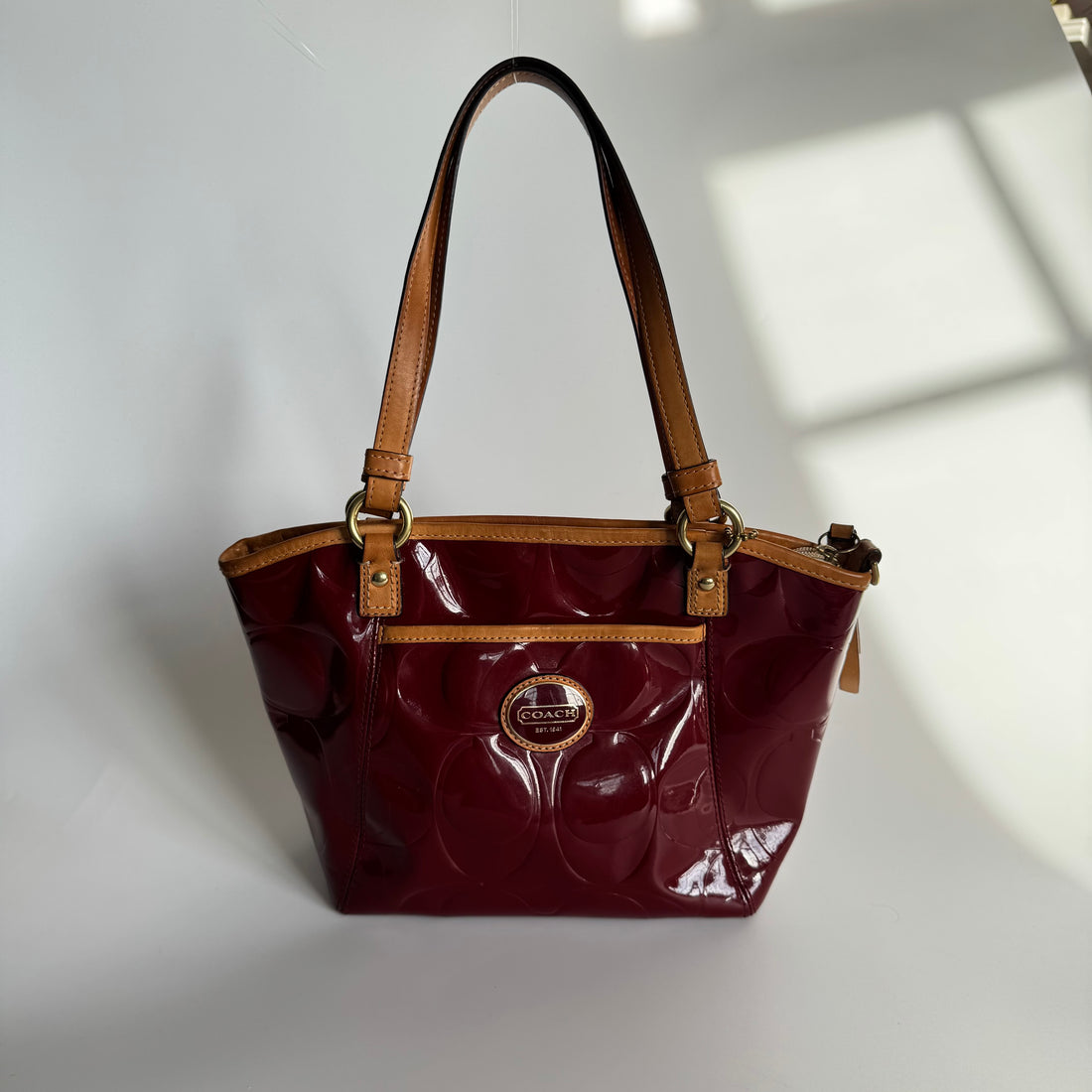 Coach Burgundy Patent Leather Shoulder Tote
