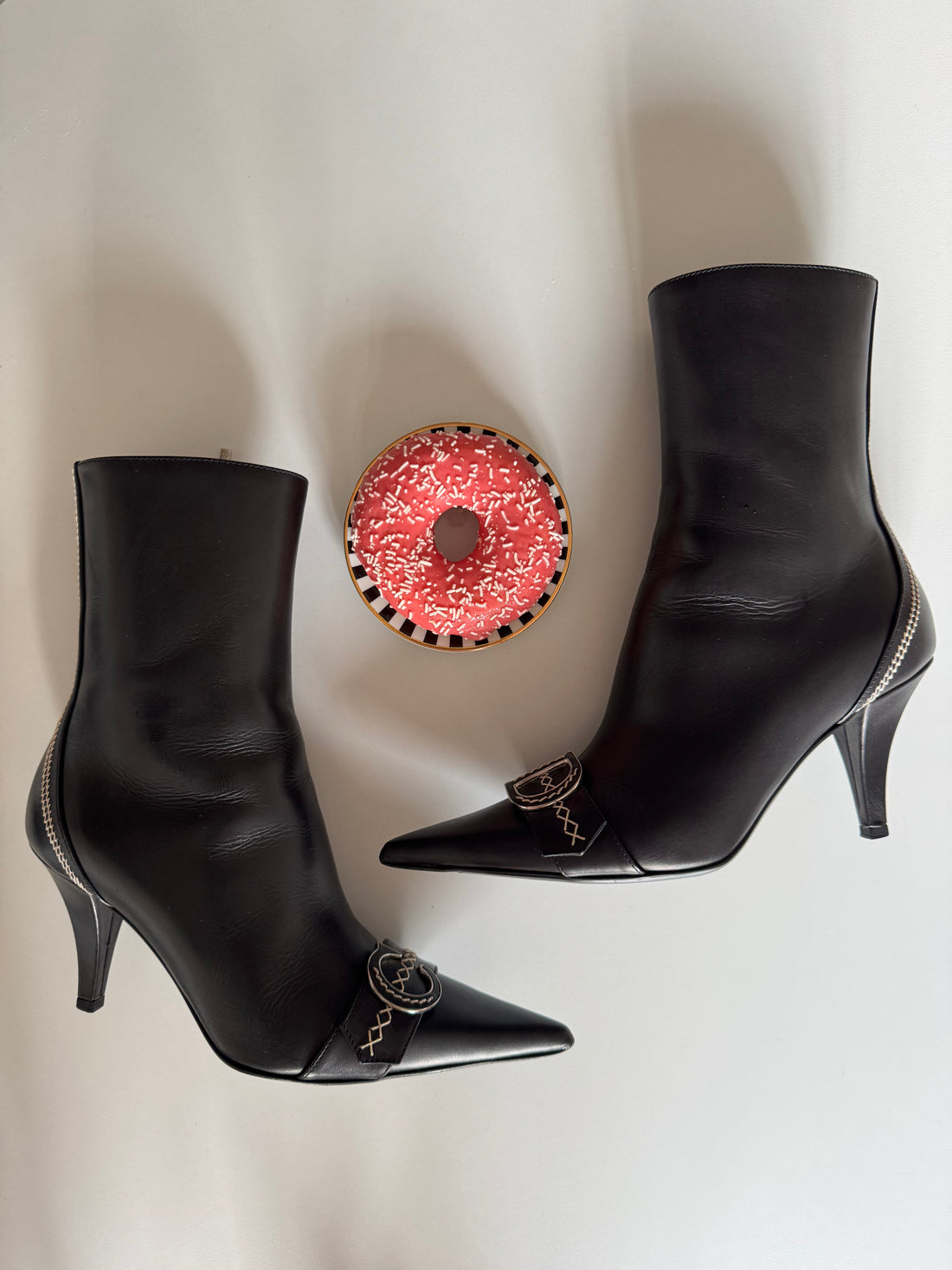 2000s Christian Dior by John Galliano Rare Black Leather Ankle Boots Size 36 UK 3