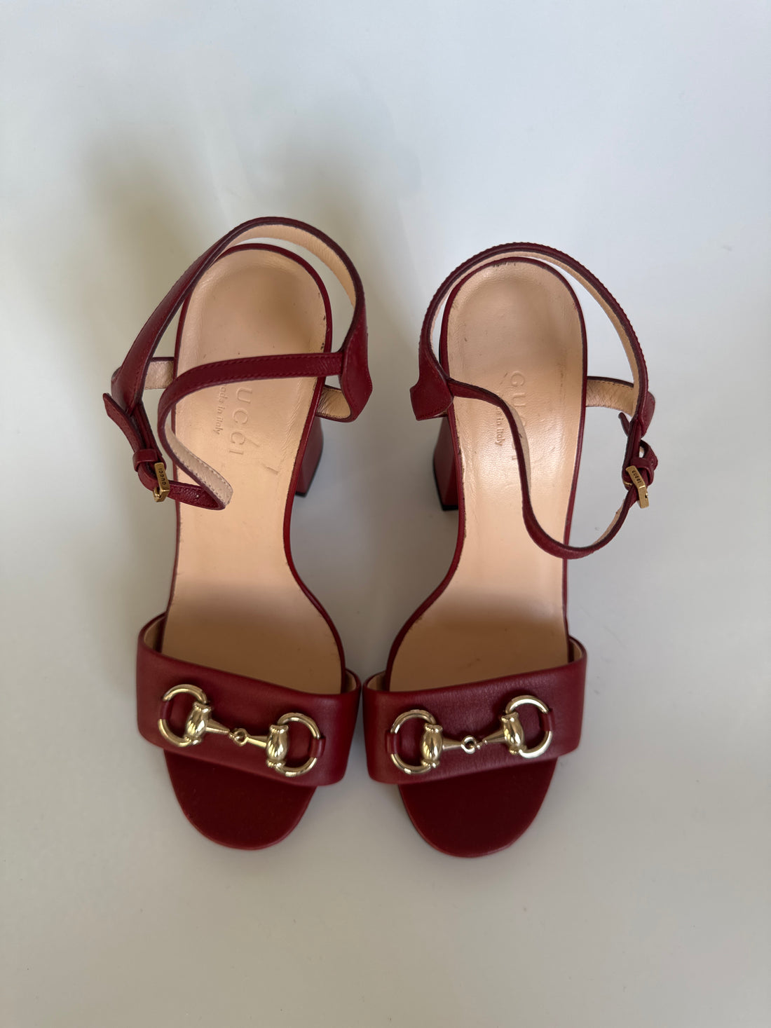 Gucci Vintage Burgundy Leather Horsebit Sandals, size 36 UK 3.5