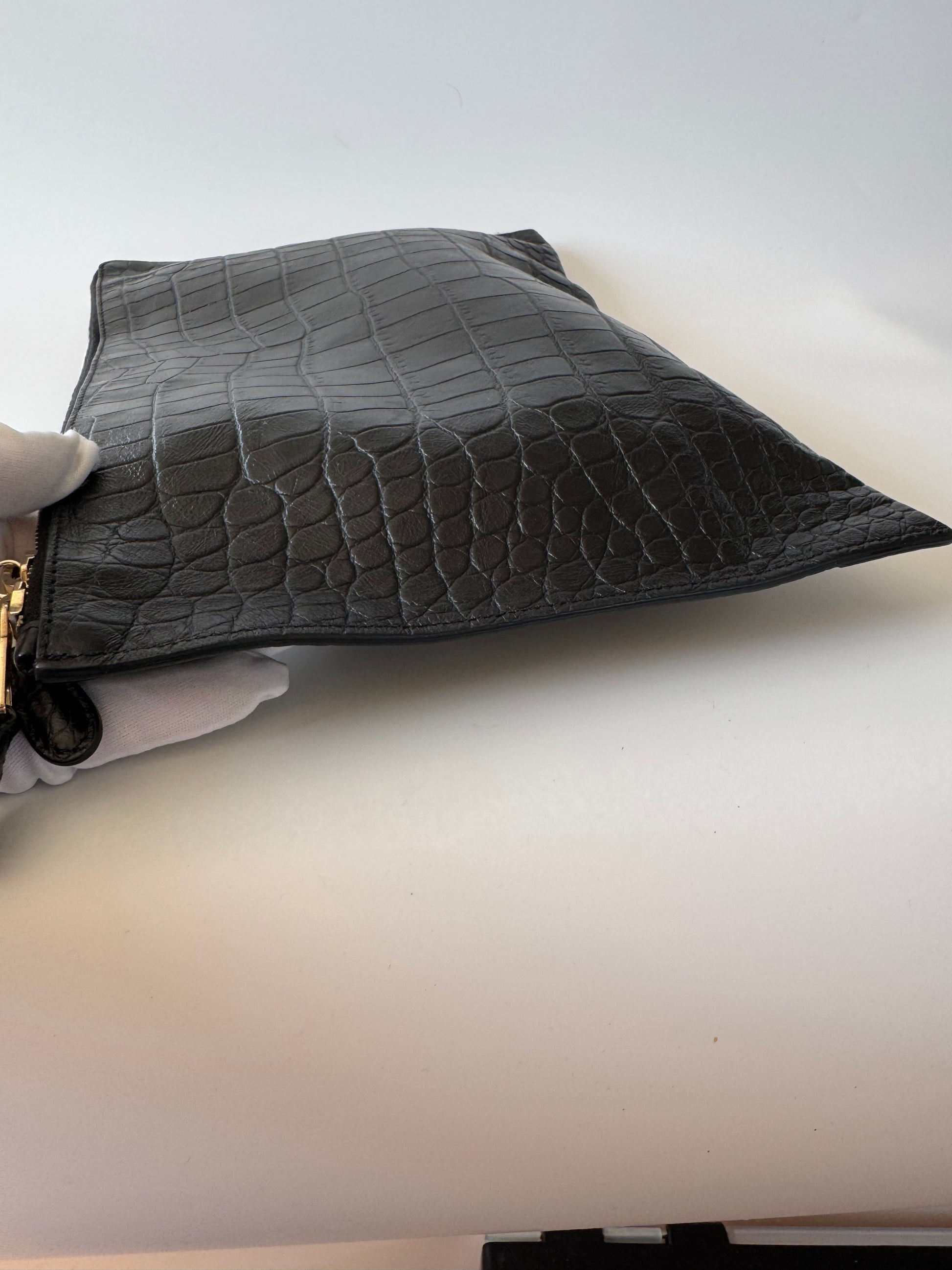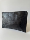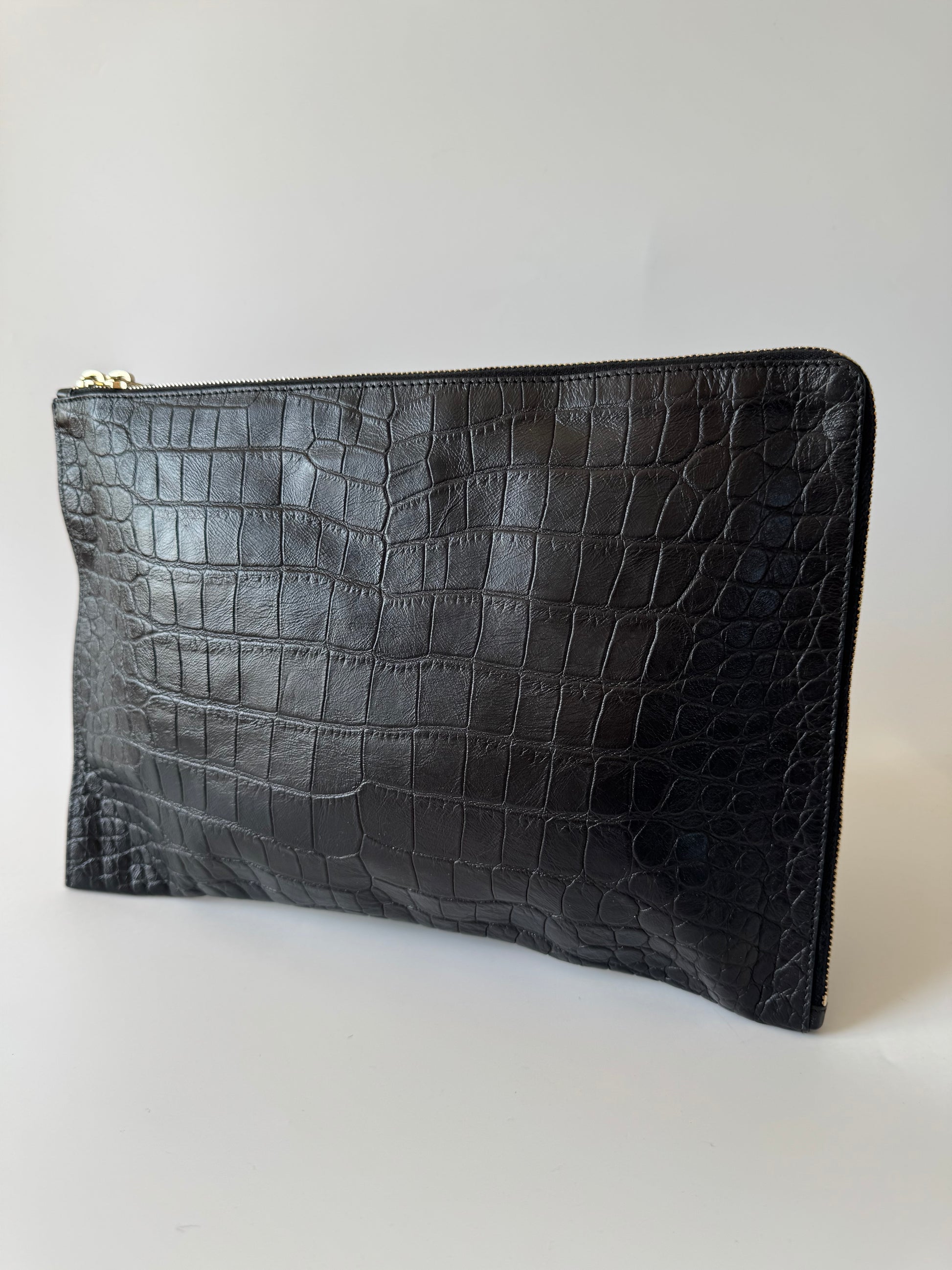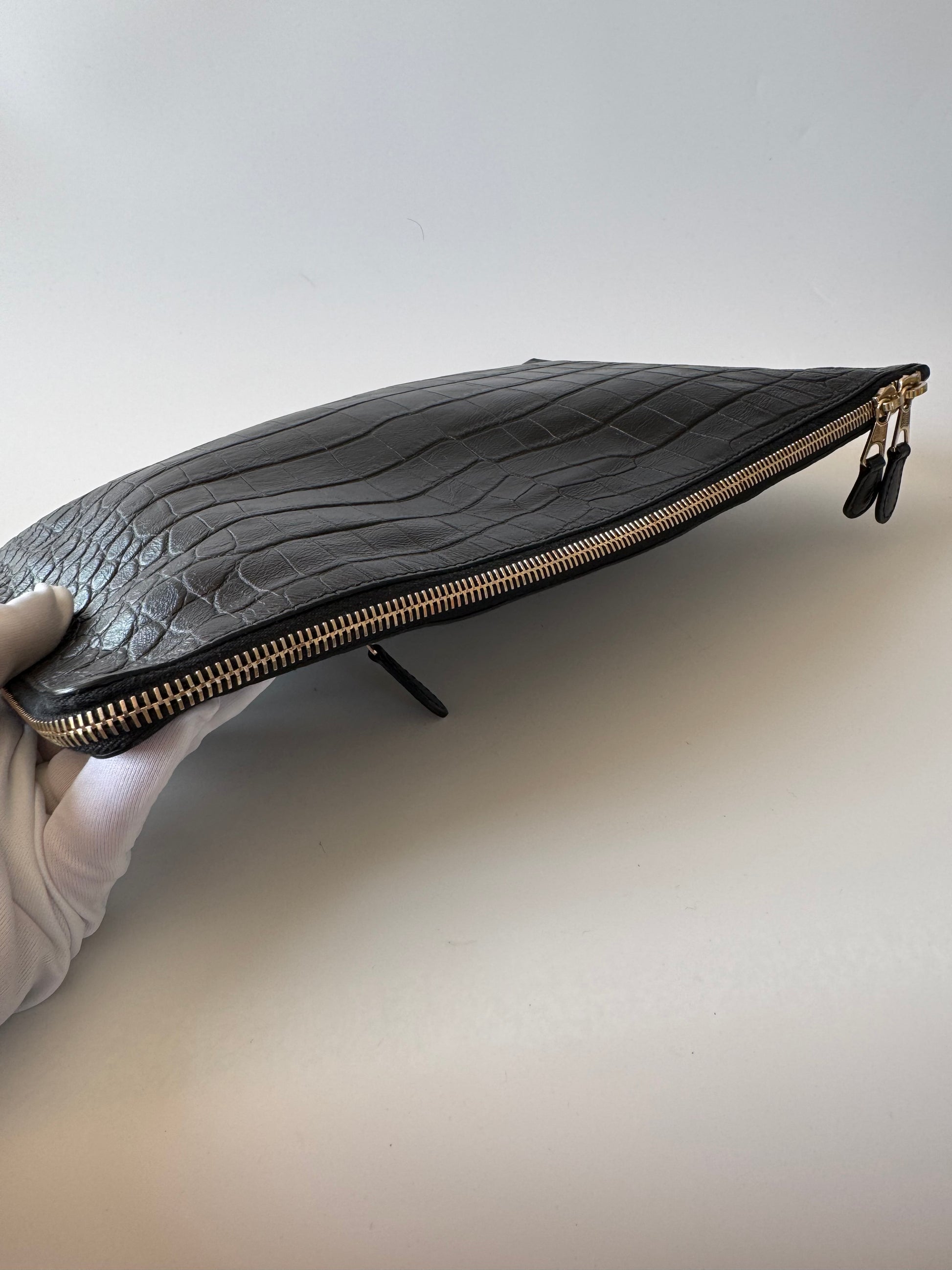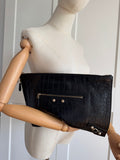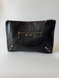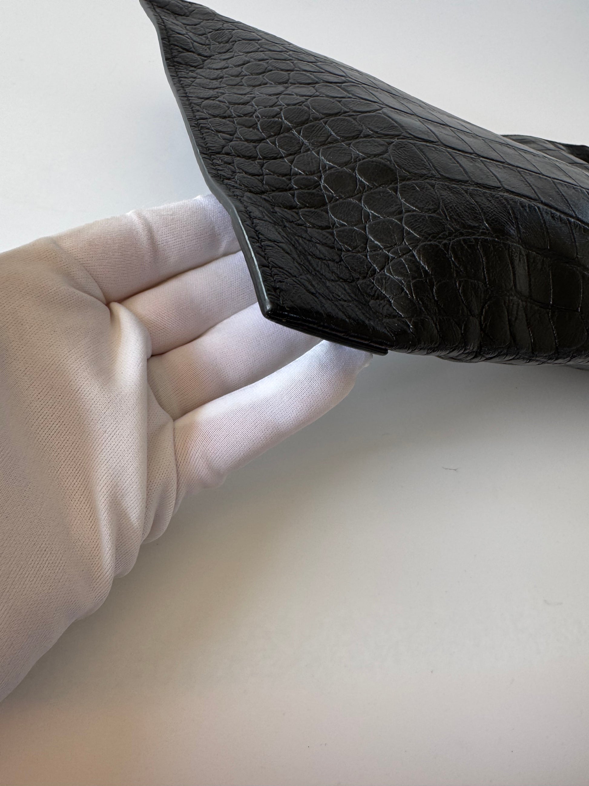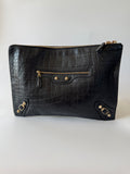 Balenciaga Classic Croc-Embossed Leather Clutch Black