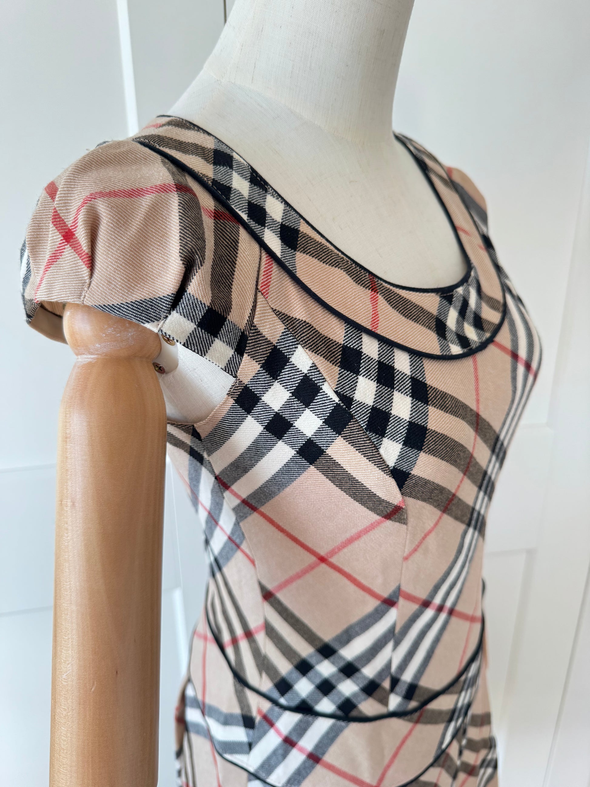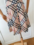 Details: Iconic Burberry Nova Check pattern in a soft, feminine silhouette. Features a flattering fitted top with a gently flared skirt and subtle cap sleeves. A timeless, instantly recognisable piece.