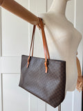 Details: Signature Macadam monogram canvas, dual shoulder straps, leather trim, open top with magnetic closure, spacious interior with multiple pockets
