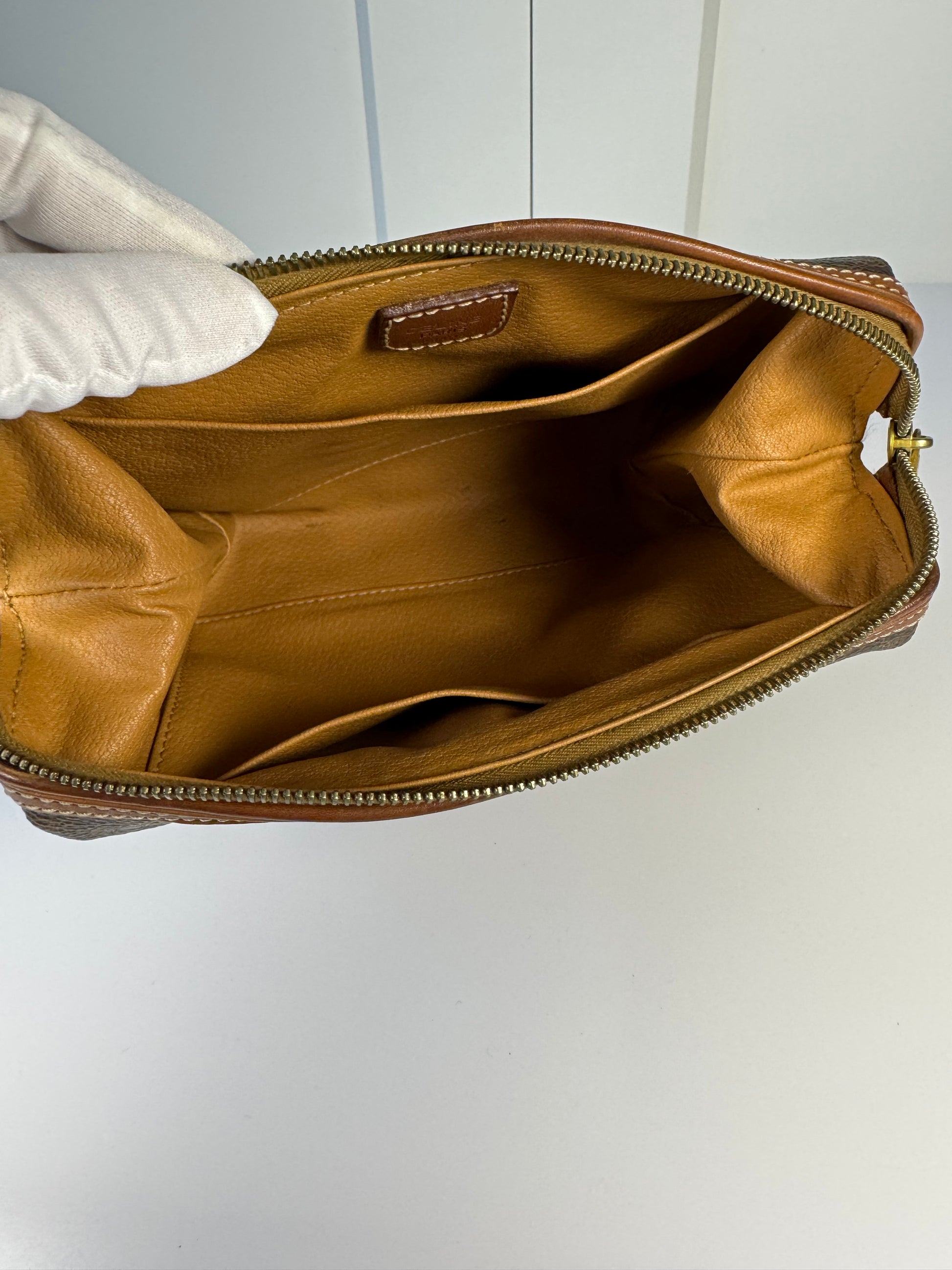 The interior features two open pockets for easy storage and organisation. Clean interior with light signs of wear consistent with age. Well kept and ready to use.