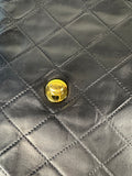 Elegant vintage Chanel flap handbag crafted from black quilted lambskin leather, featuring the iconic diamond quilting, gold-tone CC turn-lock hardware and a classic single top handle. A beautifully structured silhouette that embodies timeless Chanel elegance, characteristic of mid-1990s design.