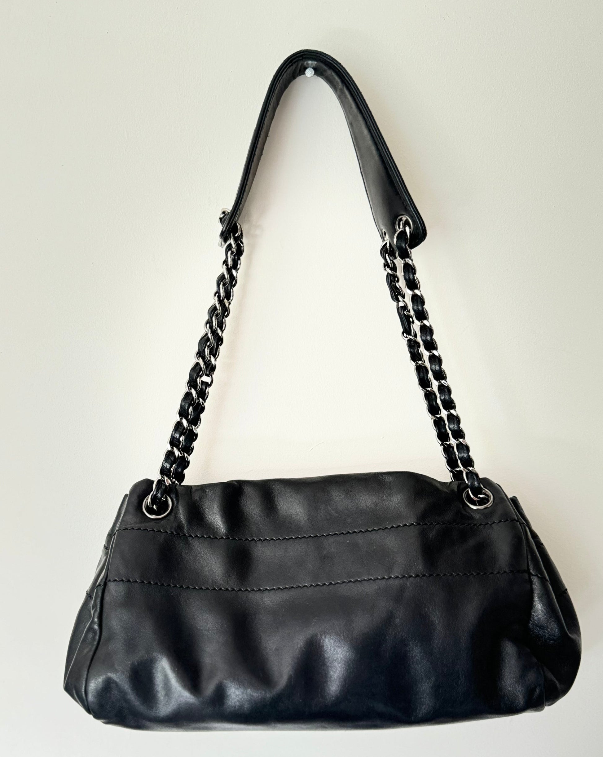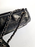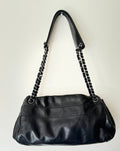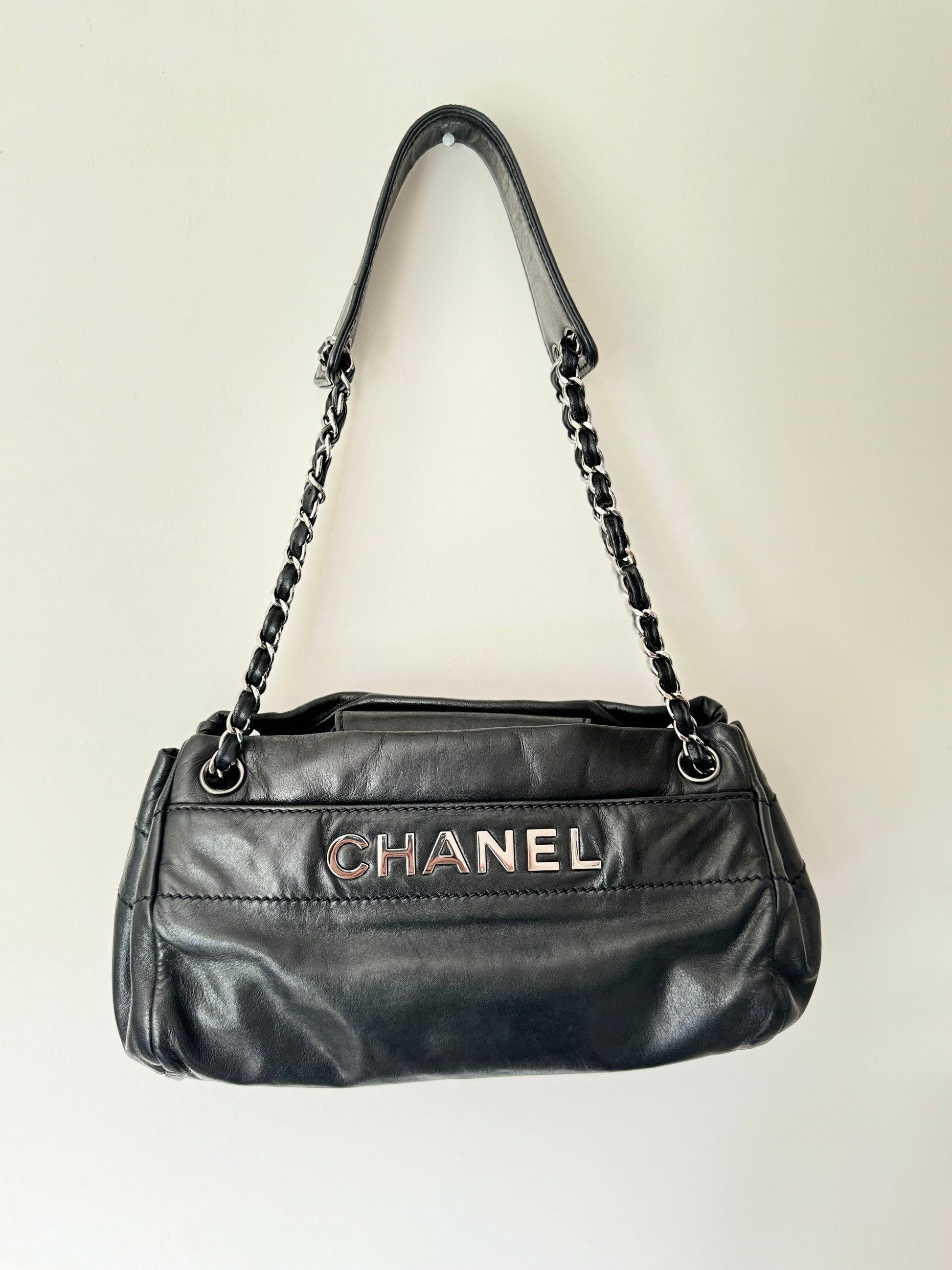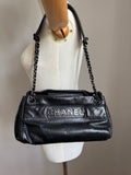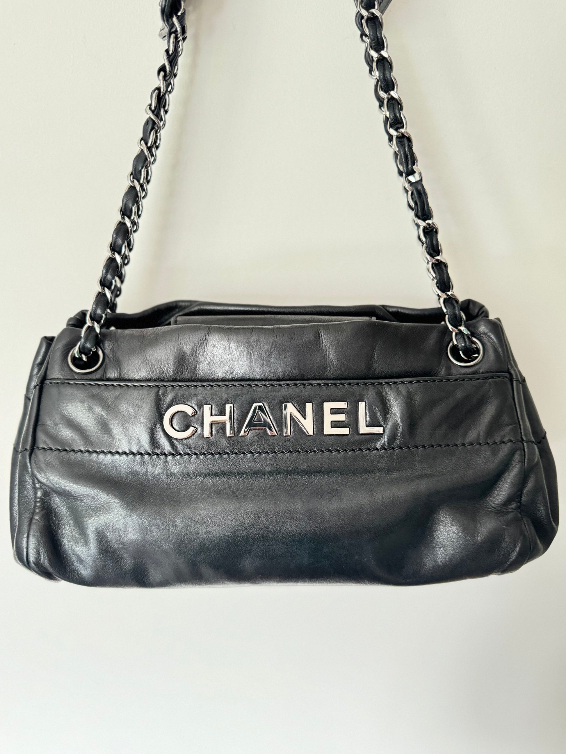 Rare Chanel Logo Shoulder Bag in Black Lambskin Leather