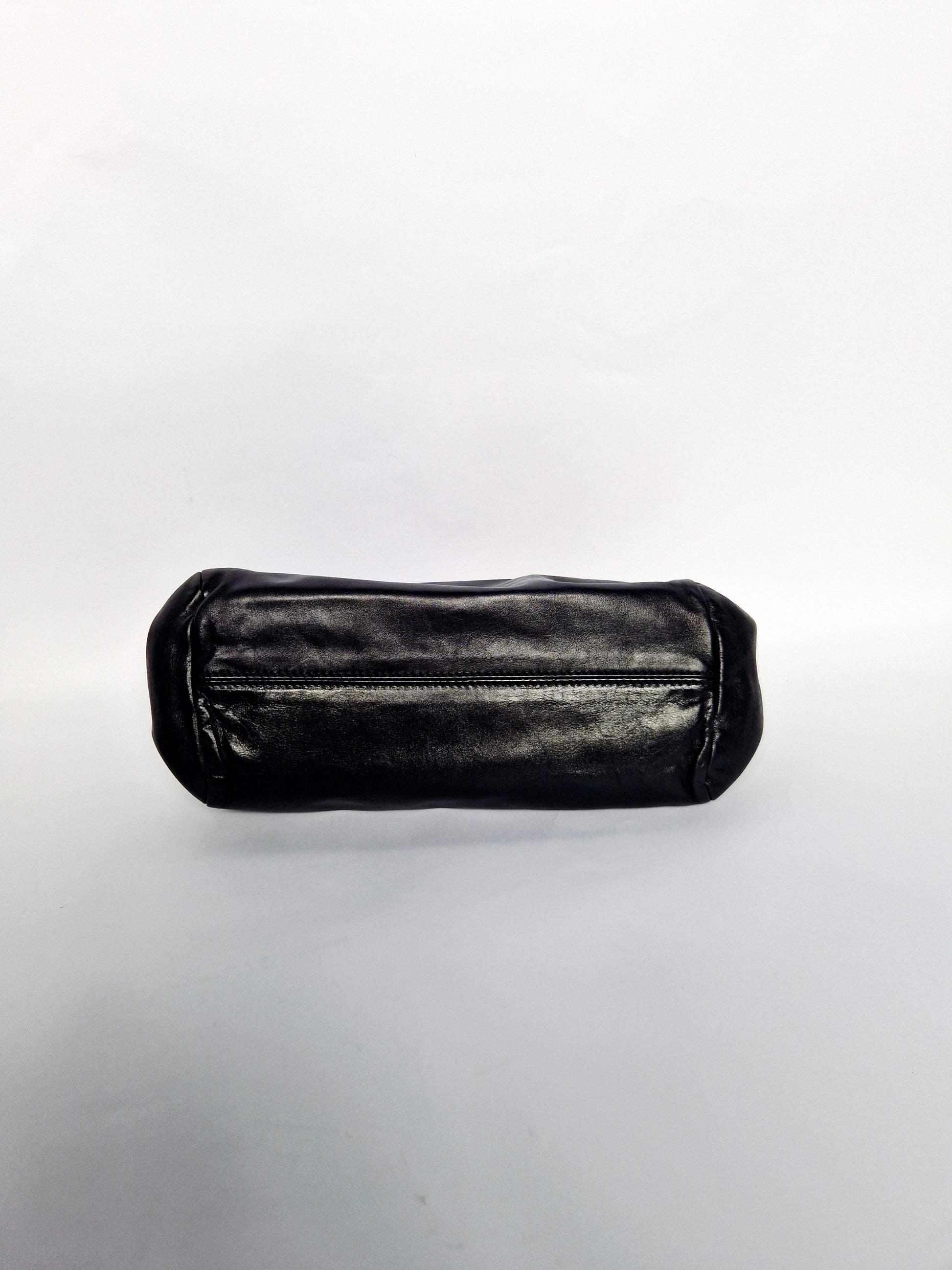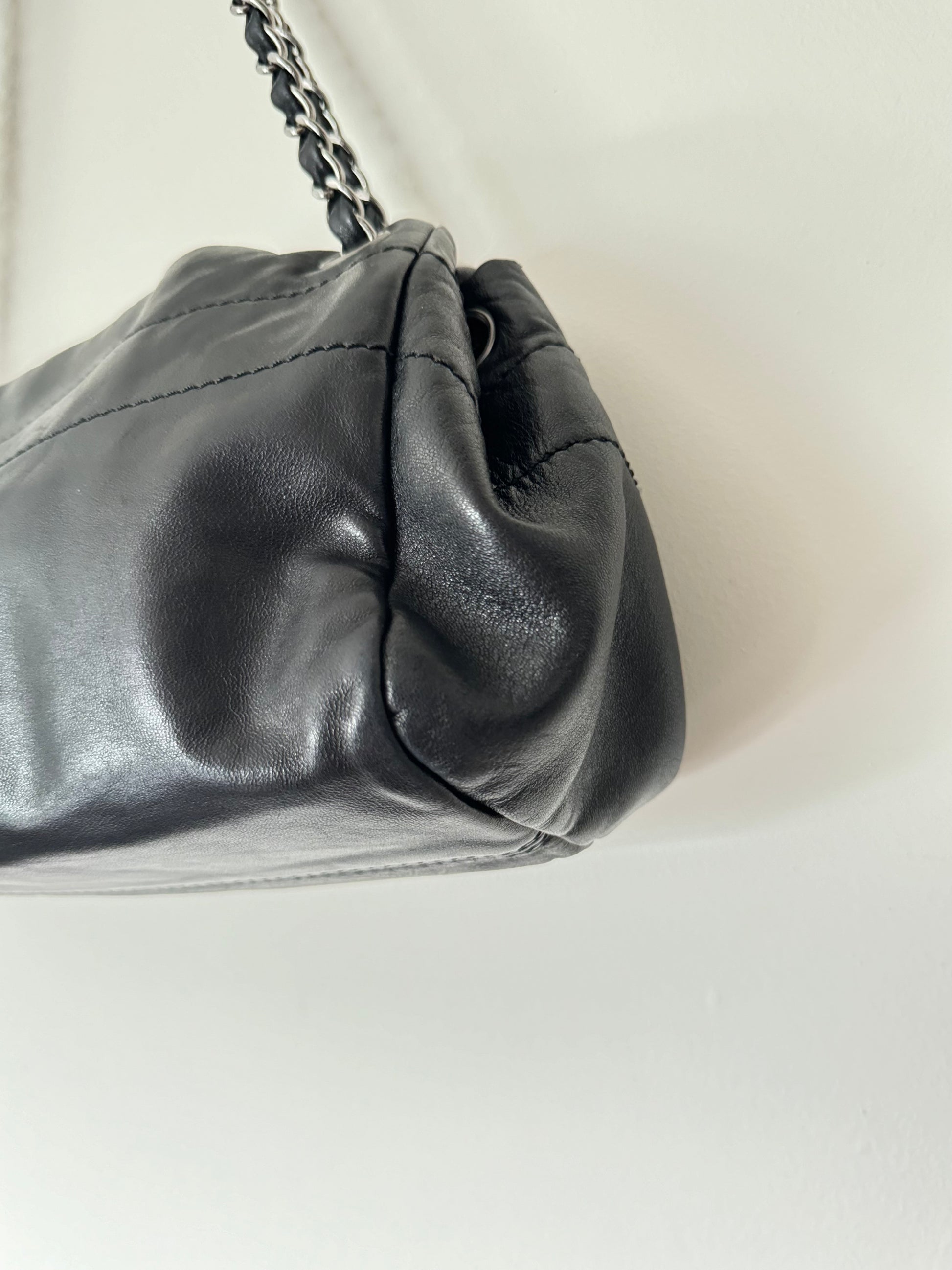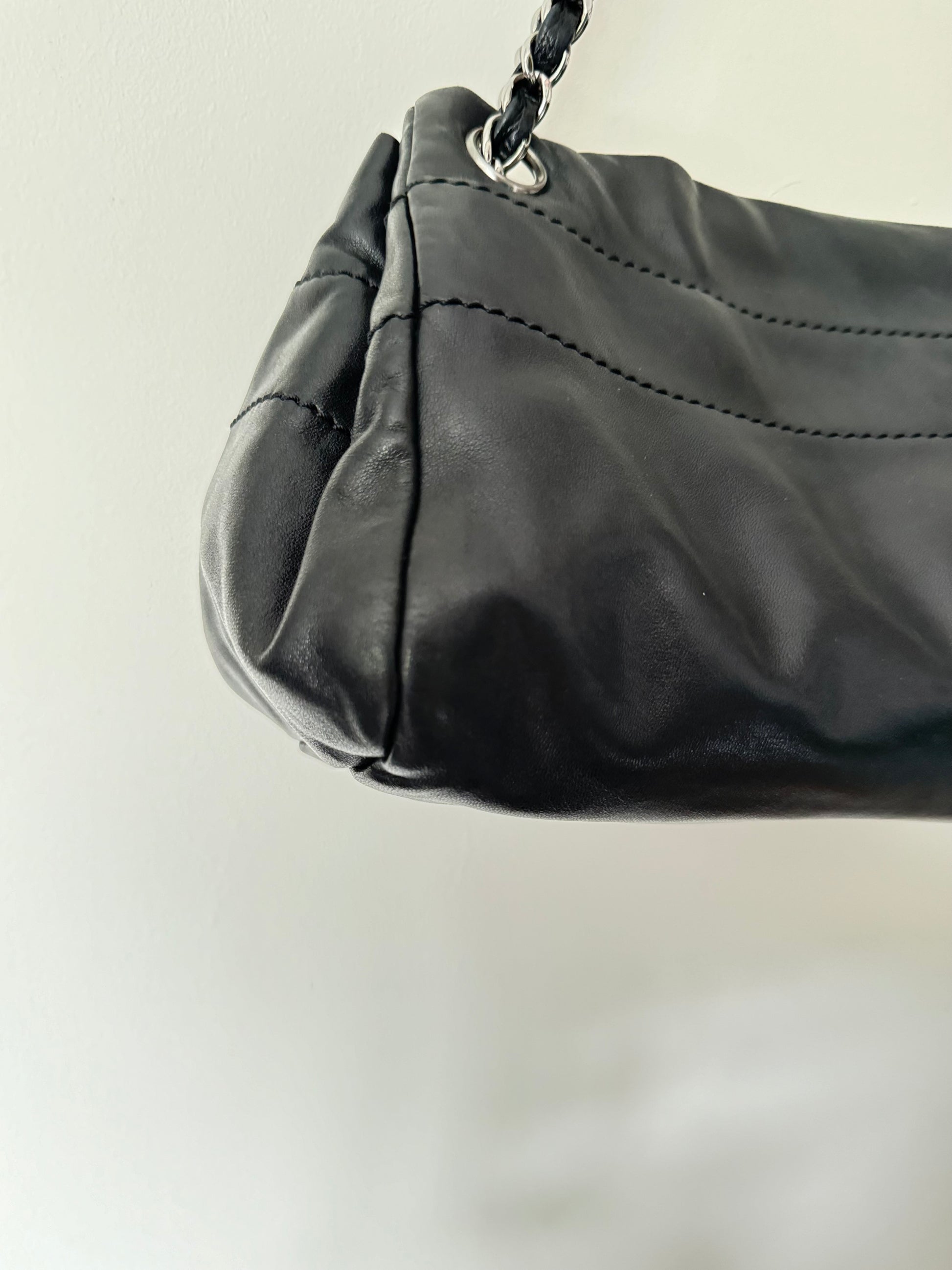 Rare Chanel Logo Shoulder Bag in Black Lambskin Leather