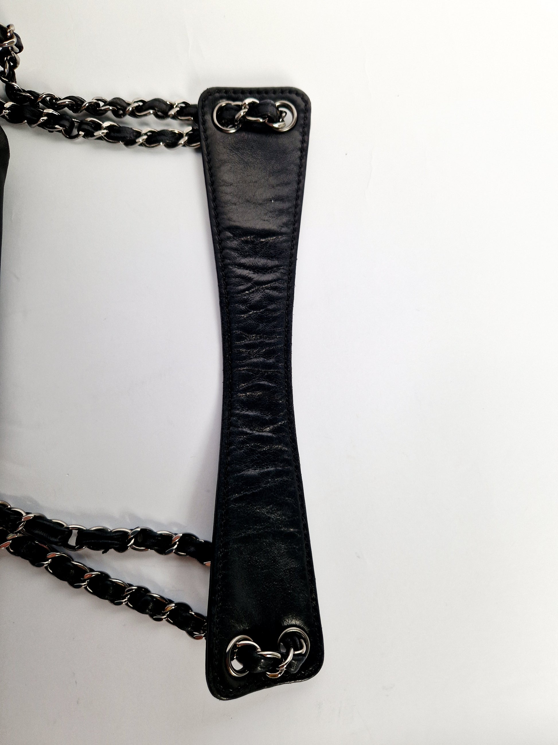 Leather-woven chain shoulder straps