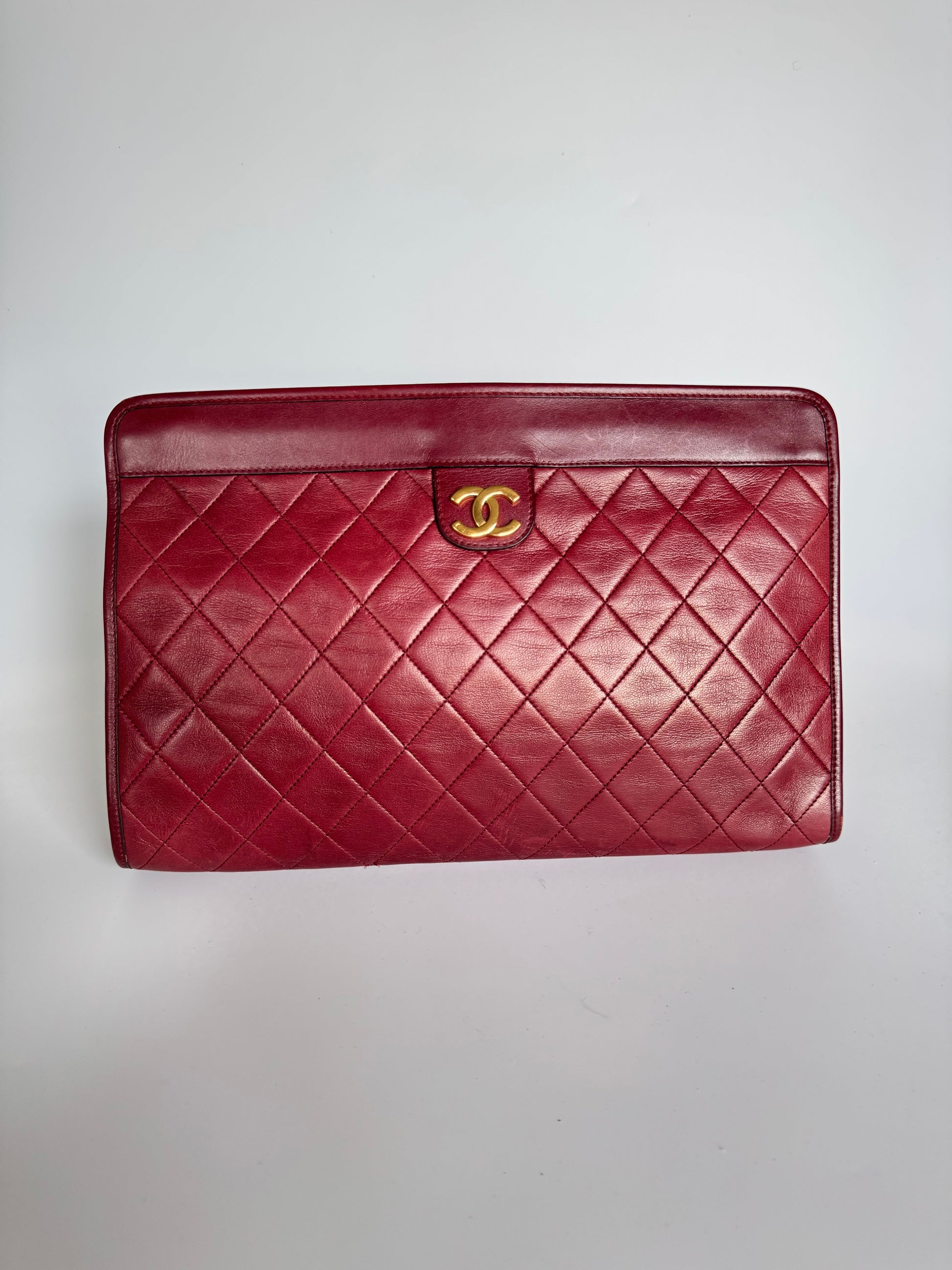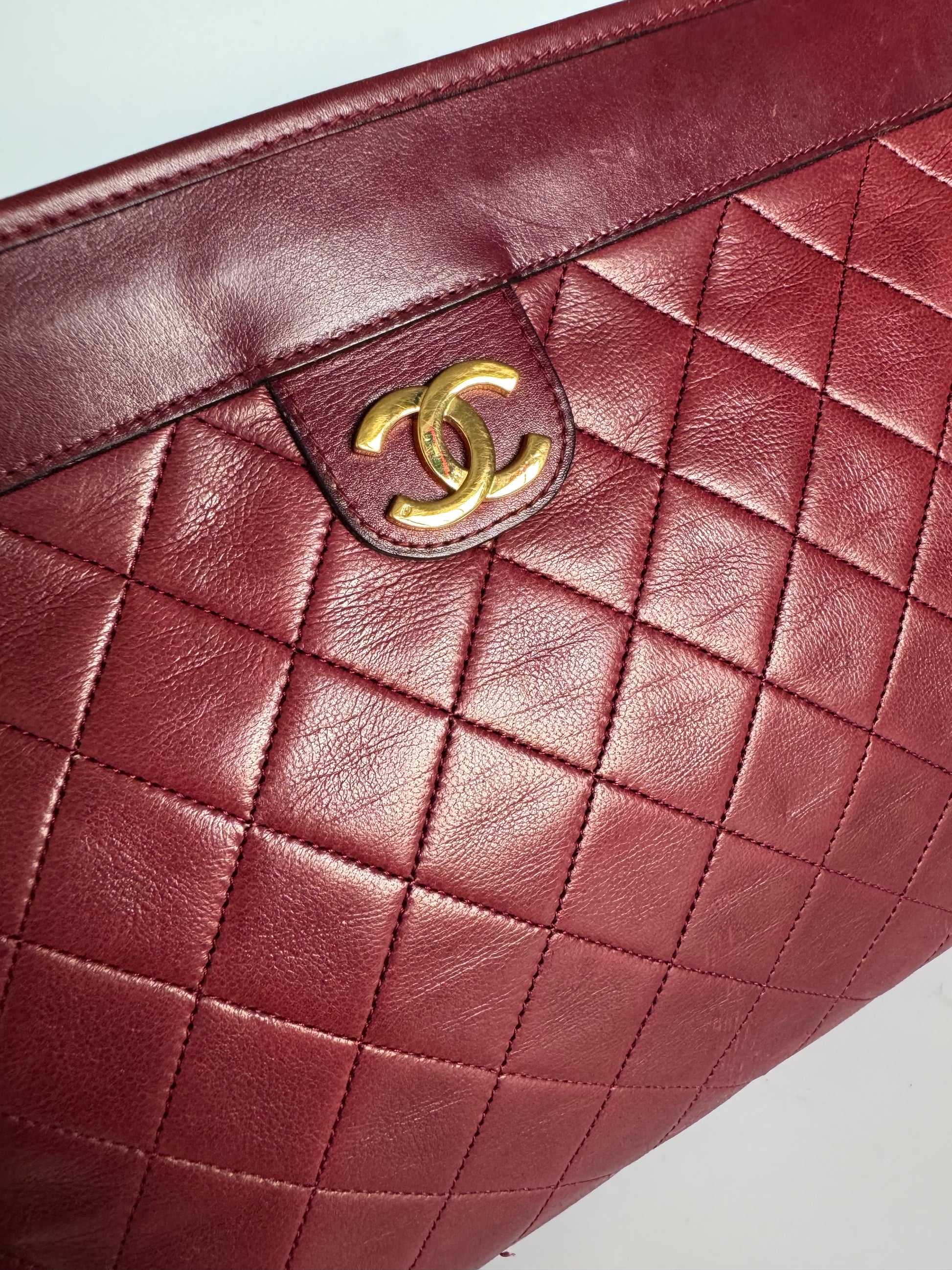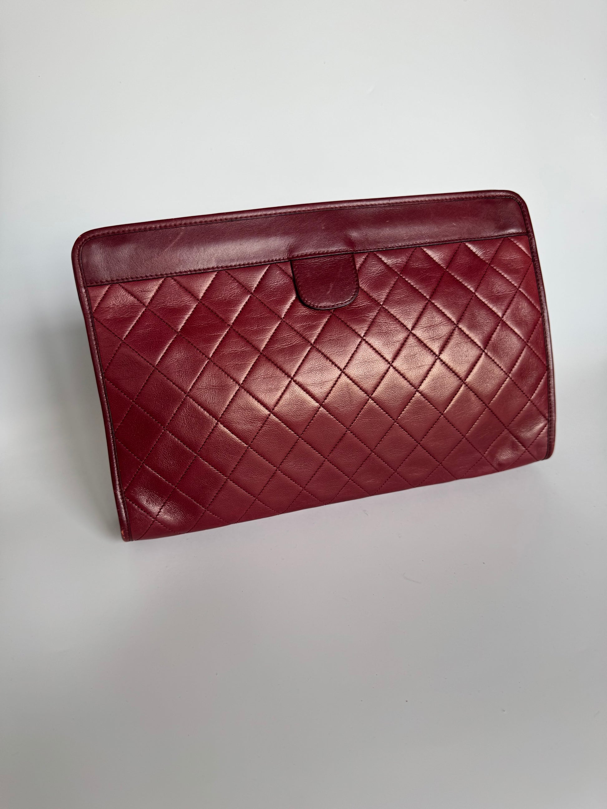 Chanel Vintage Burgundy Quilted Leather Clutch
