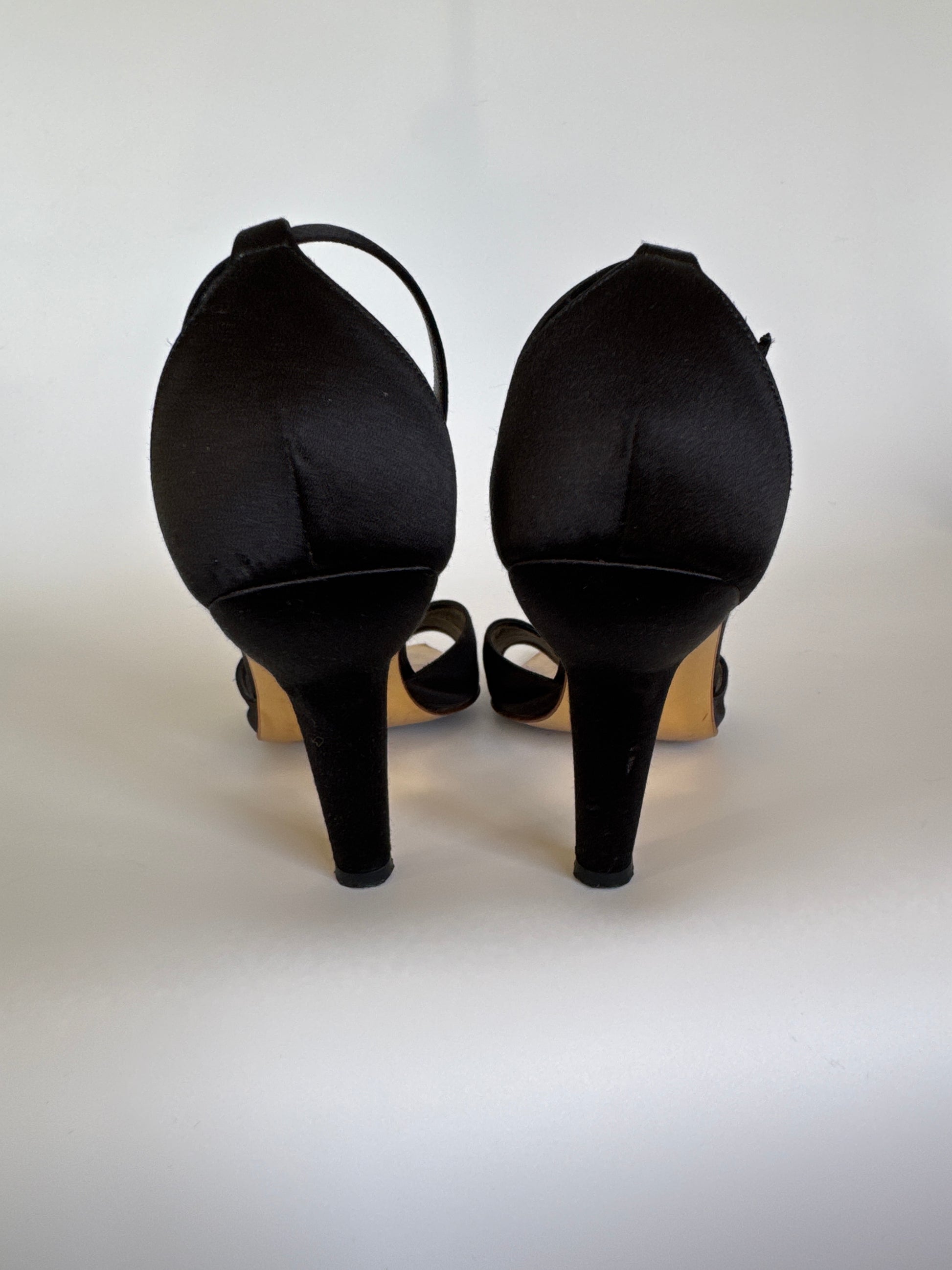 Condition: Good vintage — light wear to soles and minor creasing to satin (see photos).