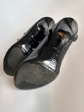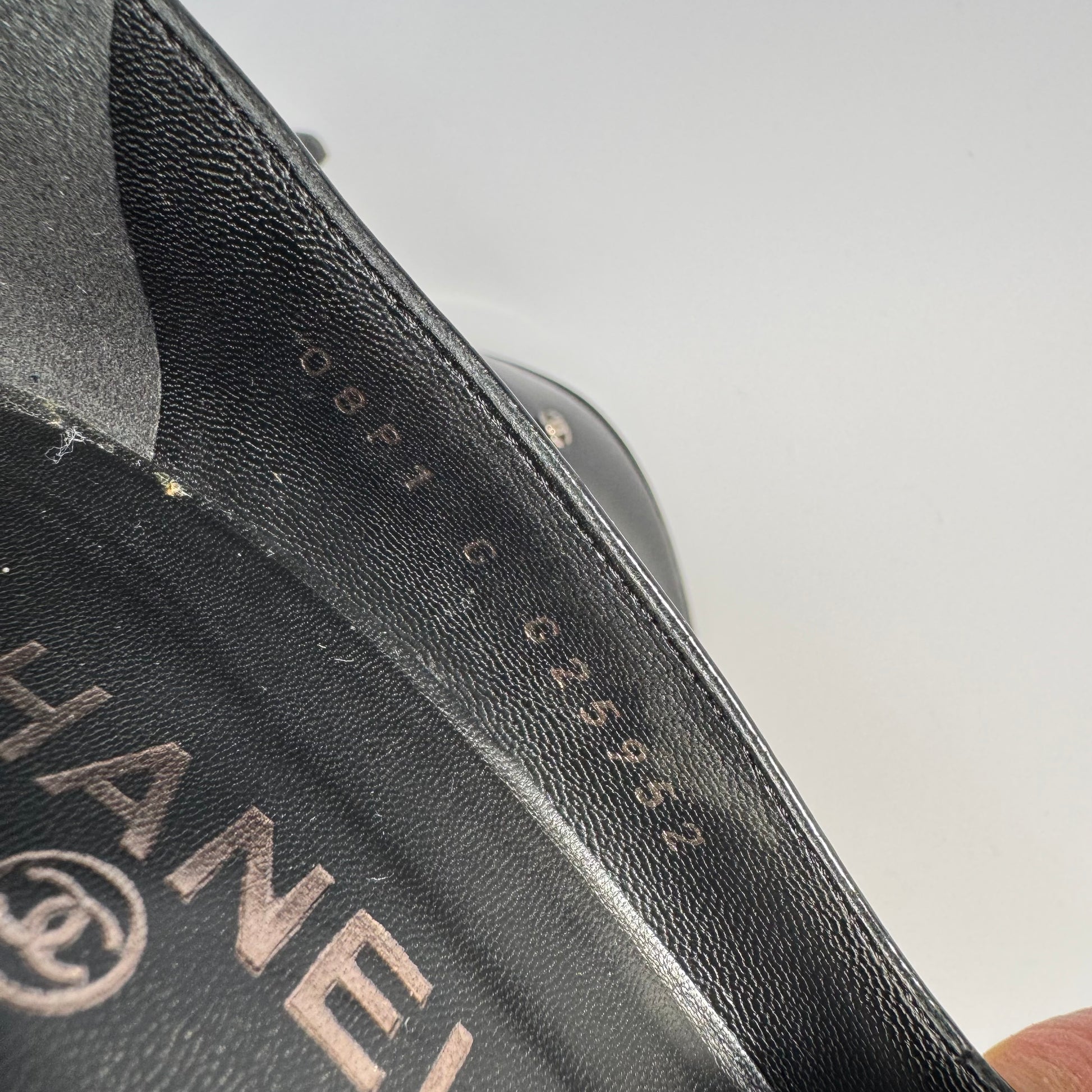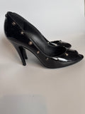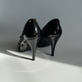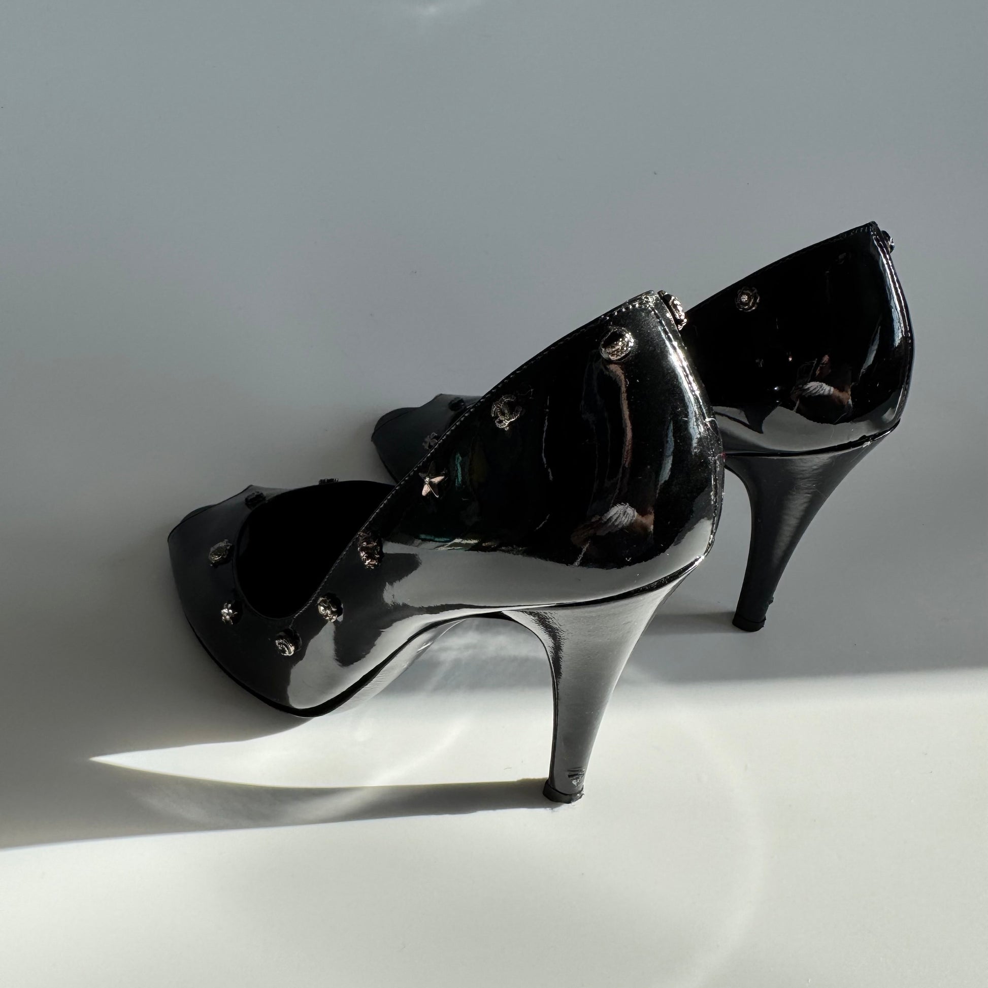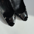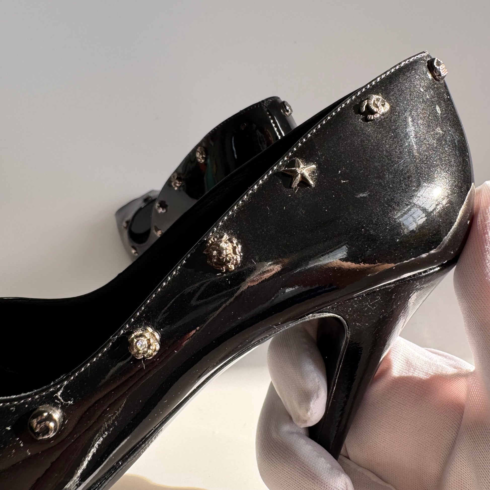 Chanel Black Patent Peep-Toe Pumps with Crystal CC Detail