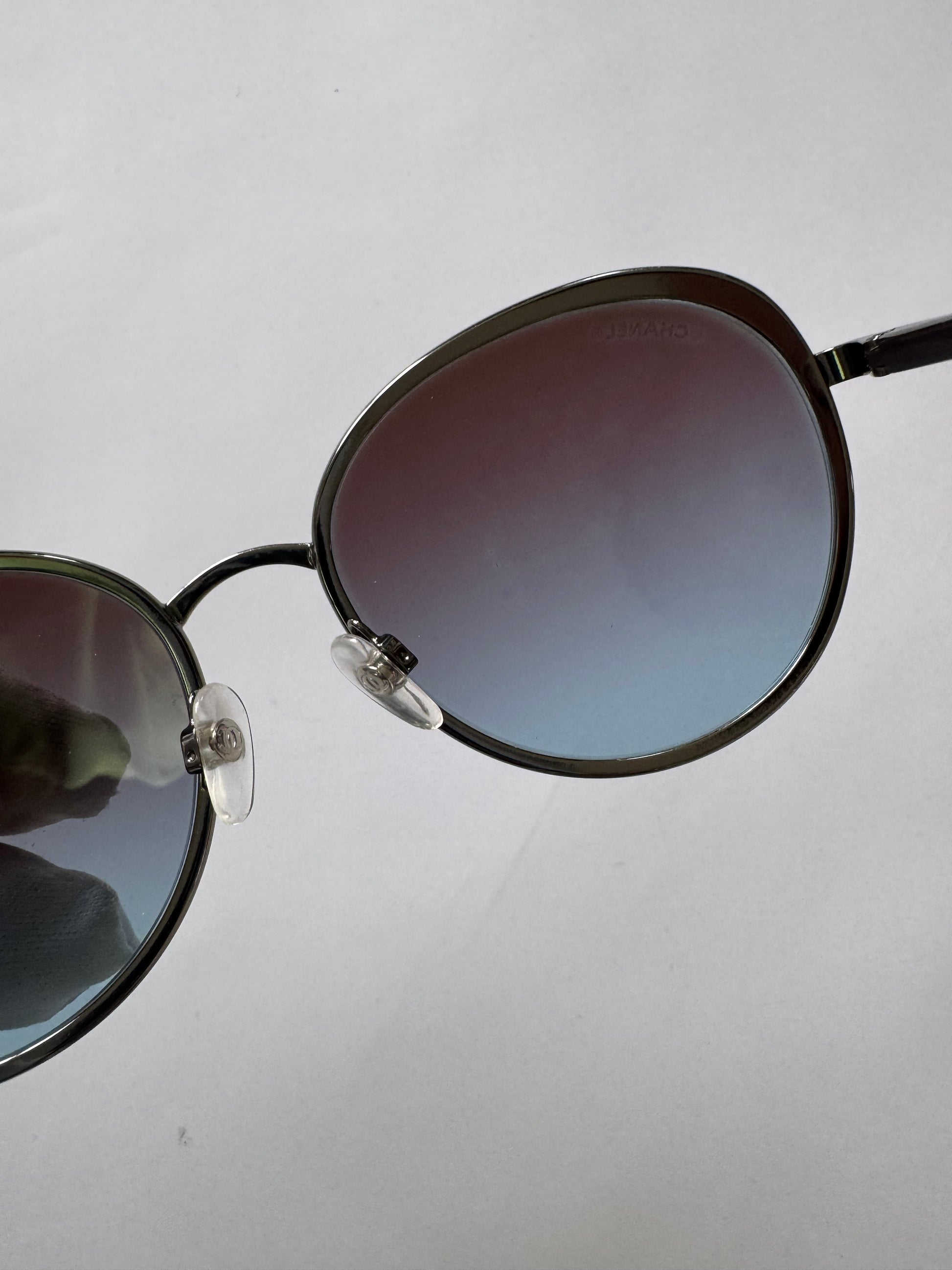 Details: Iconic round-frame Chanel sunglasses, model 4206, featuring elegant two-tone gradient lenses and classic Chanel design.