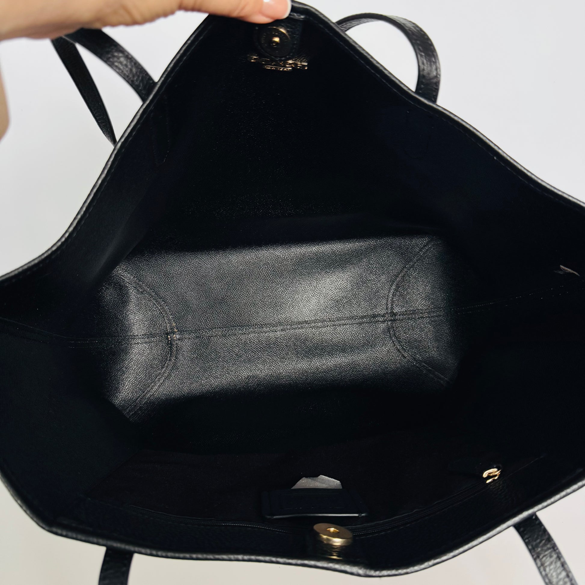 • Black leather top handles