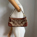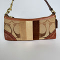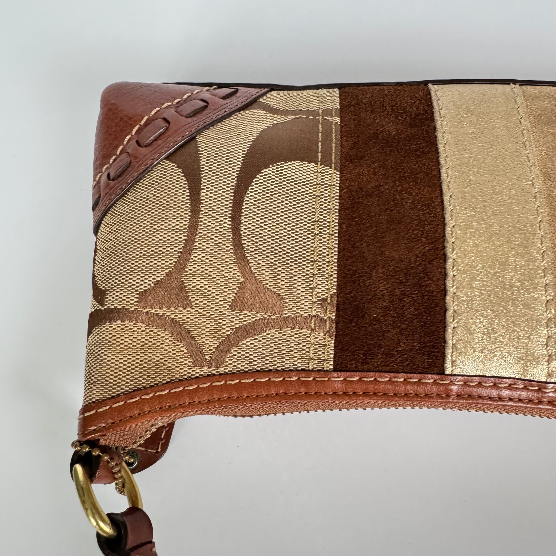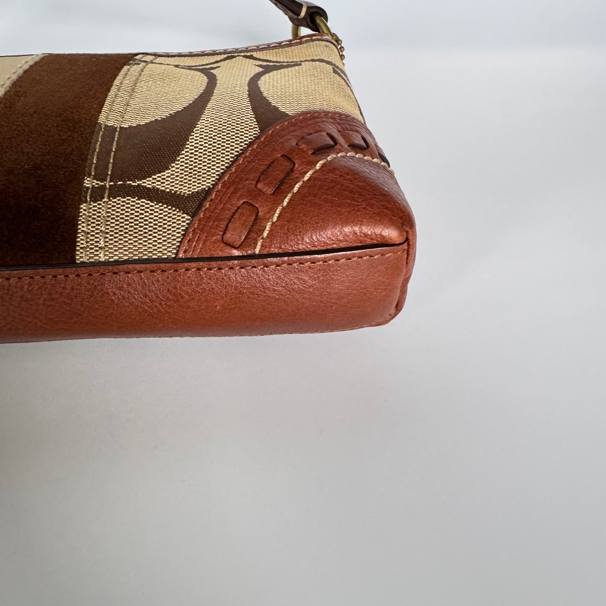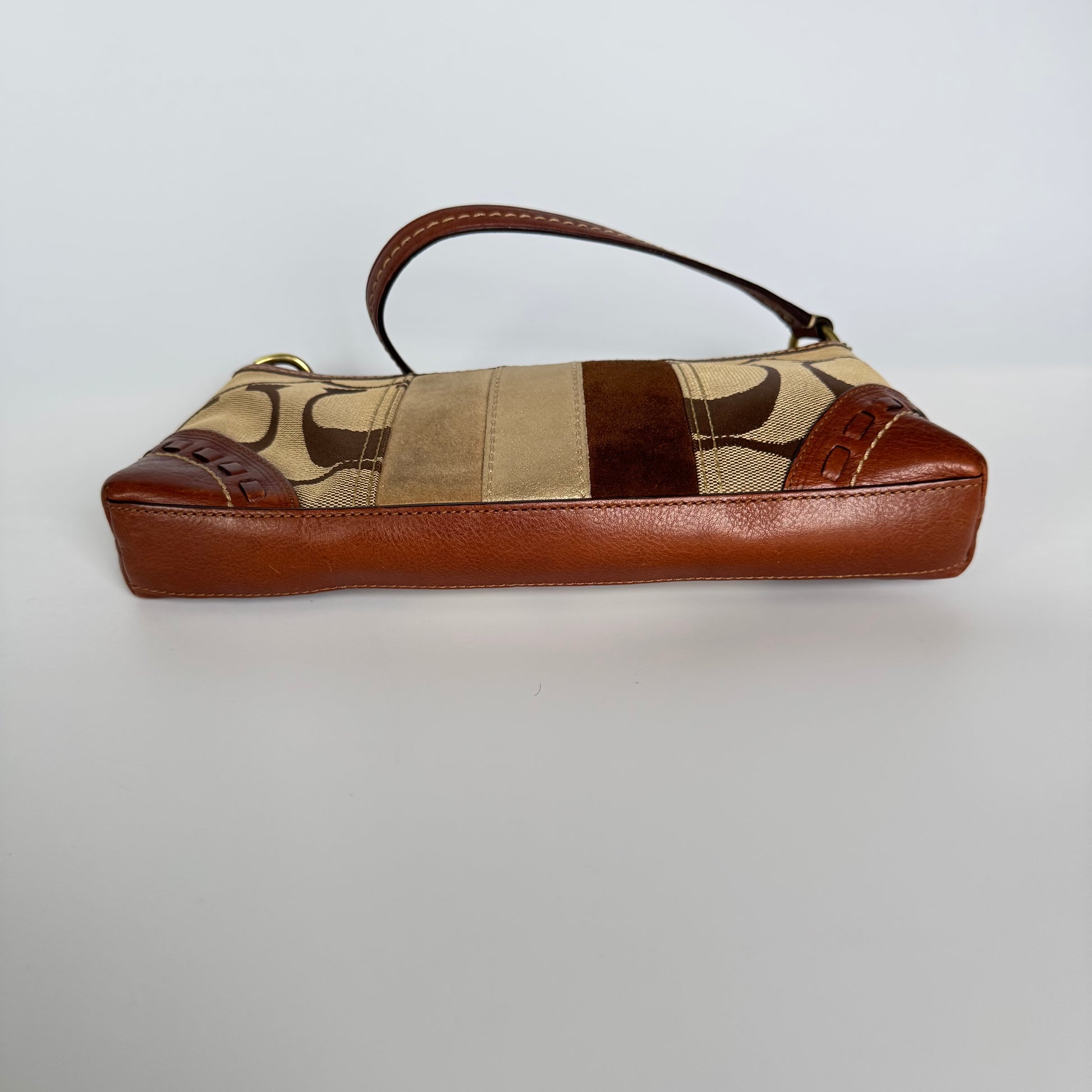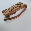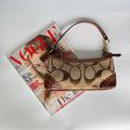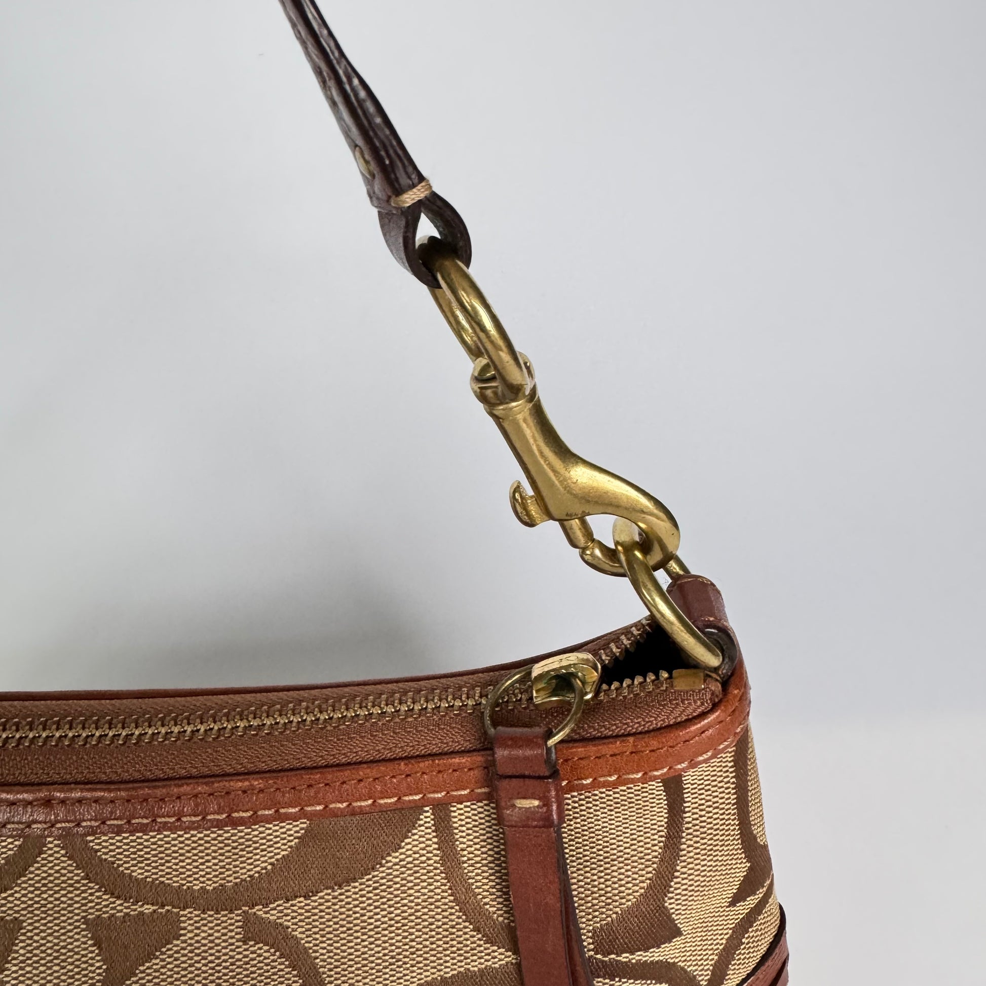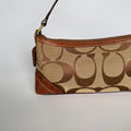 A Y2K favourite — this vintage Coach pochette features the signature monogram canvas with caramel leather trim and brass hardware. Compact, easy, and effortlessly chic for everyday wear.