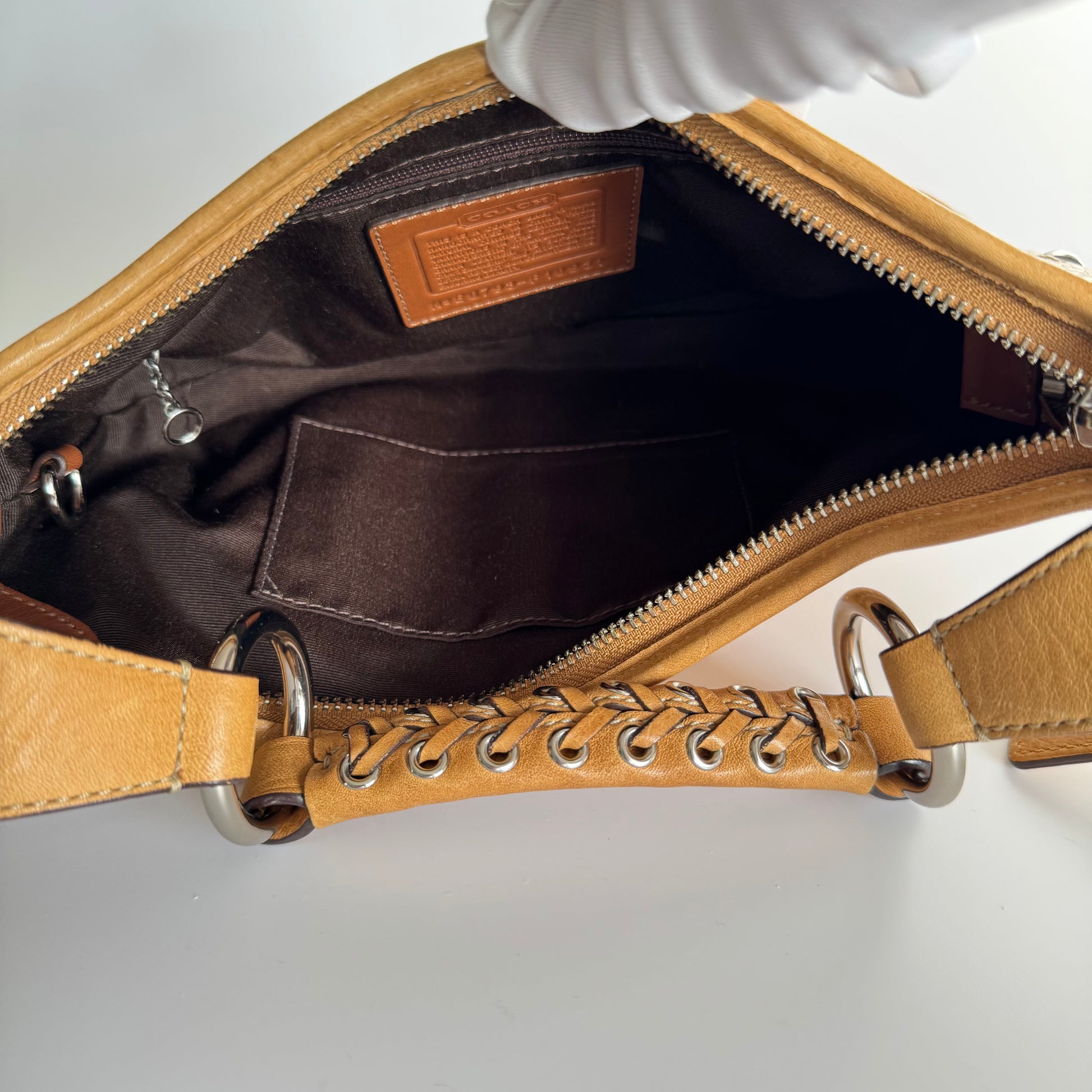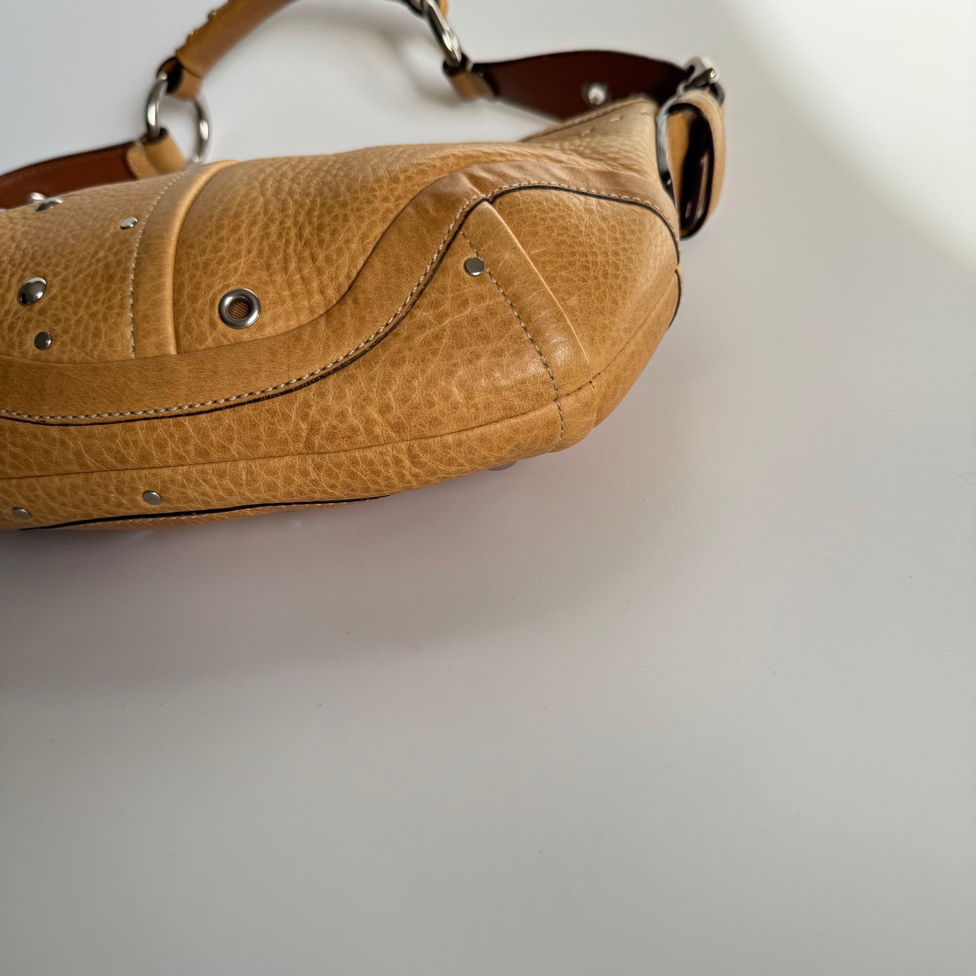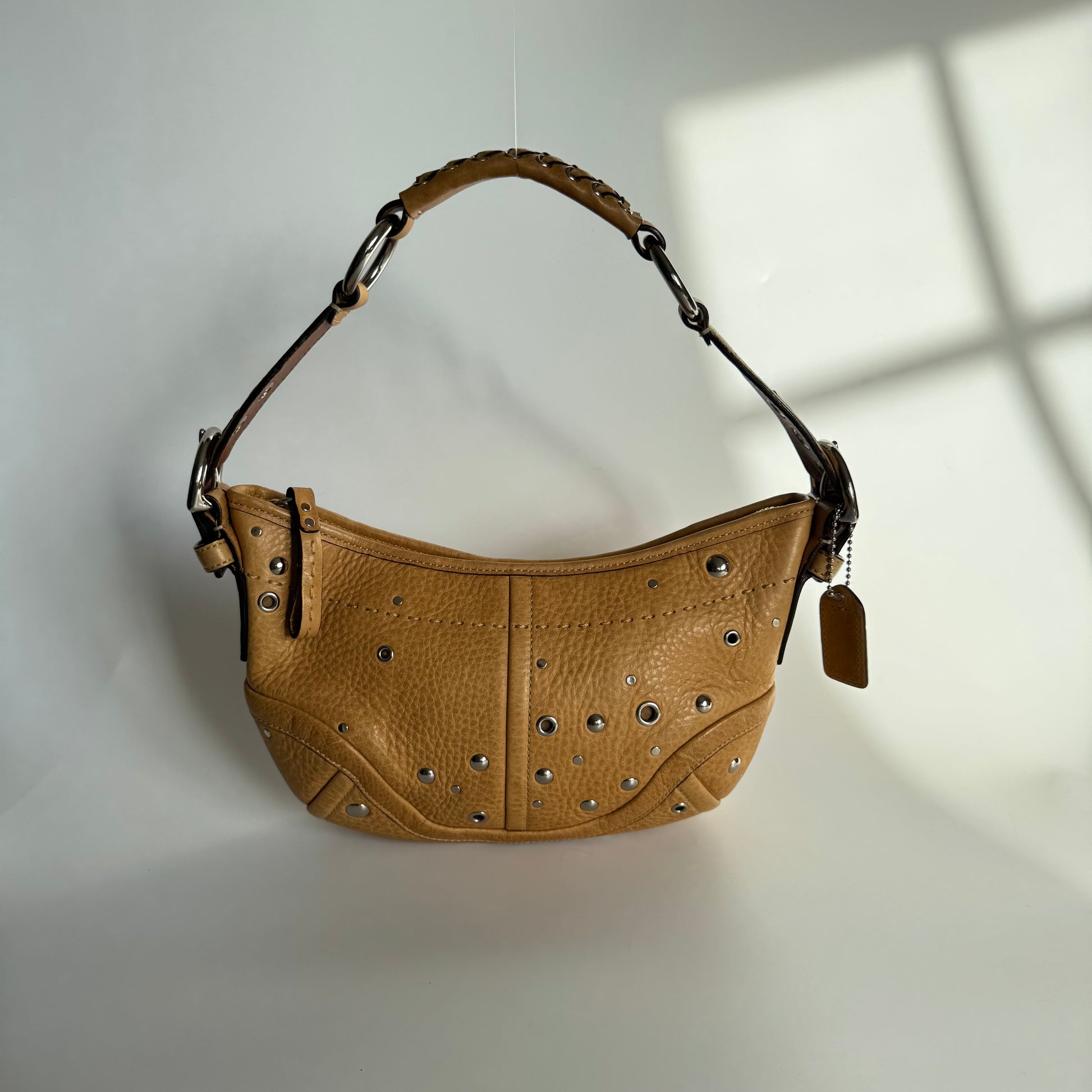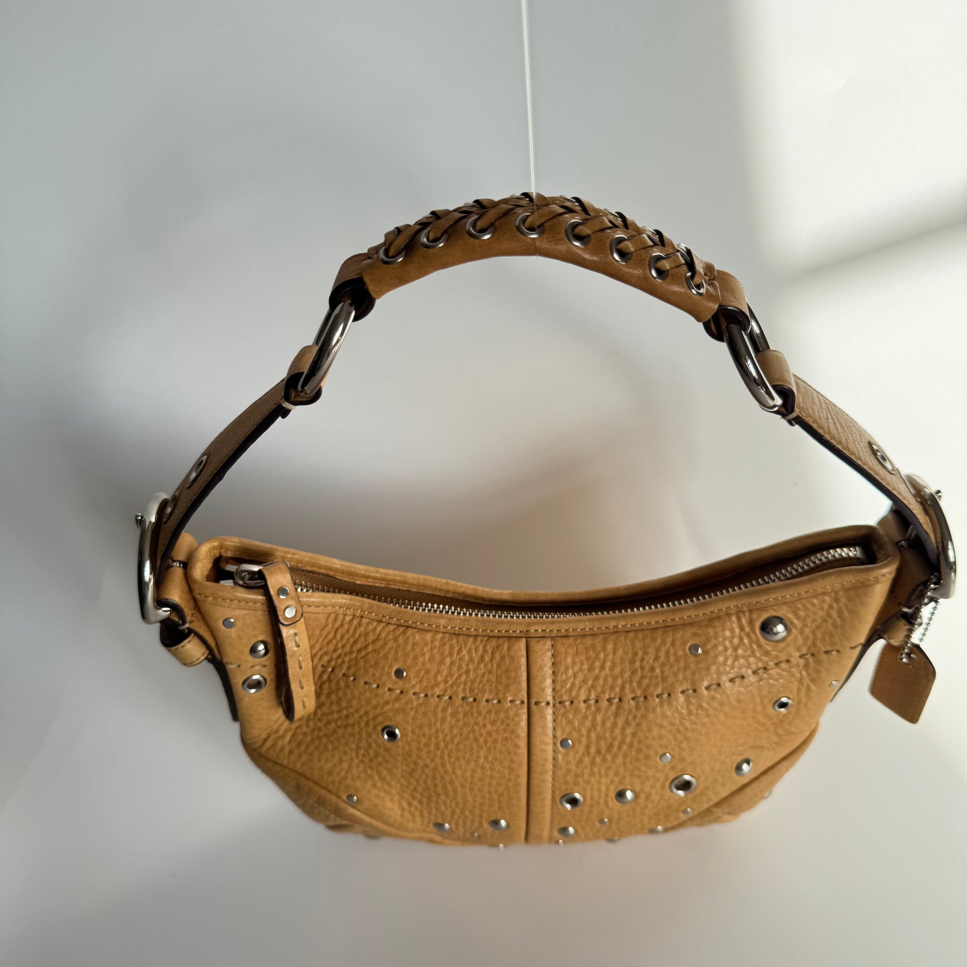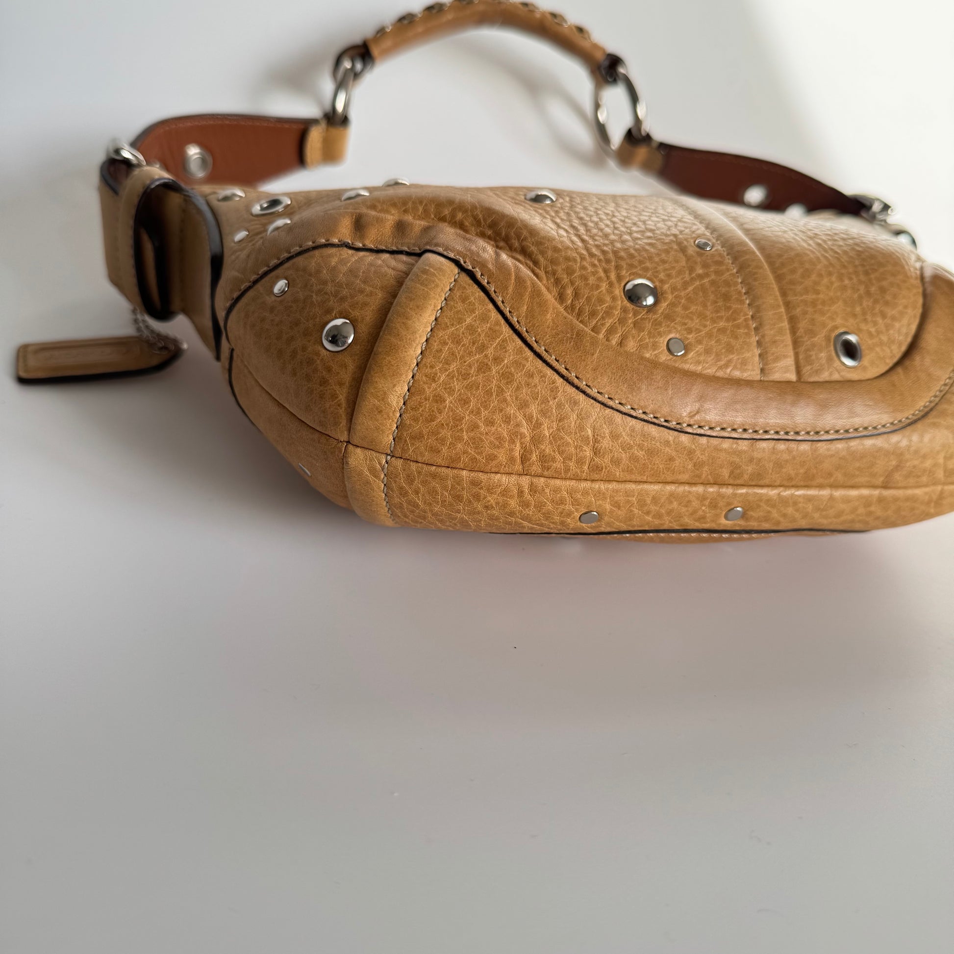 Coach Tan Pebbled Leather Shoulder Bag with Stud Detail