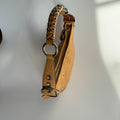 Tan pebbled leather with silver-tone grommets and stud embellishments