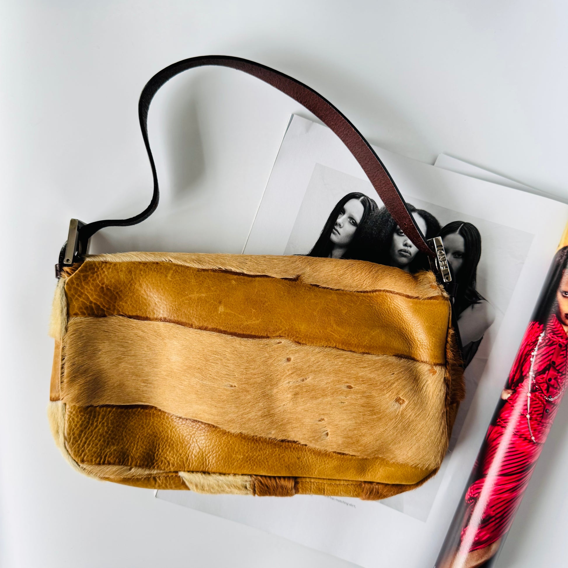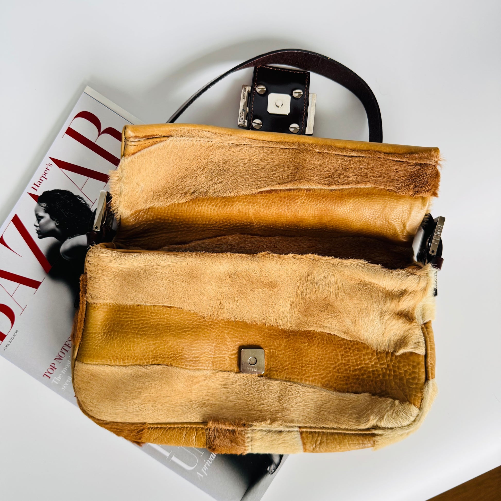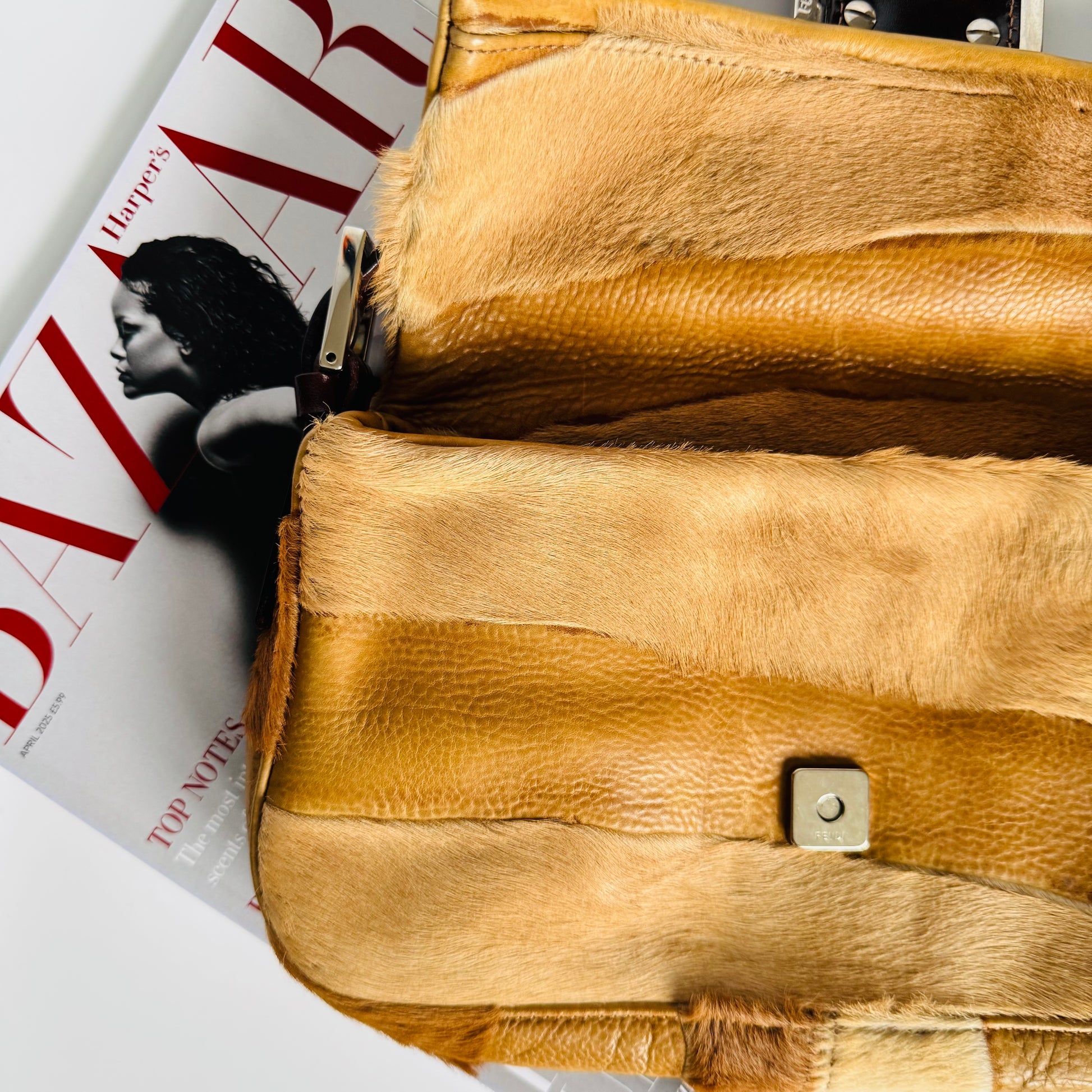 Crafted in patchwork calf hair with a rich mix of golden and caramel tones, accented by the signature FF buckle. A true statement piece from Fendi’s iconic Baguette line.