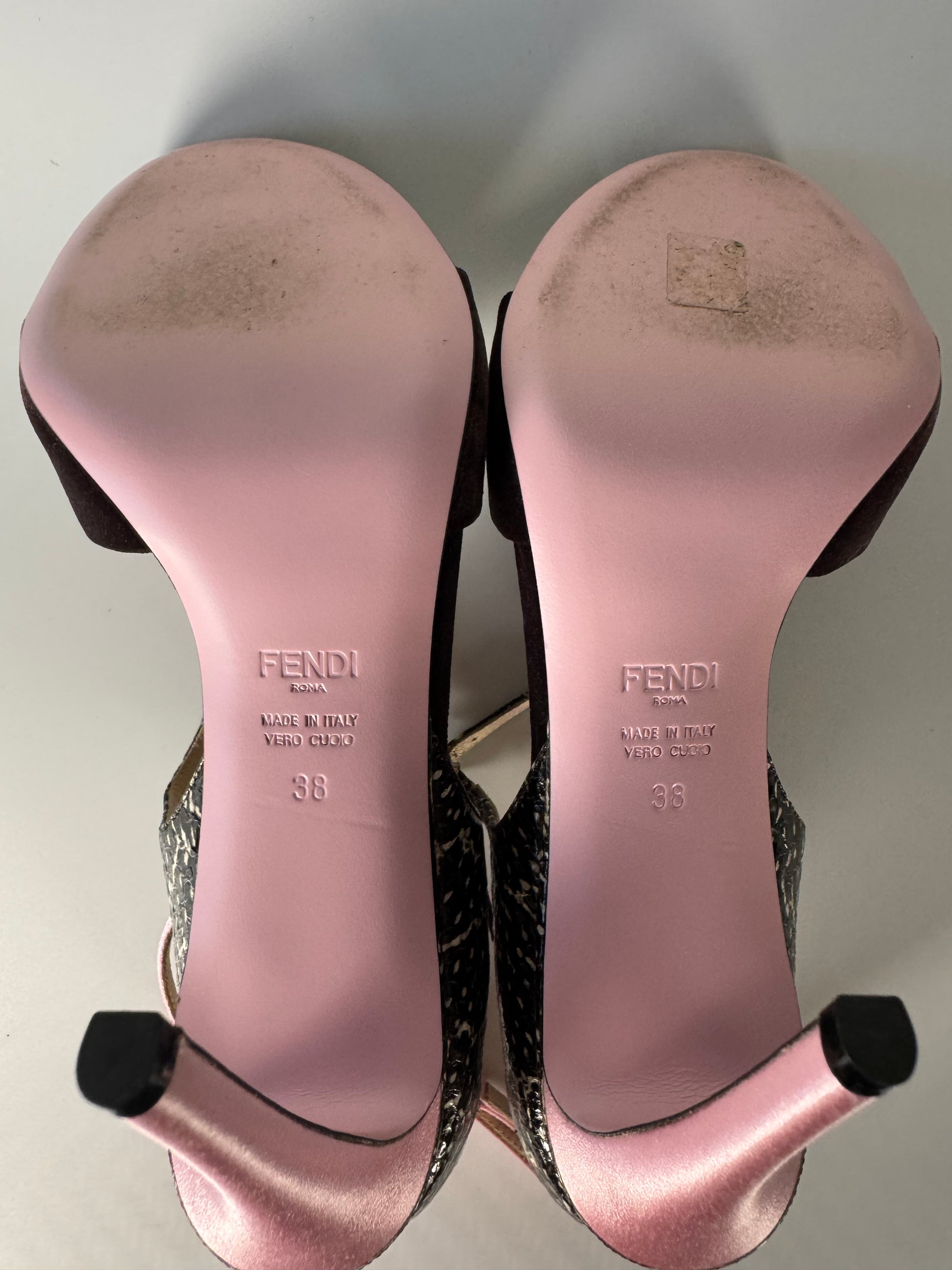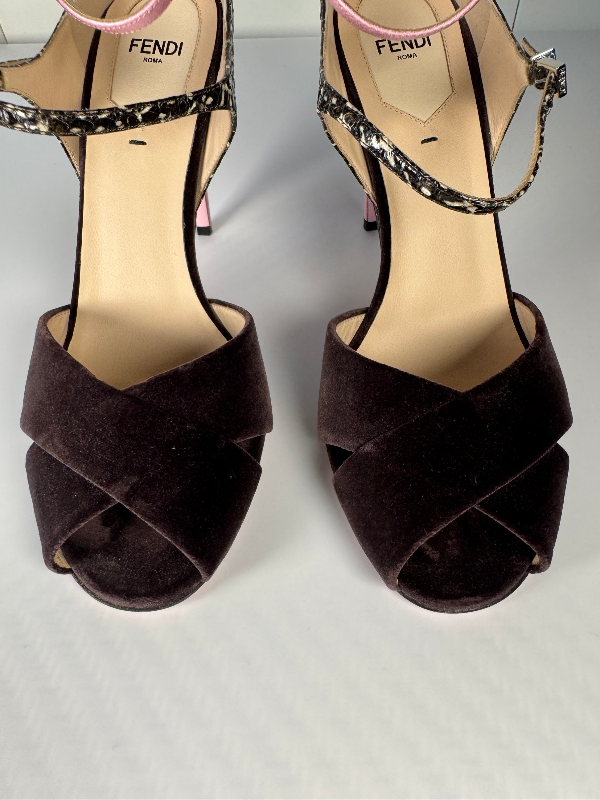 Fendi Multicolor Python Embossed Leather and Velvet Ankle Strap Sandals (size 38)