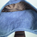 Condition: Very good vintage – gentle fading on denim and light wear on leather trim (see photos).