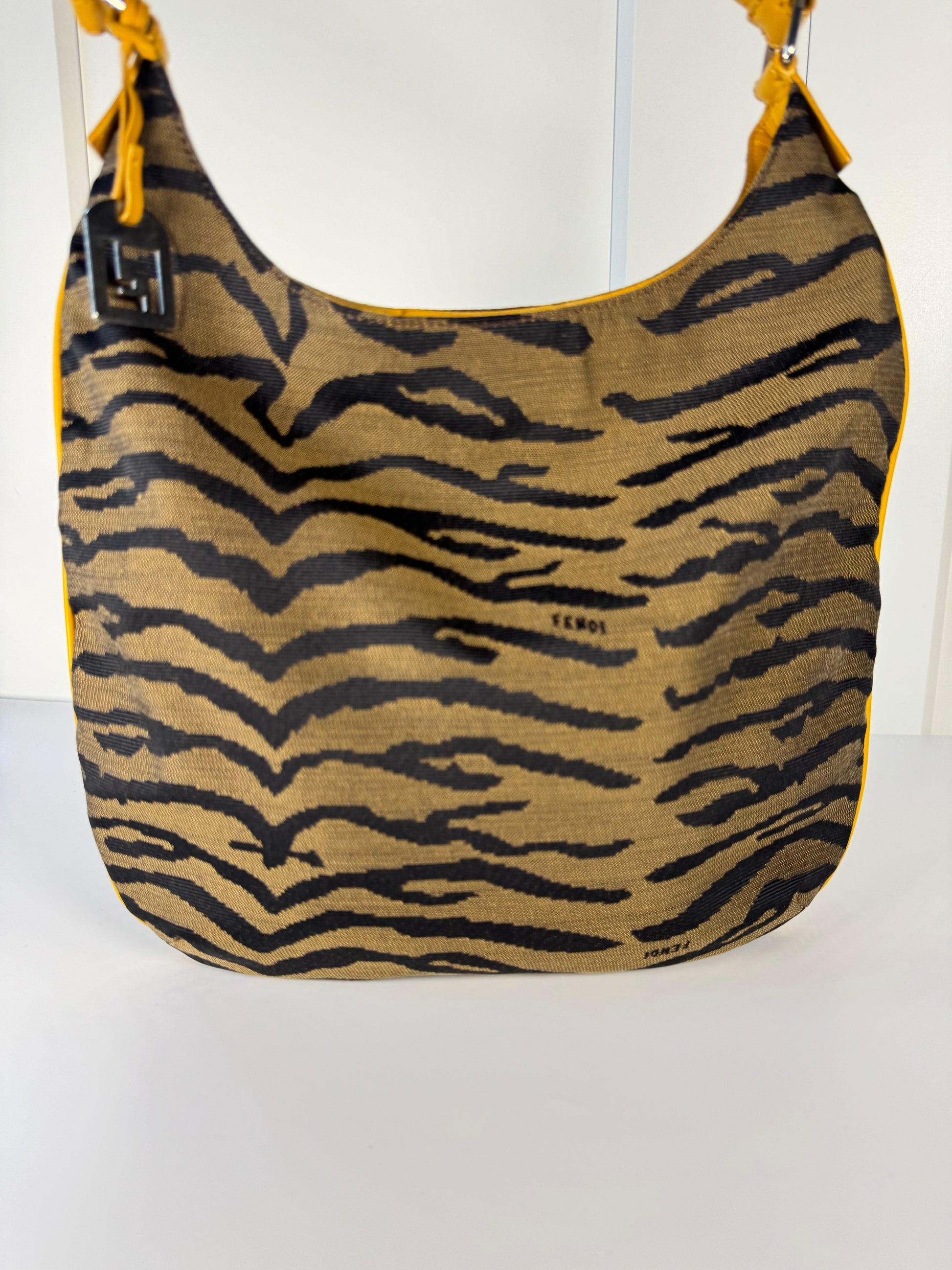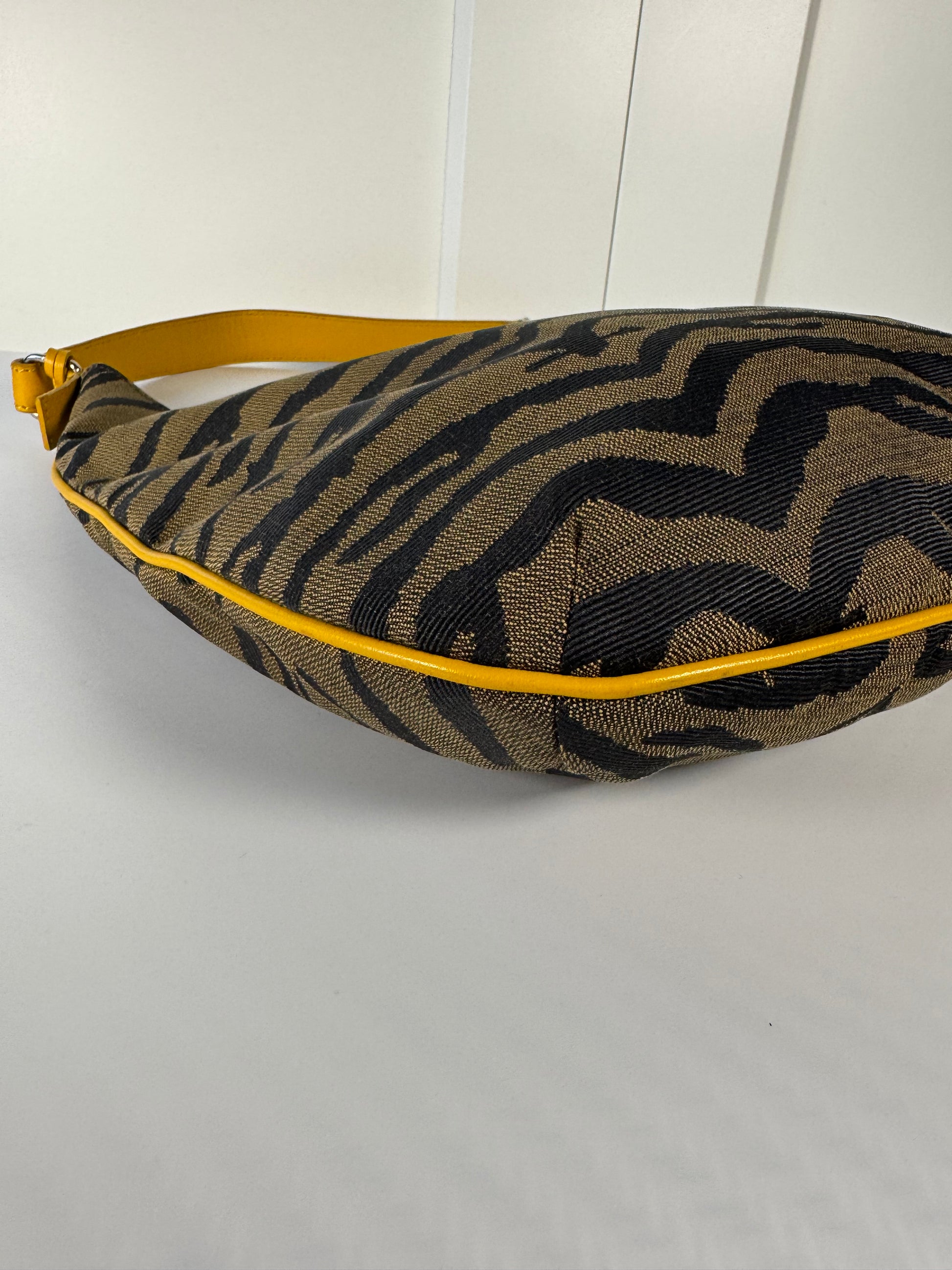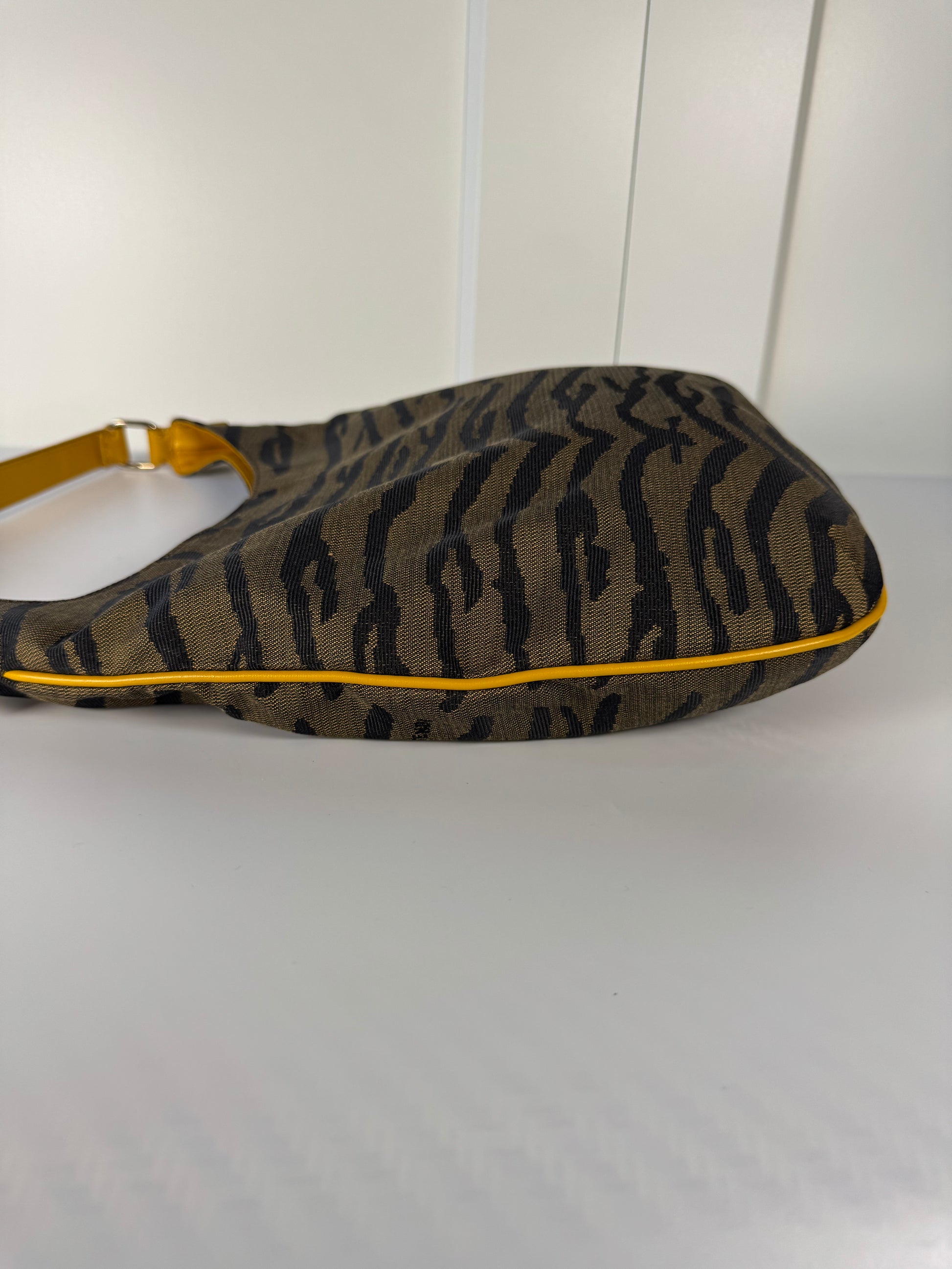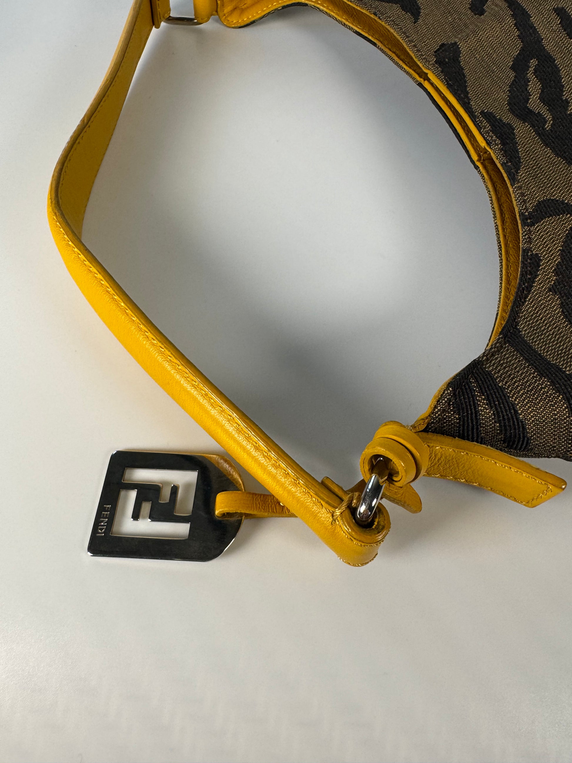 2000s Fendi Tiger Jacquard Canvas Shoulder Bag – Brown / Mustard