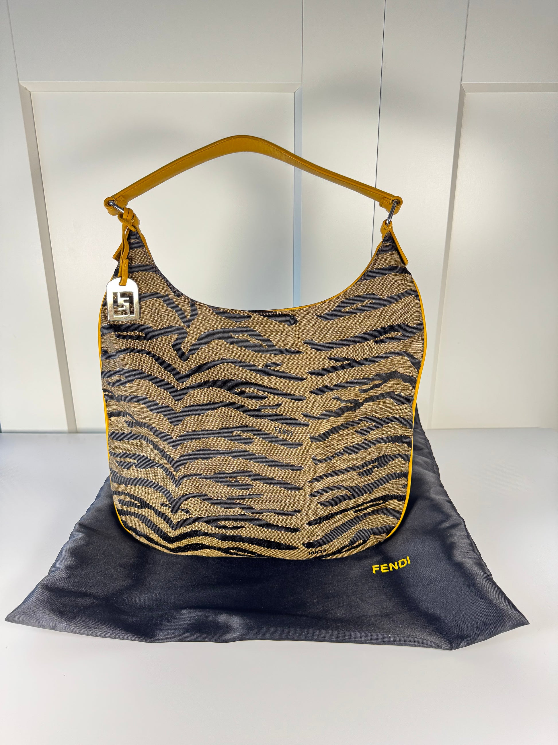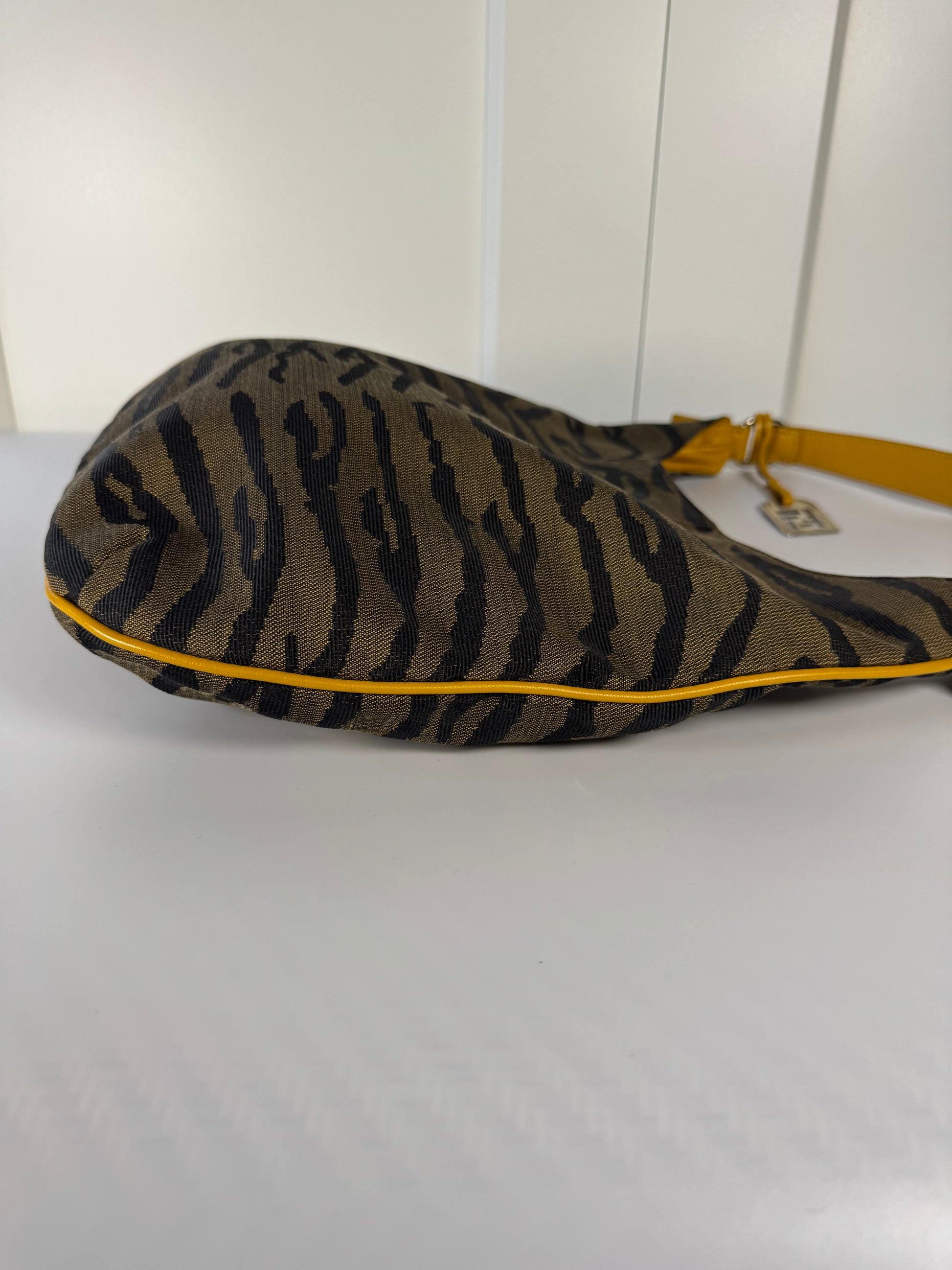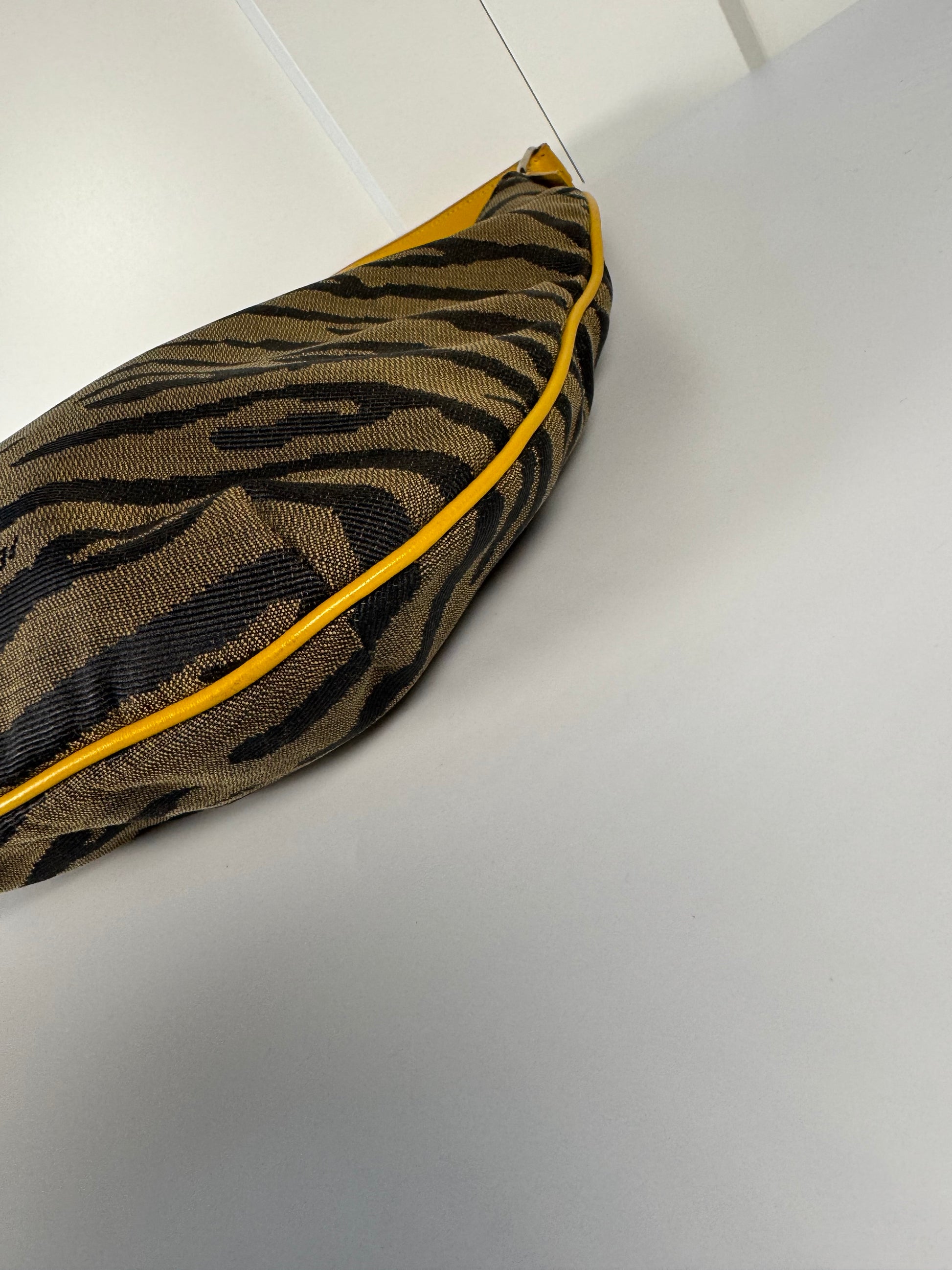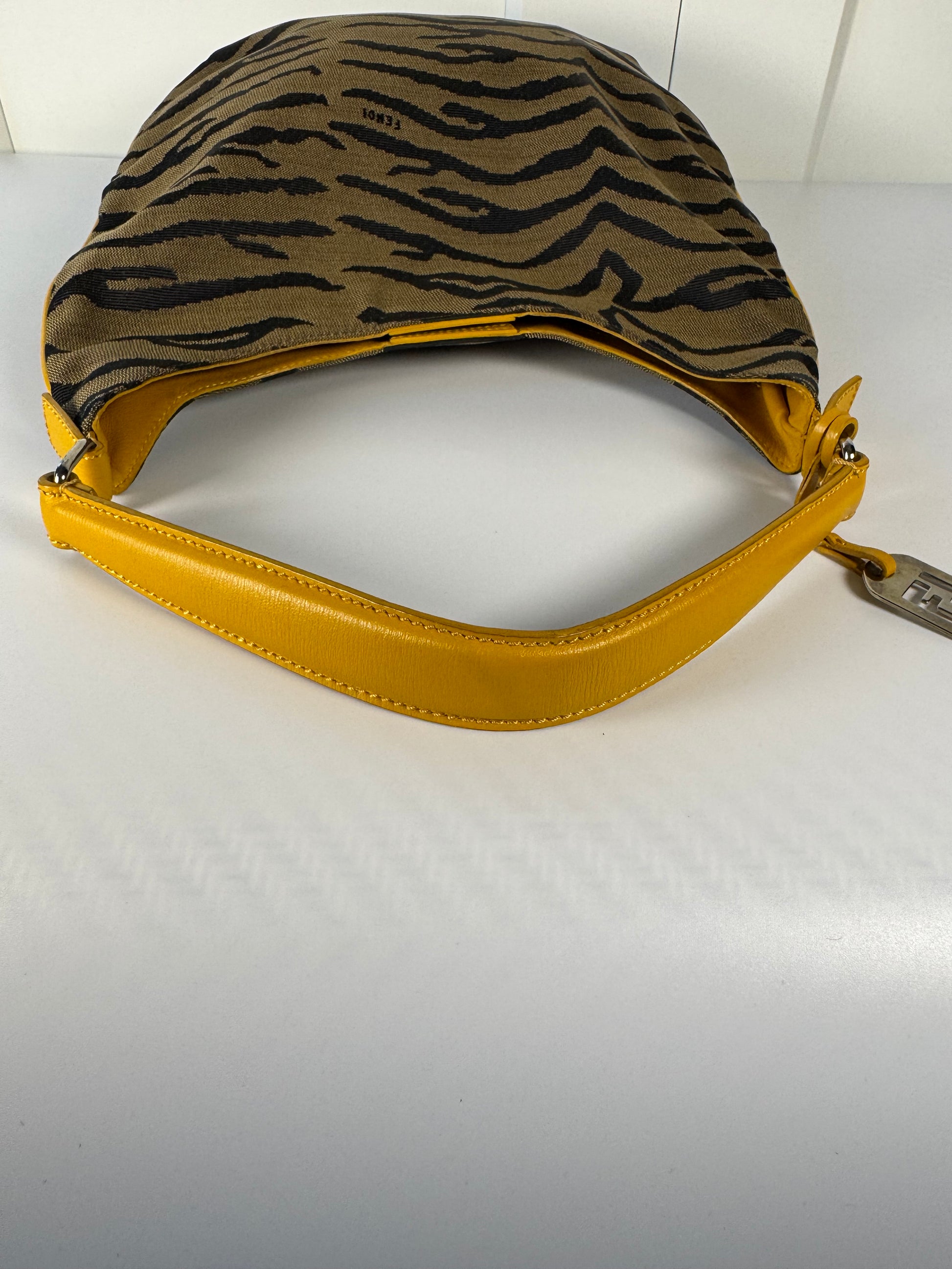 2000s Fendi Tiger Jacquard Canvas Shoulder Bag – Brown / Mustard