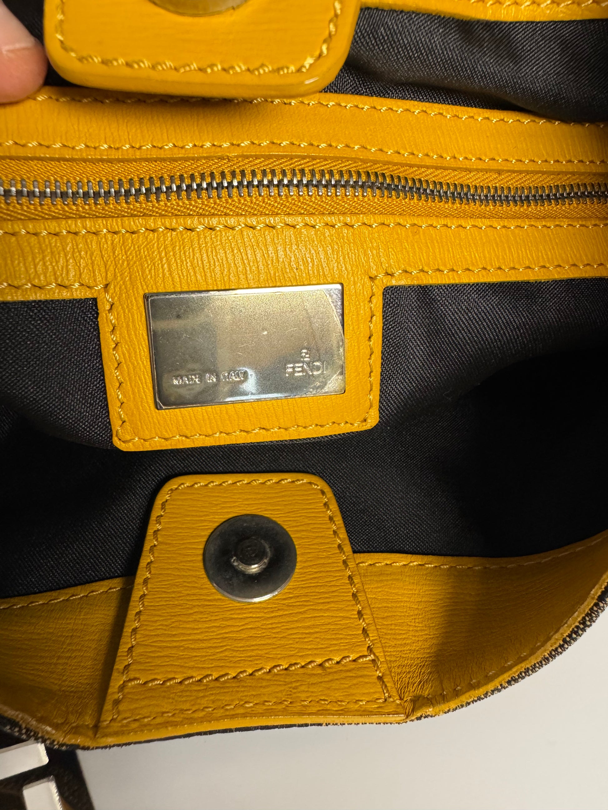 The interior features a zipped pocket with original Fendi metal zip puller, ideal for securing essentials. The bag remains in very good vintage condition and presents almost like new, with minimal signs of wear. A highly collectible early-2000s Fendi piece, increasingly hard to find in such beautiful condition.