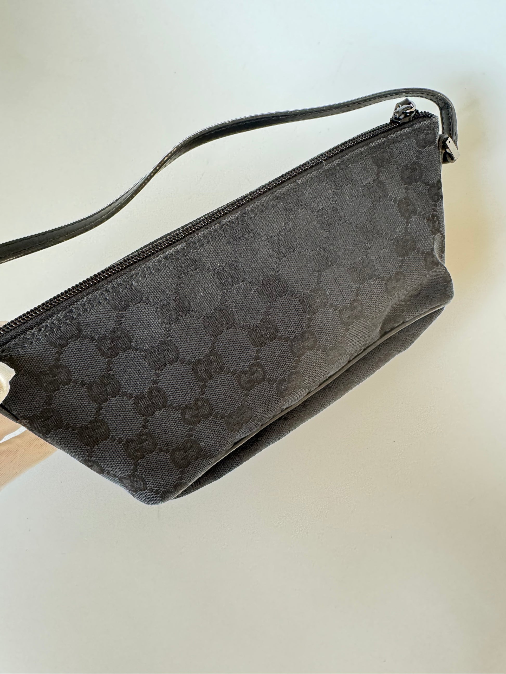 Details: Iconic GG monogram canvas, compact mini silhouette, zip closure, leather handle, sleek and minimal design