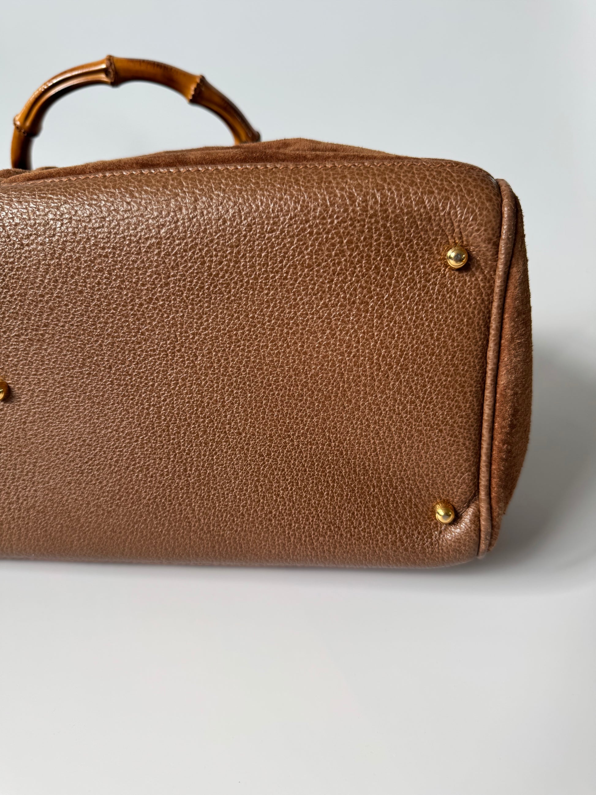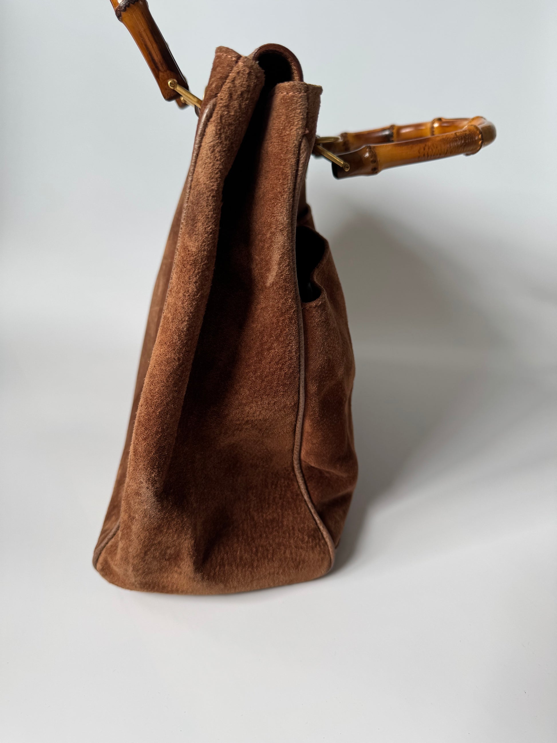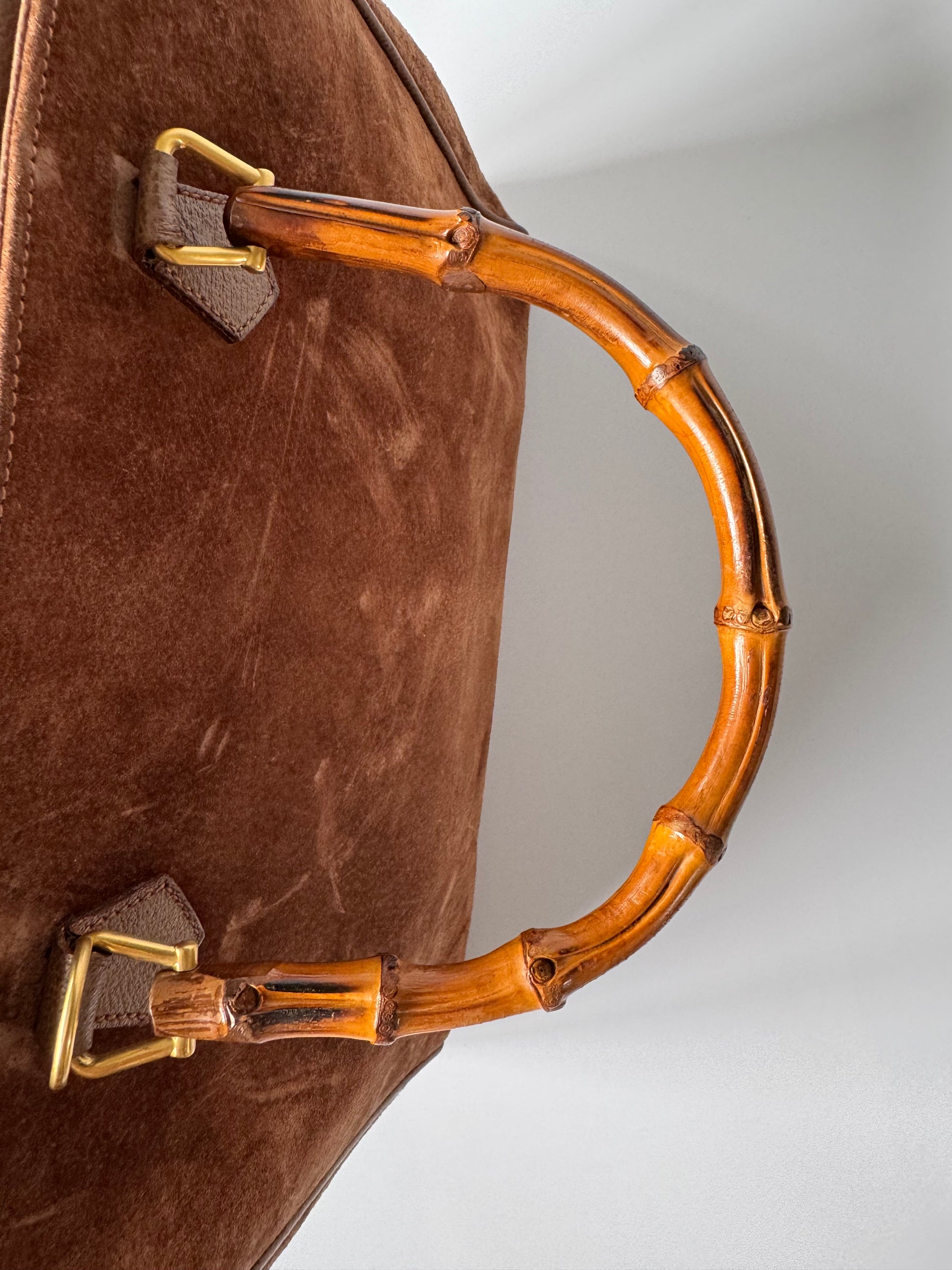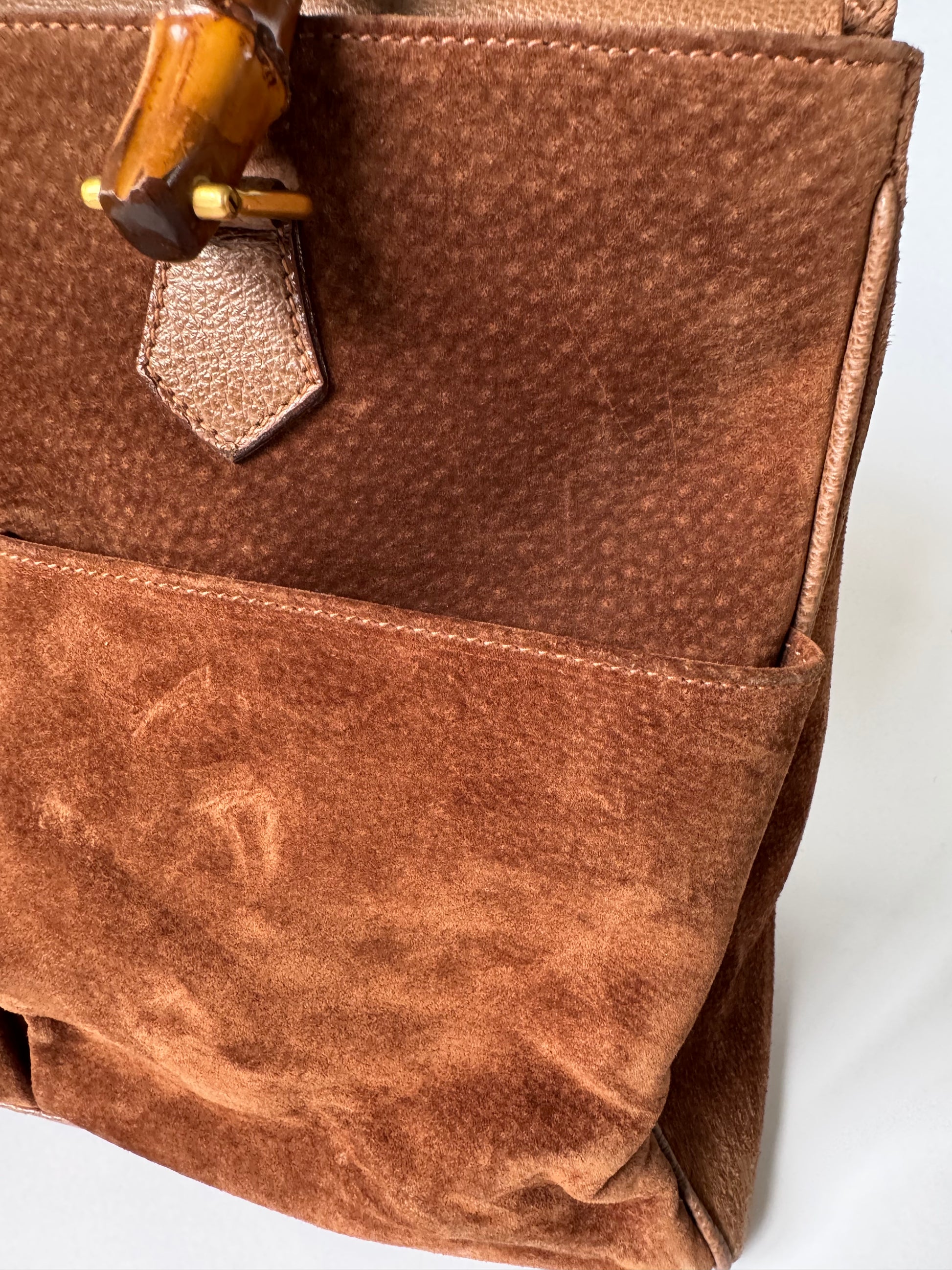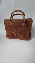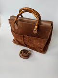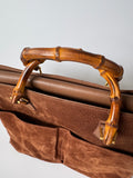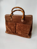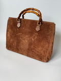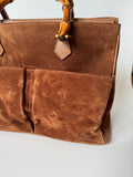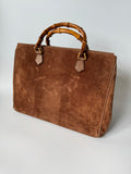 Vintage Gucci Brown Suede Bamboo Handle Bag