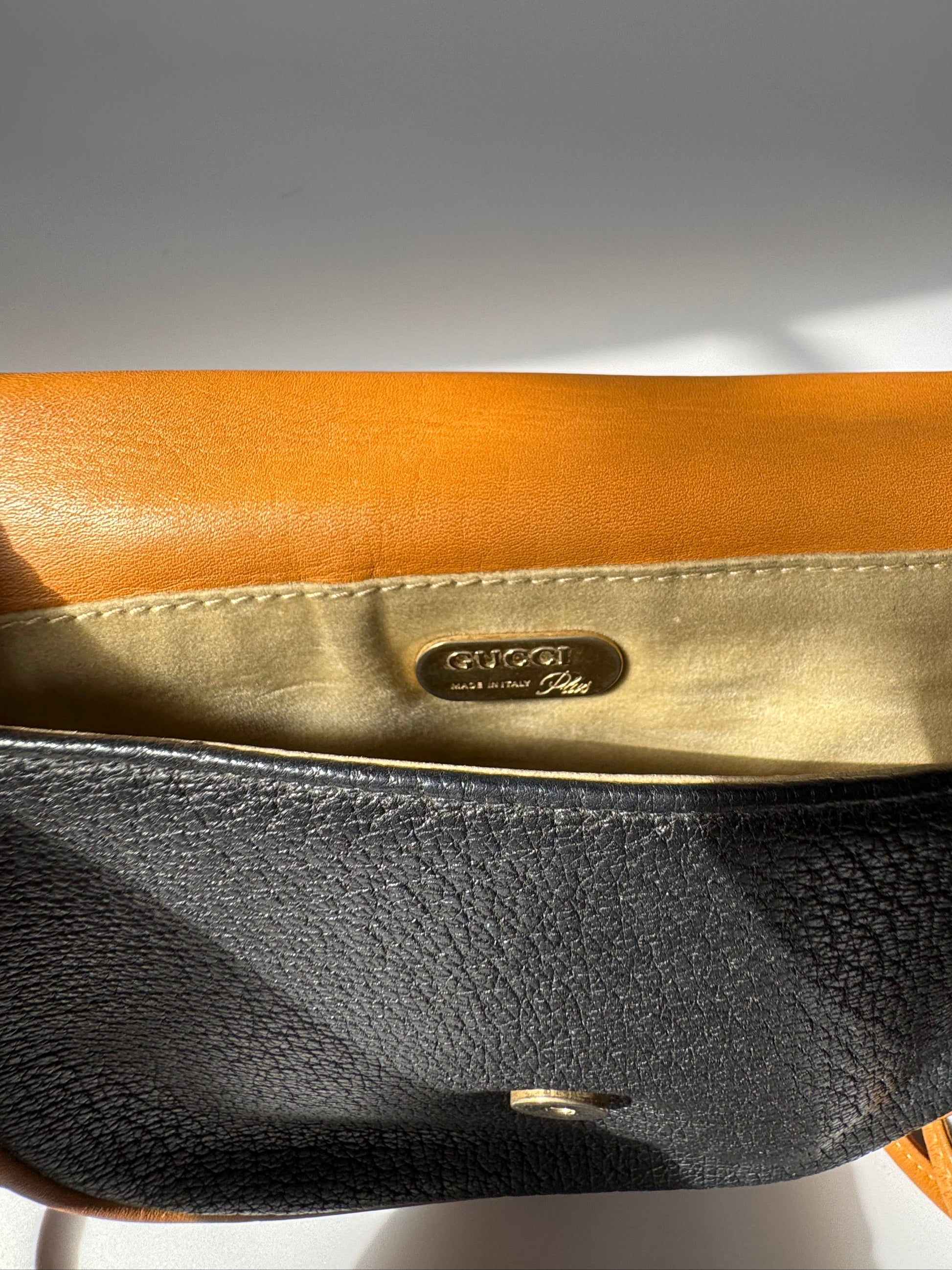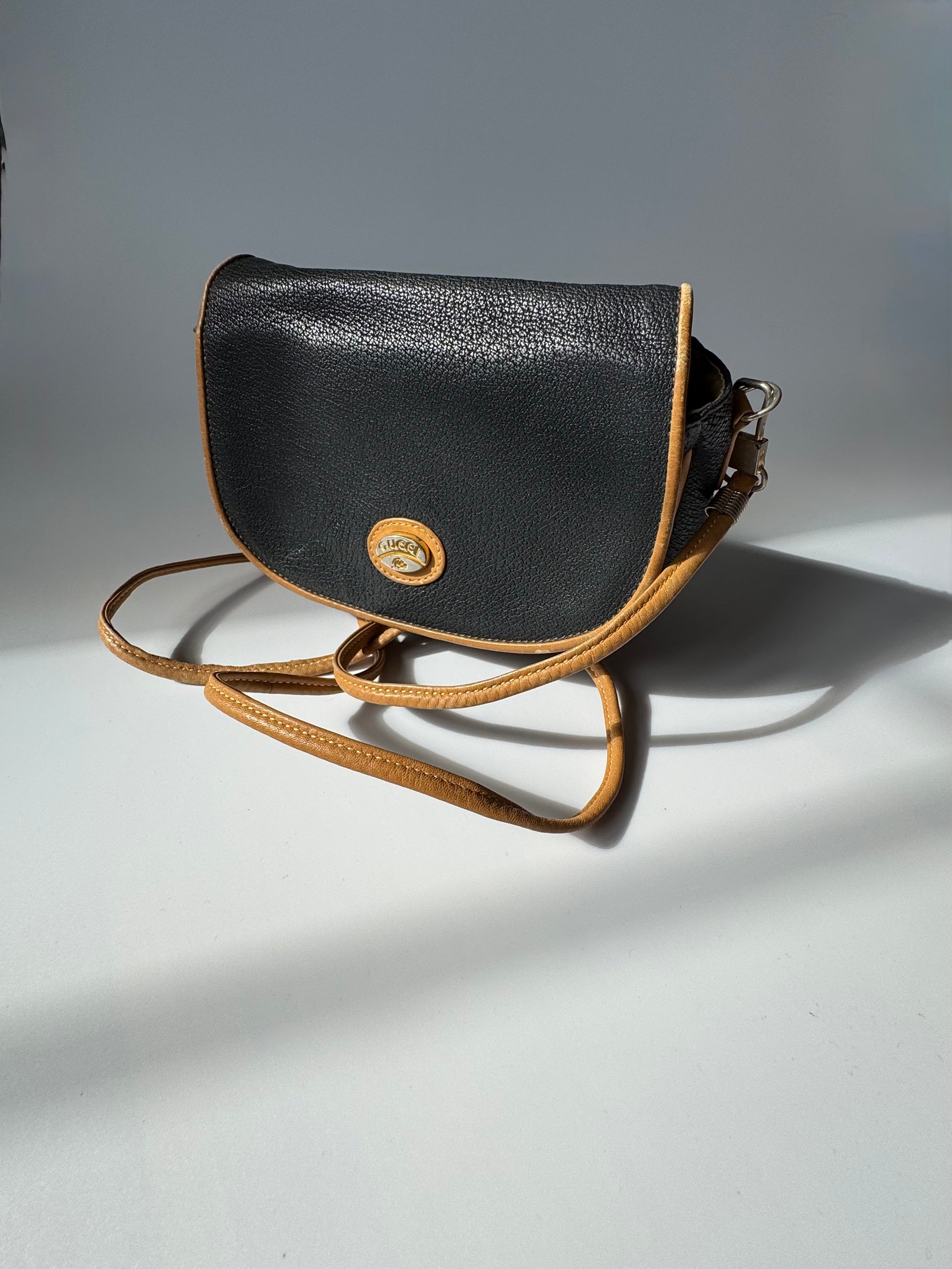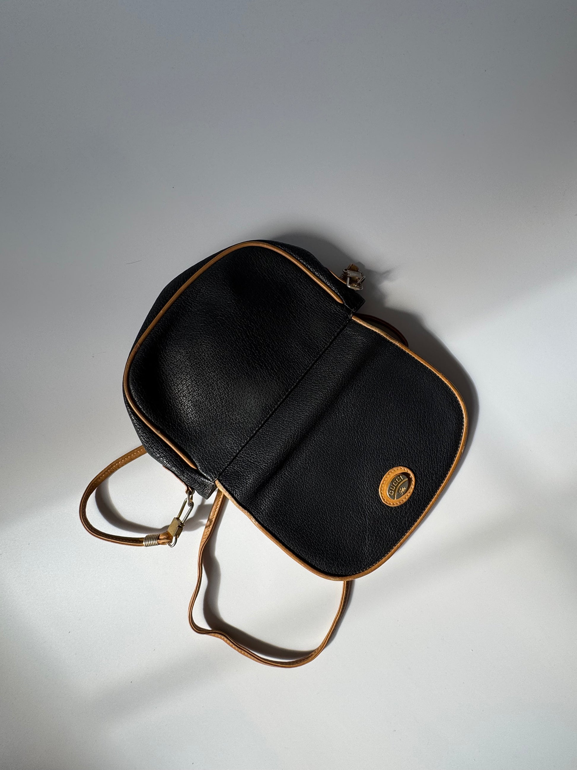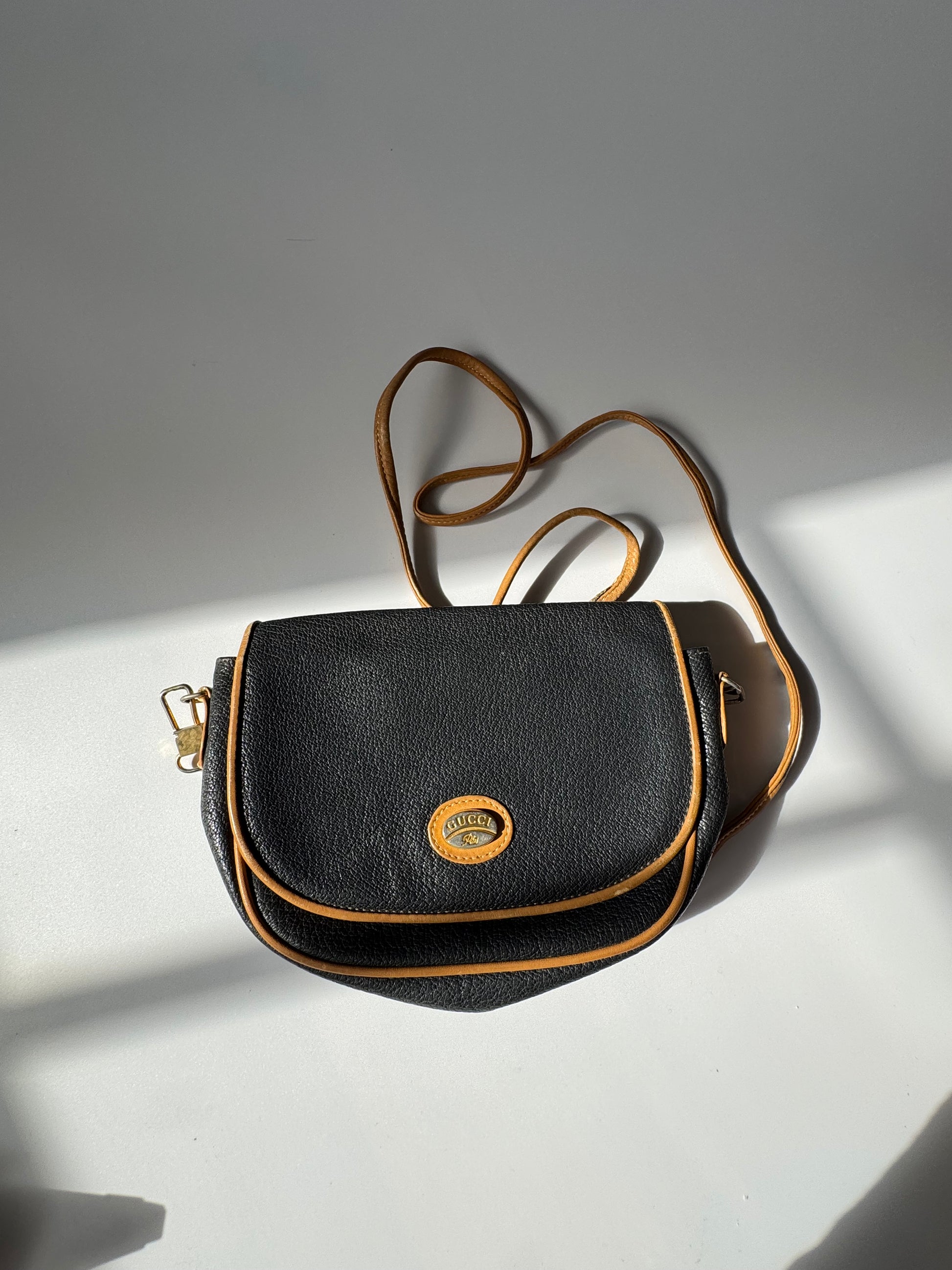 1980s Gucci Vintage Black Leather Crossbody Bag