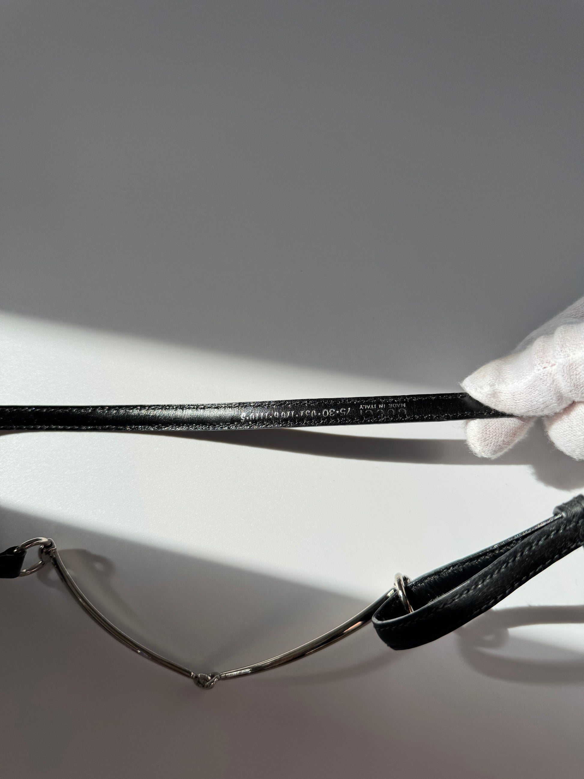 Vintage Gucci Black Leather Horsebit Belt (Silver-Tone) (Size 79 cm)