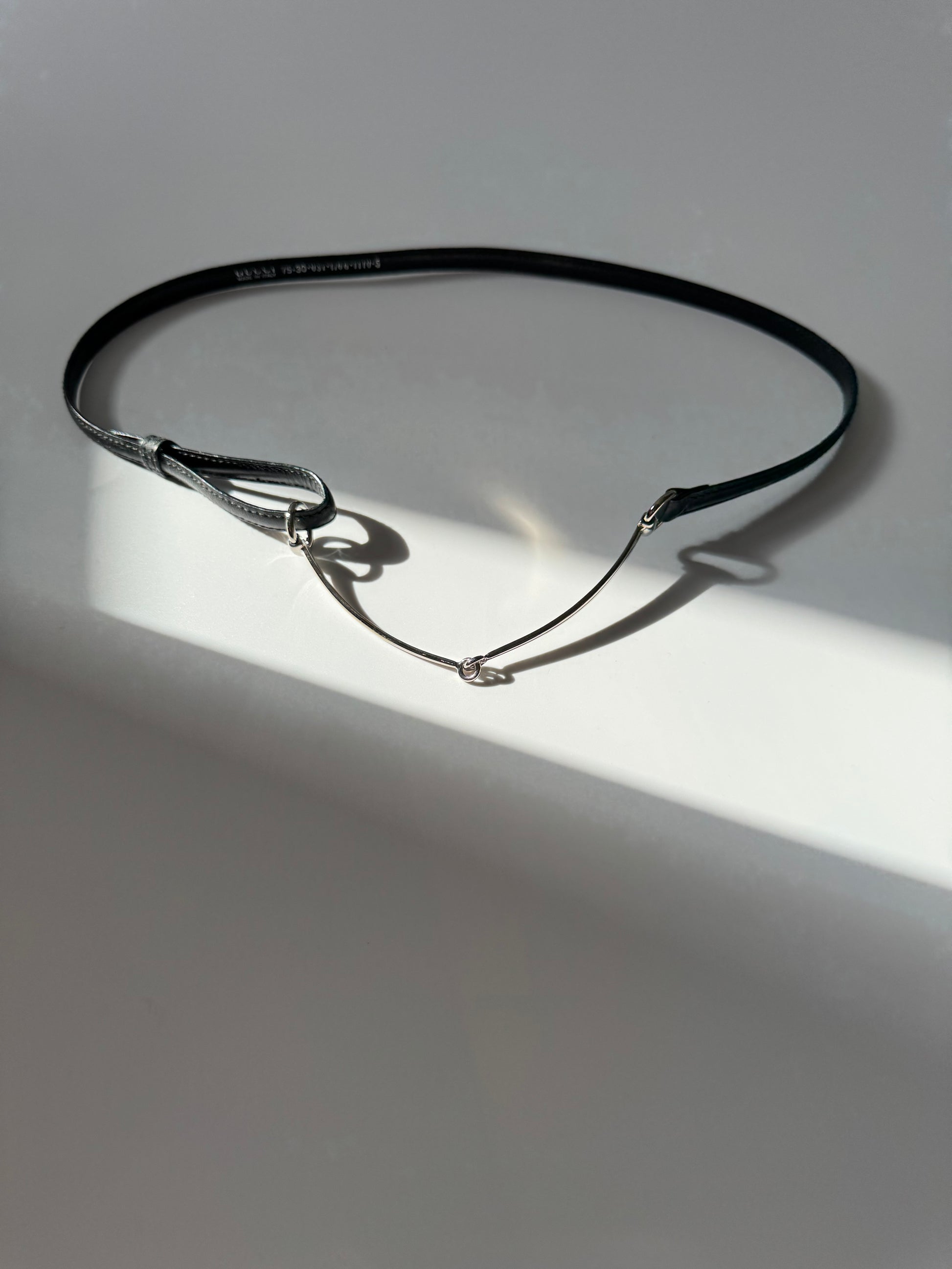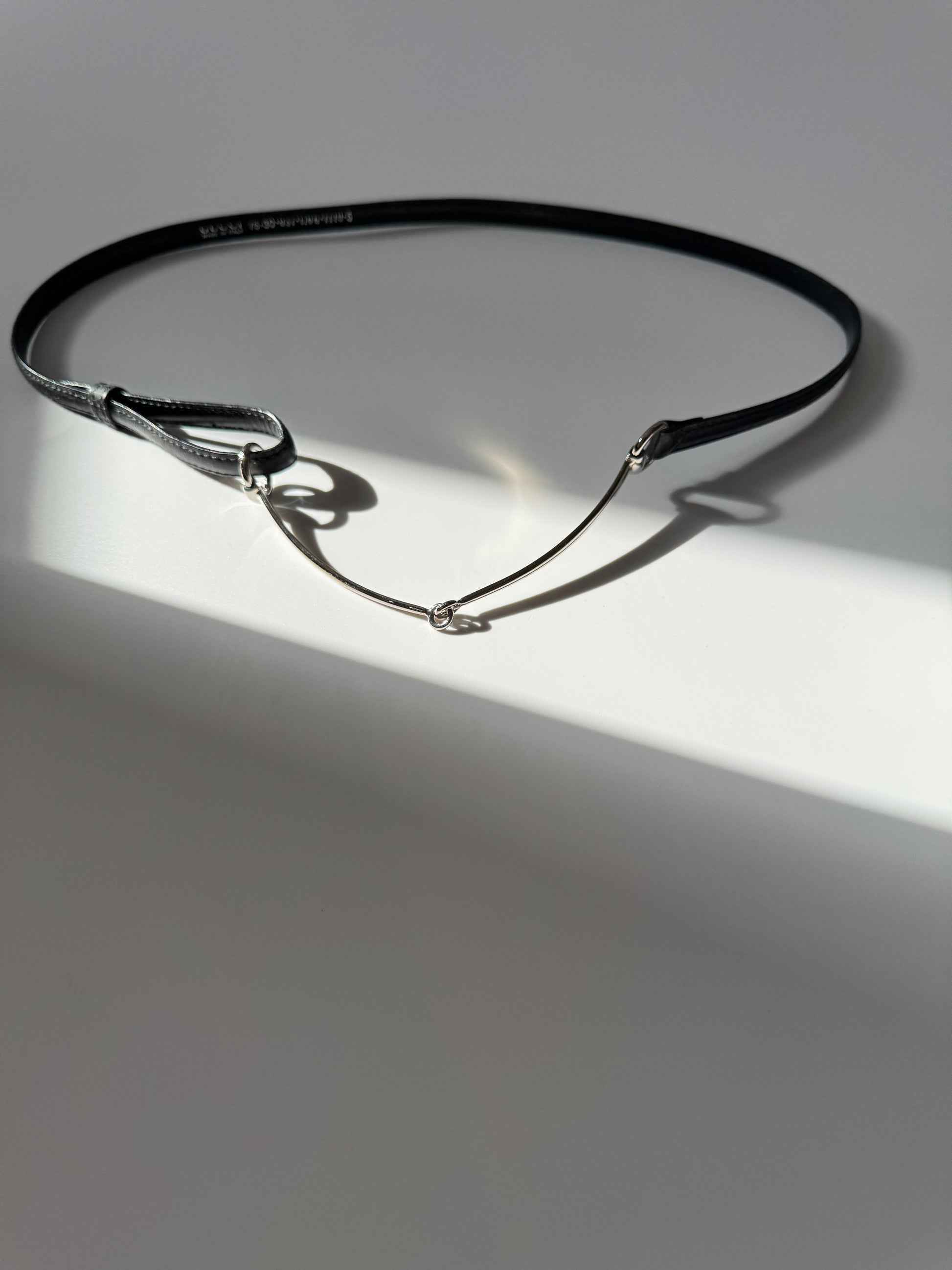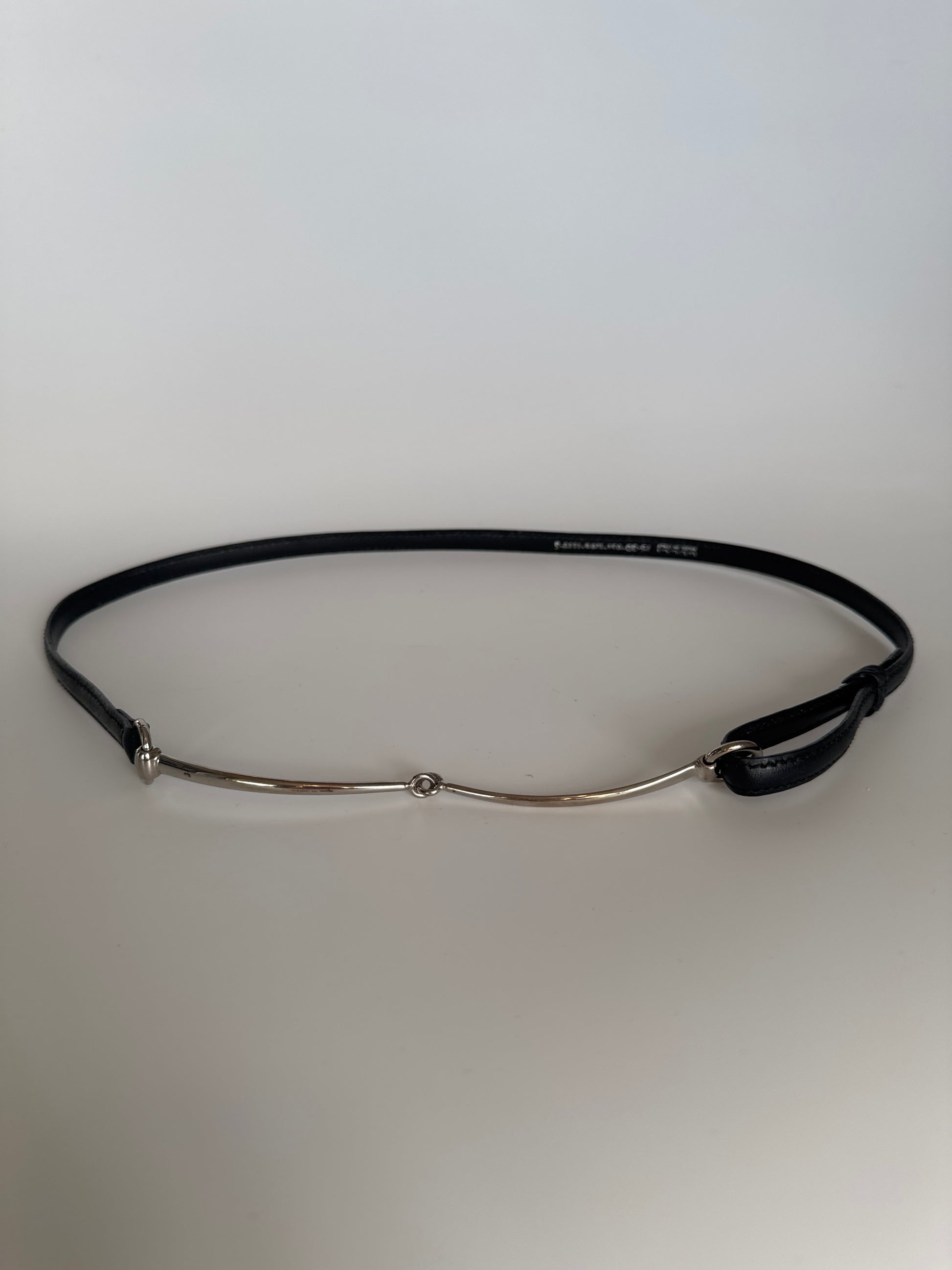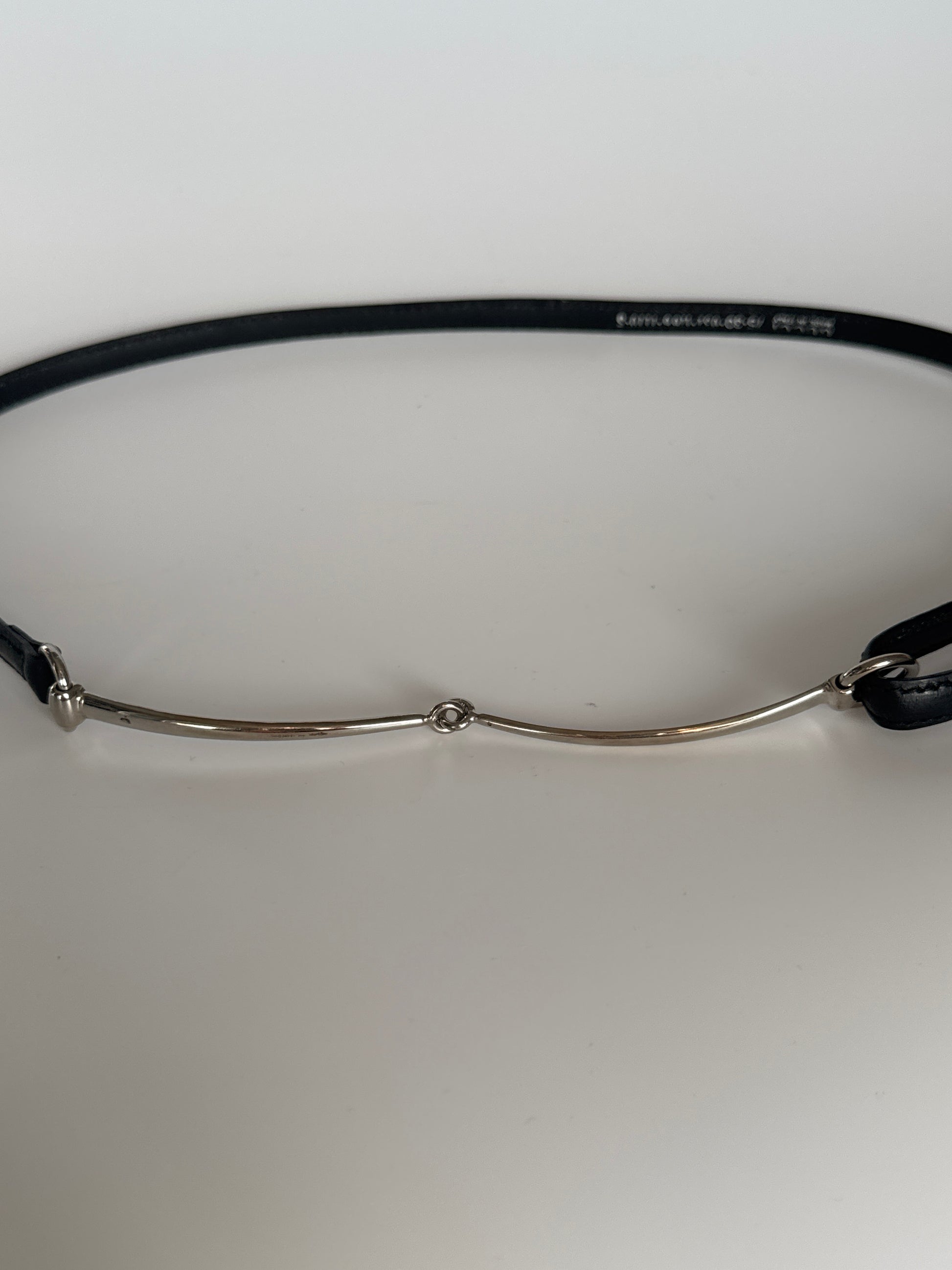 Measurements: width ~1 cm; fits ~79 cm waist (strap marks); horsebit ~18 cm; foldable length 17 cm