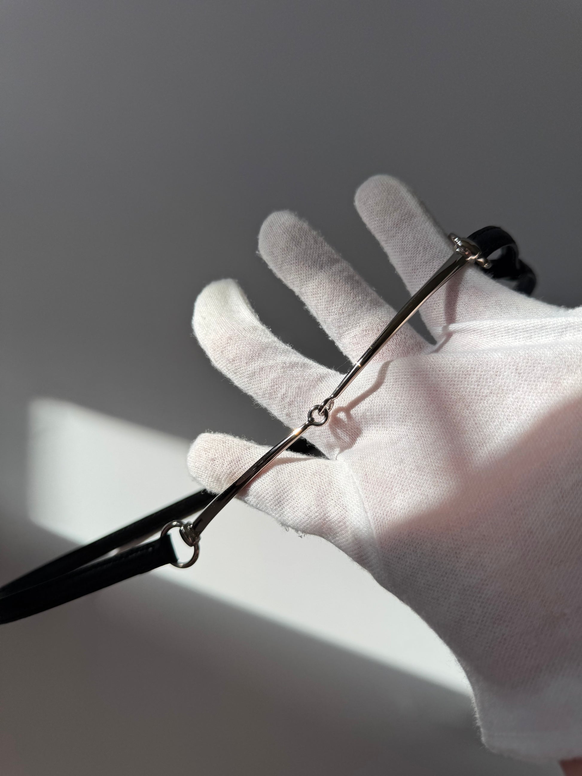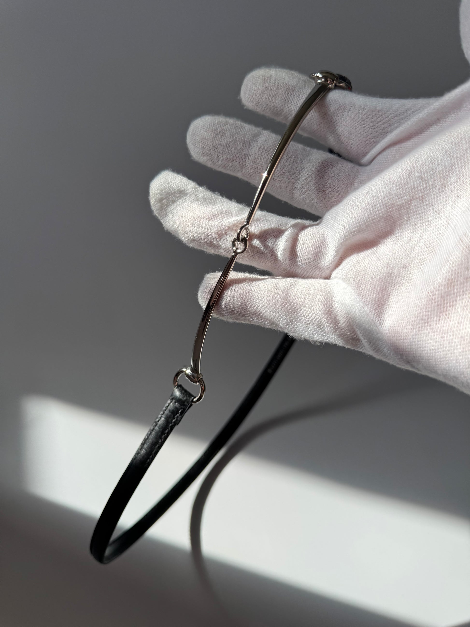 Silver-tone horsebit hardware
