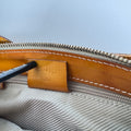 Tan leather trim and adjustable strap