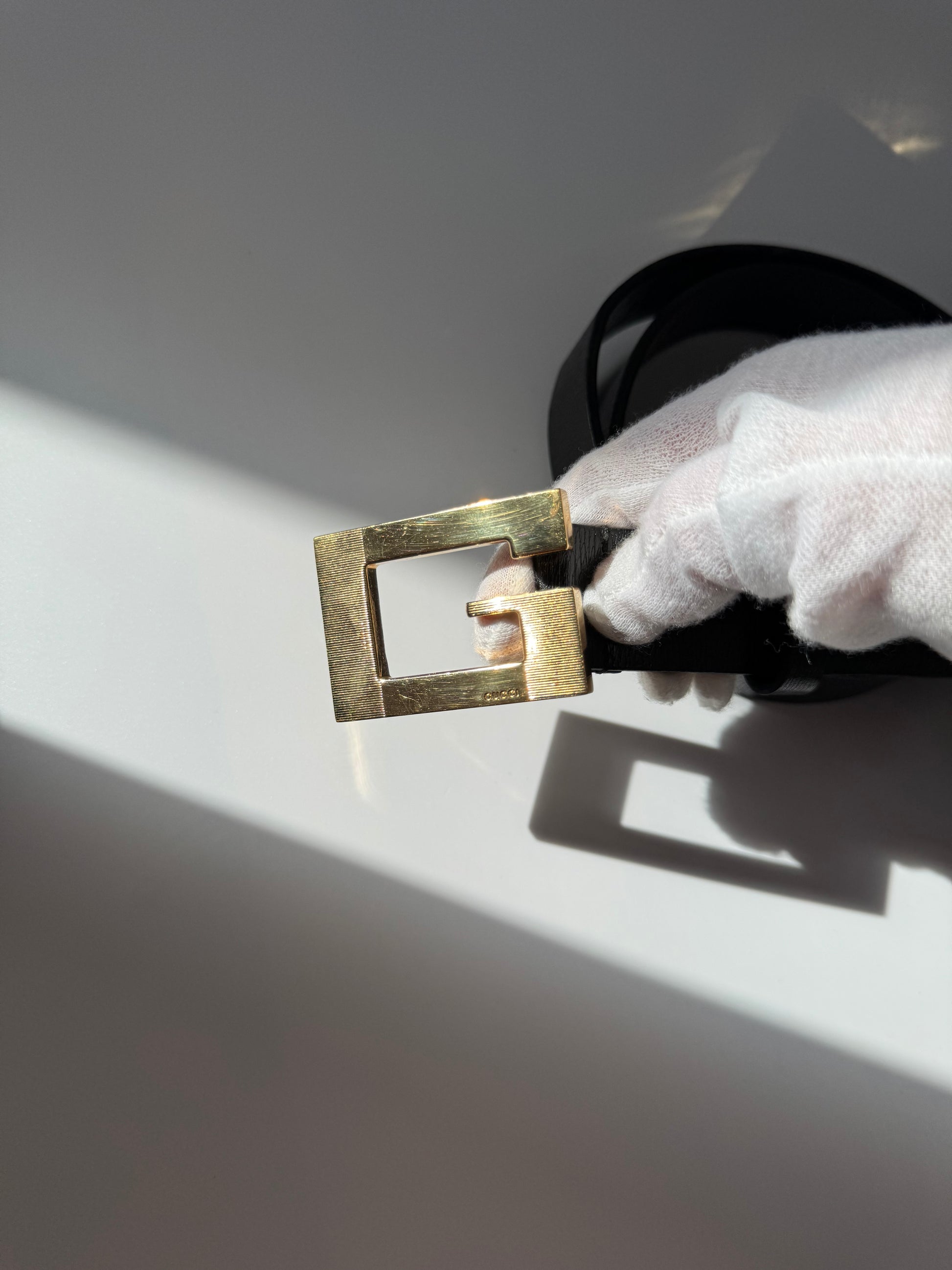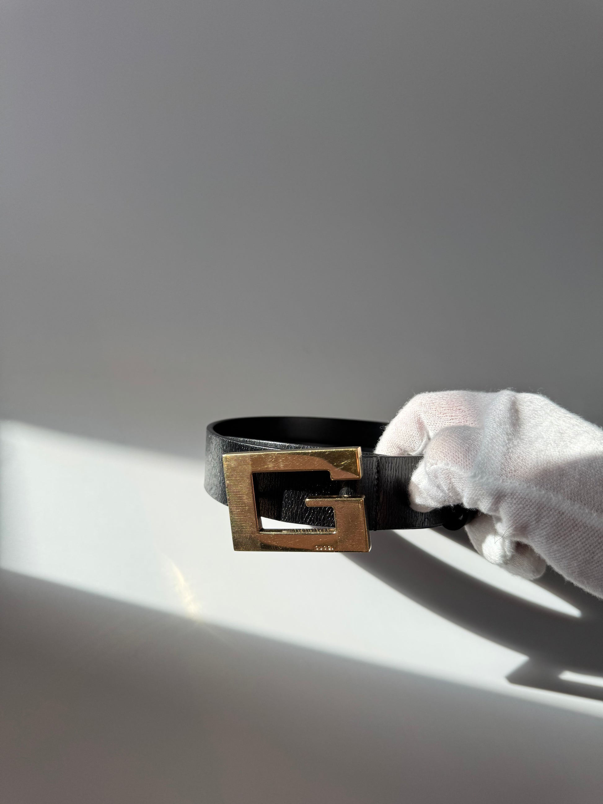 Vintage Gucci Black Leather Square “G” Buckle Belt (1980s–1990s)